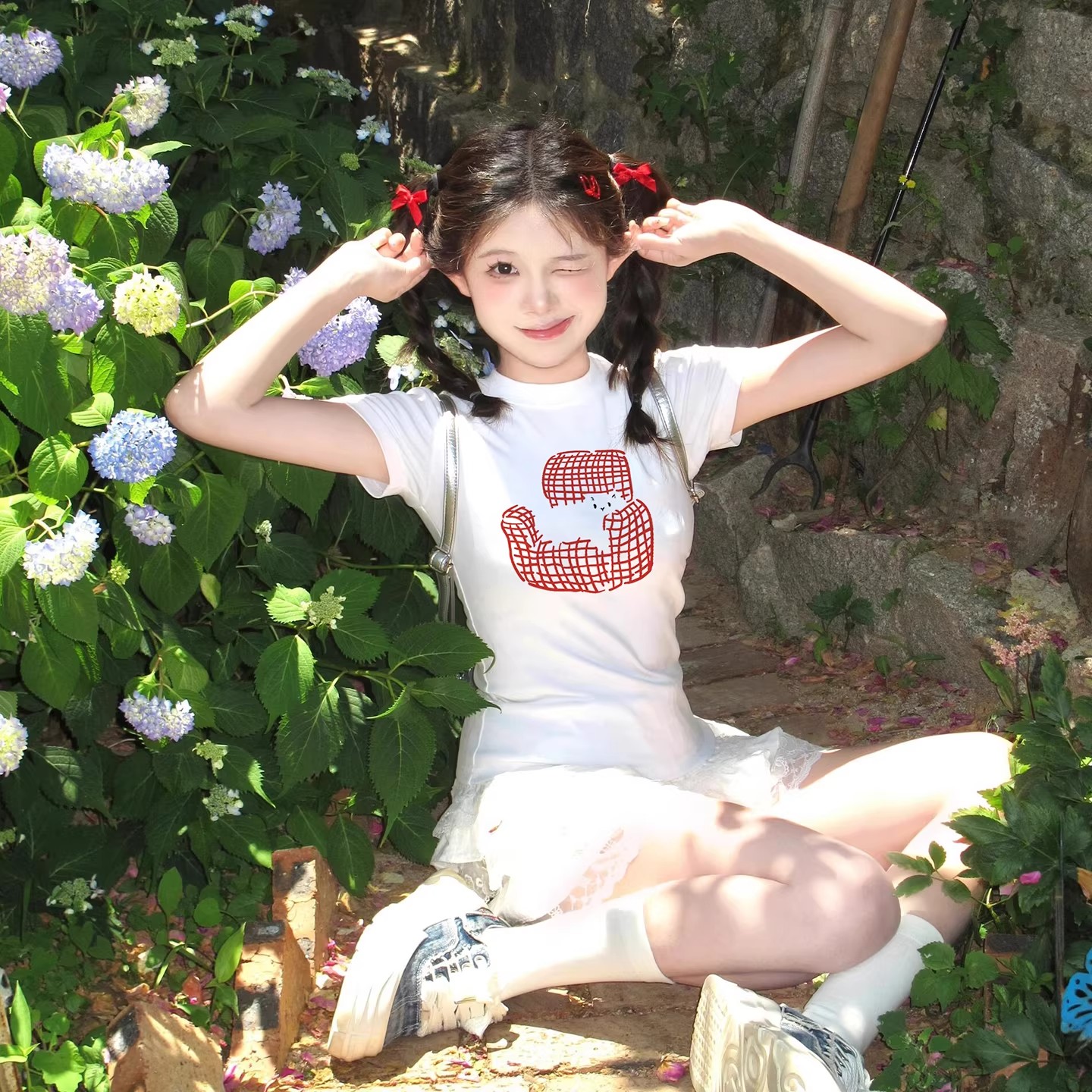 2026년 여성용 순면 프린트 여름 섹시 슬림핏 반팔 티셔츠