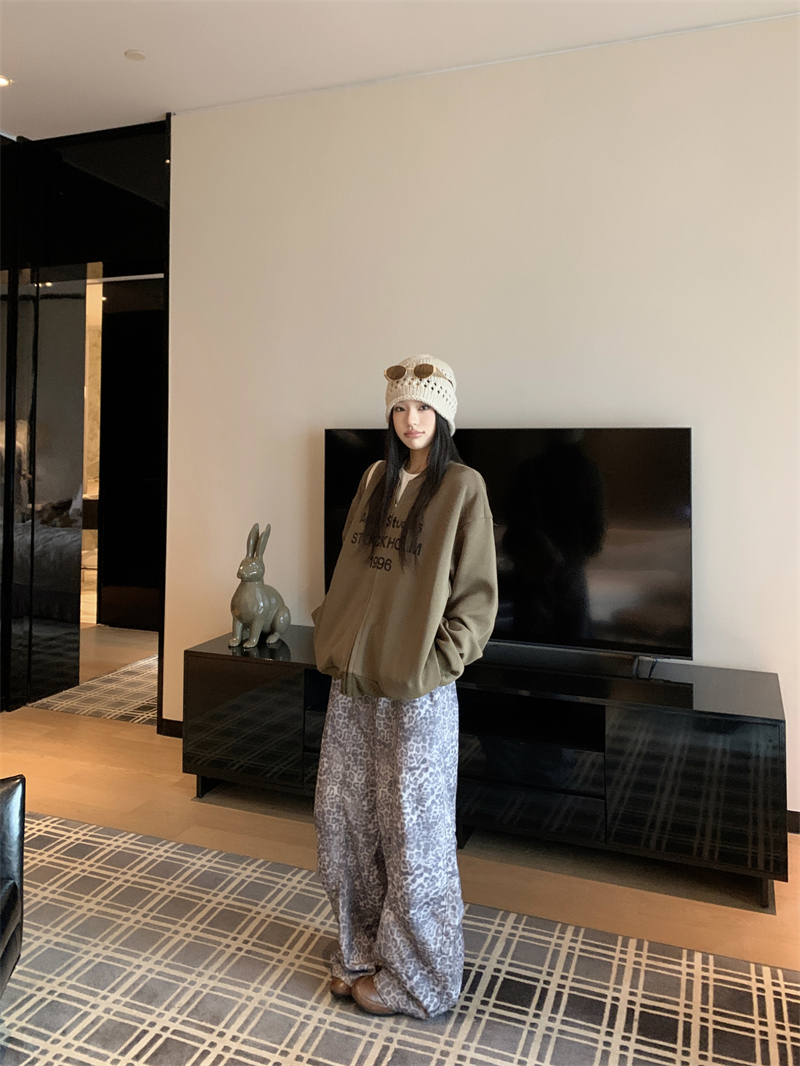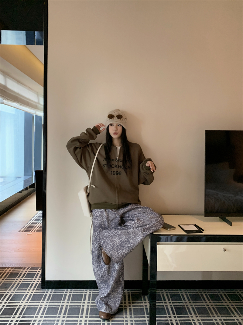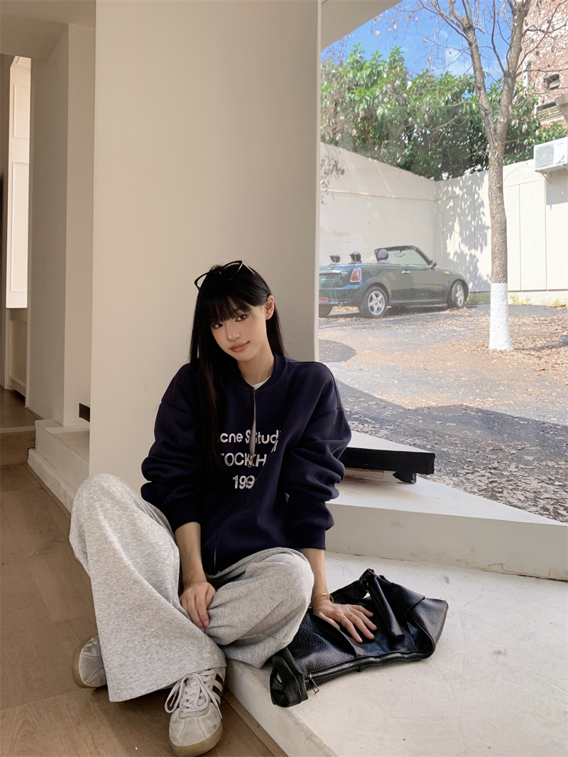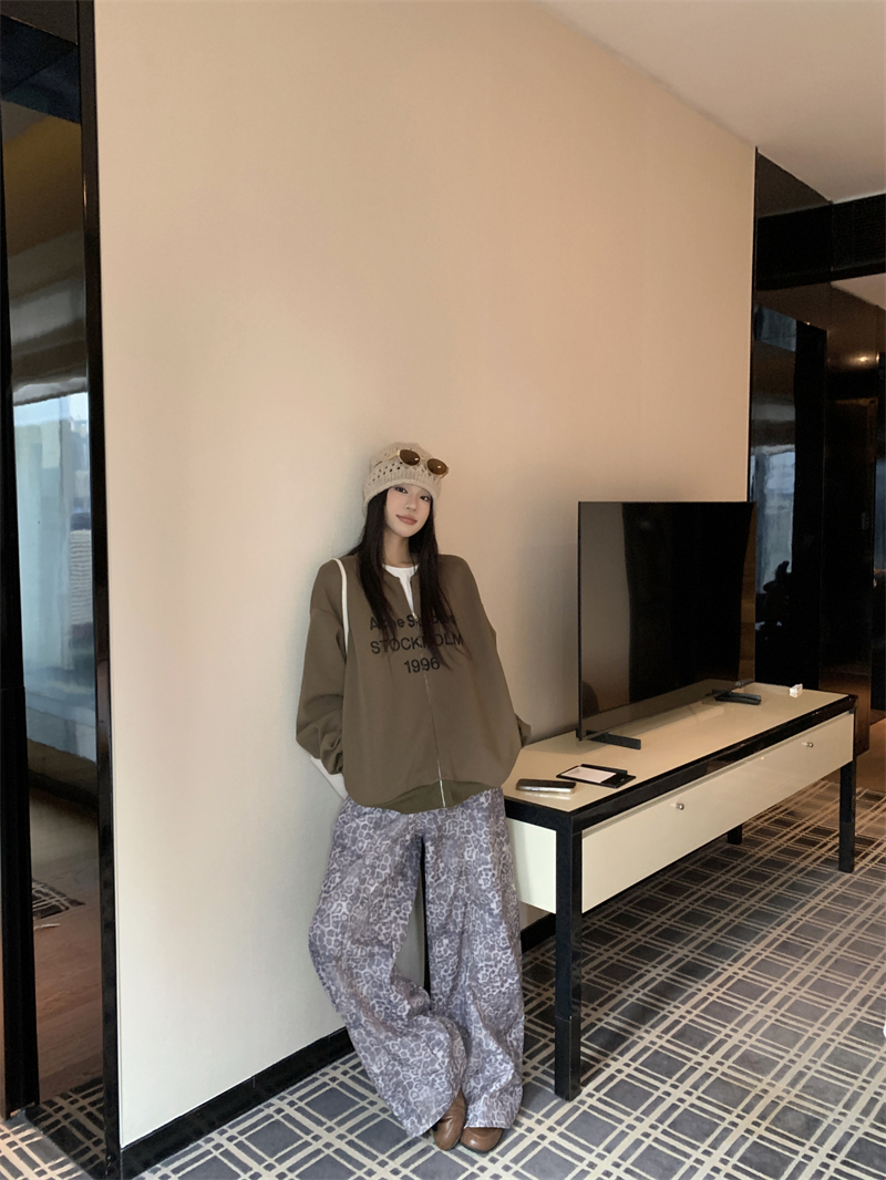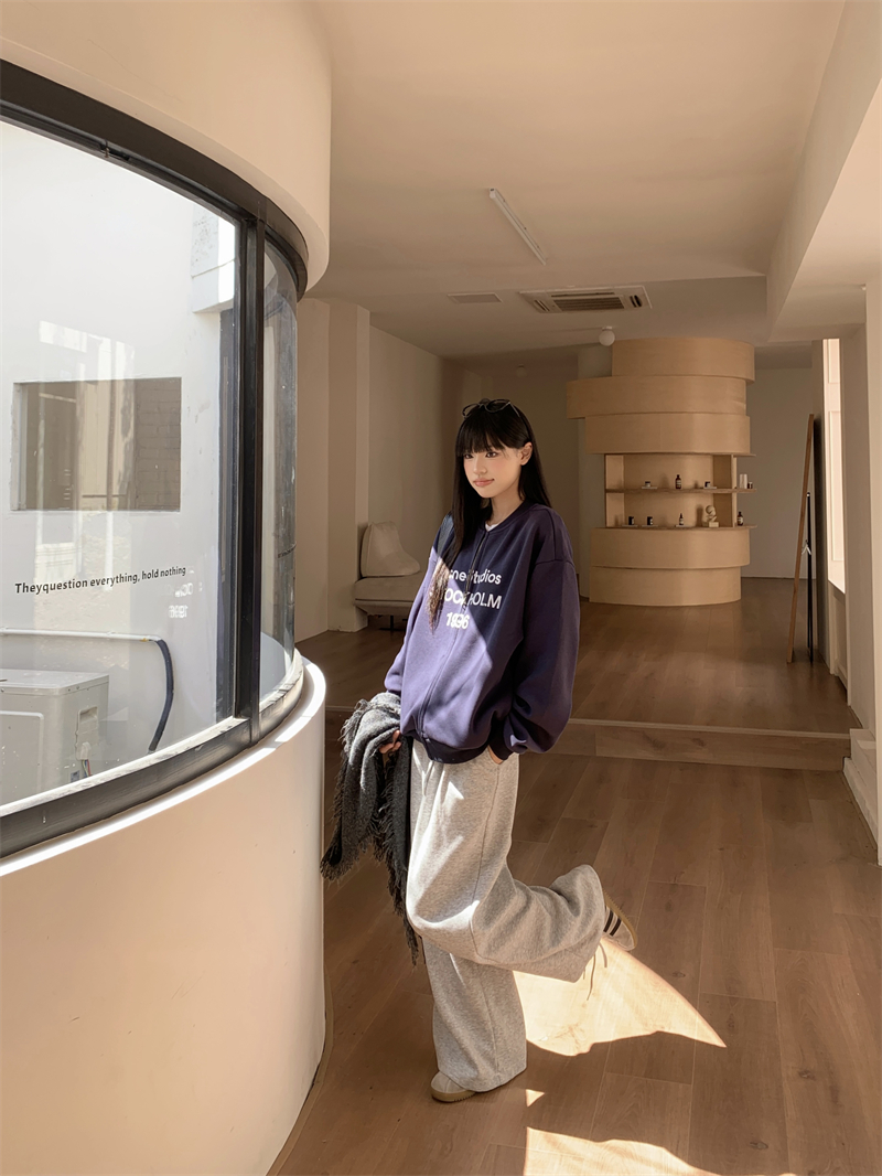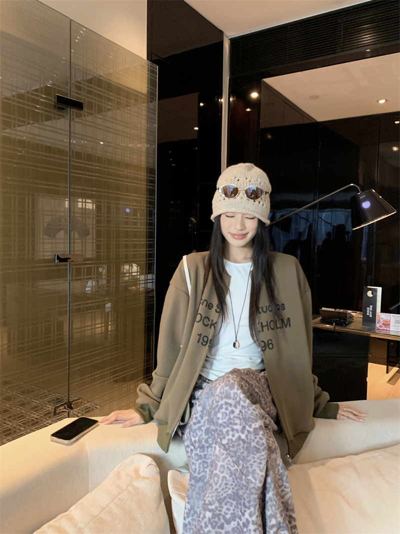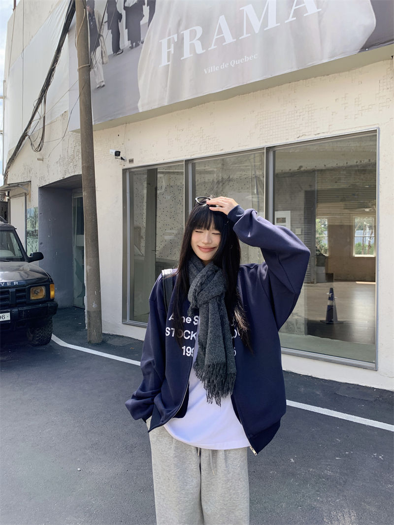 现实拍实价字母印花圆领宽松长袖外套女早秋美式宽松休闲开衫上衣