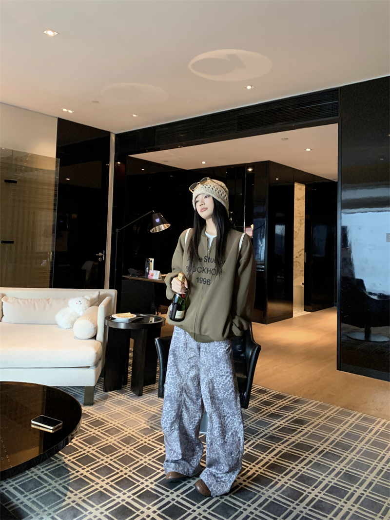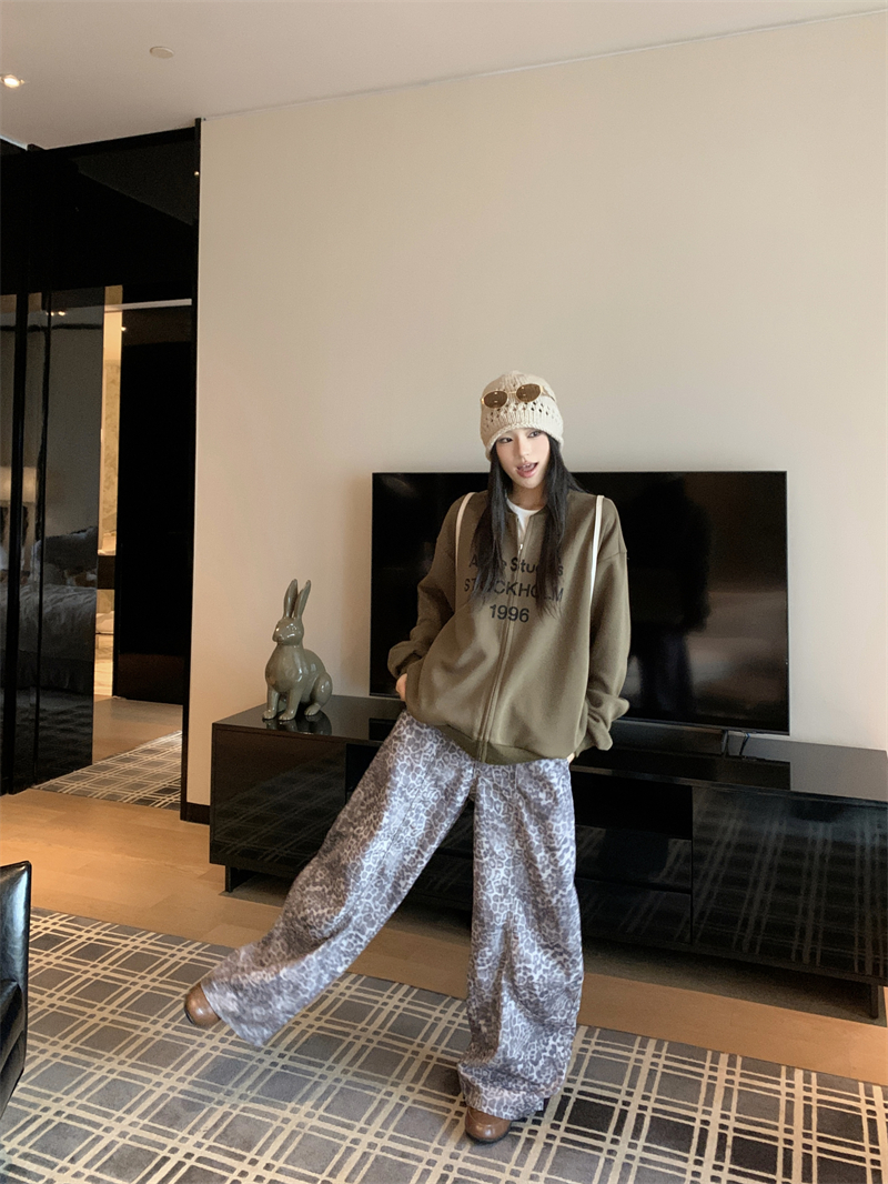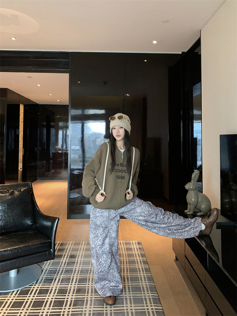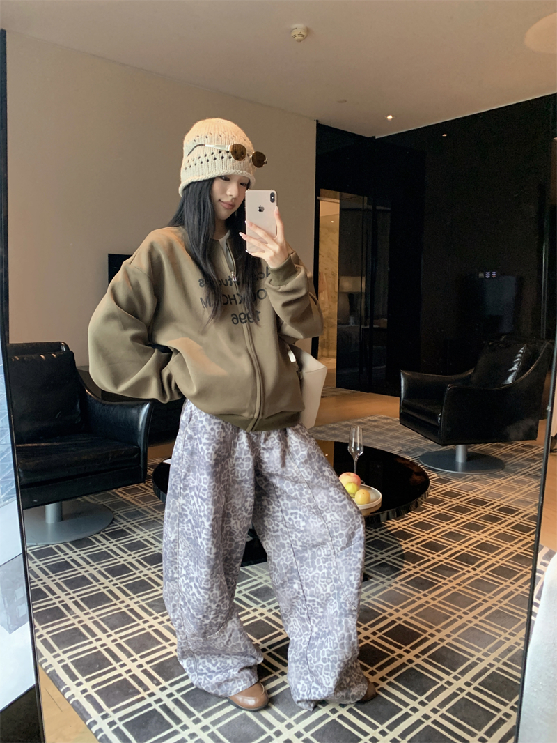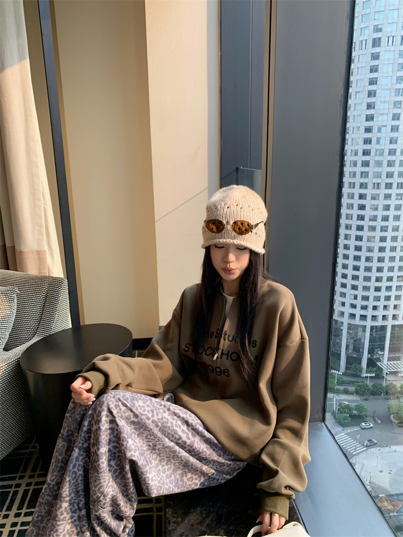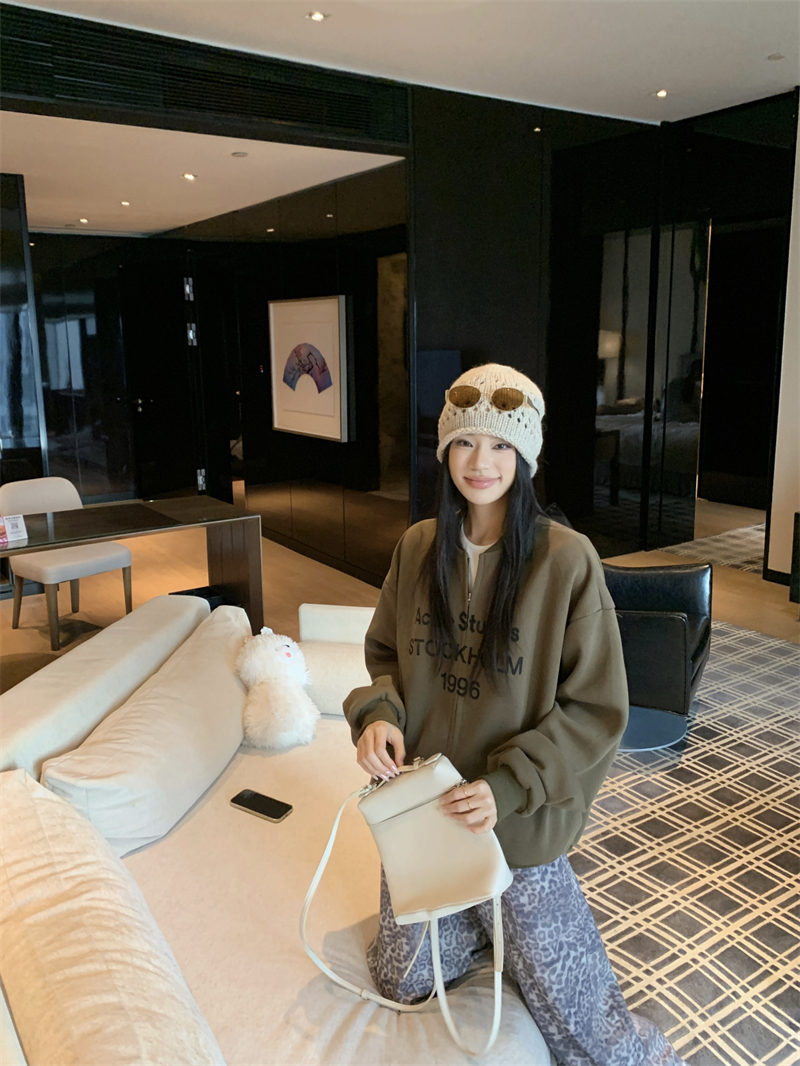 现实拍实价字母印花圆领宽松长袖外套女早秋美式宽松休闲开衫上衣
