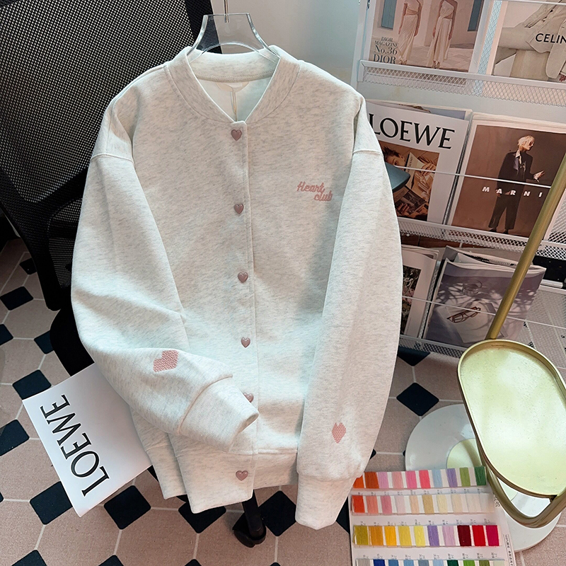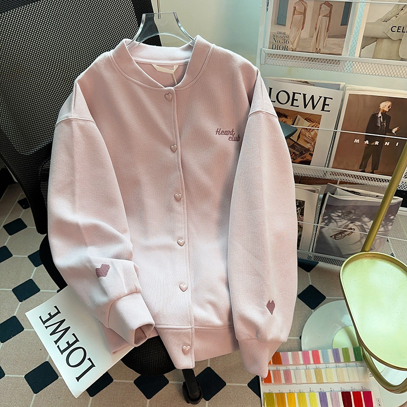 实拍米呢复合330克2026春秋刺绣开衫外套长袖上衣潮大码女装200斤