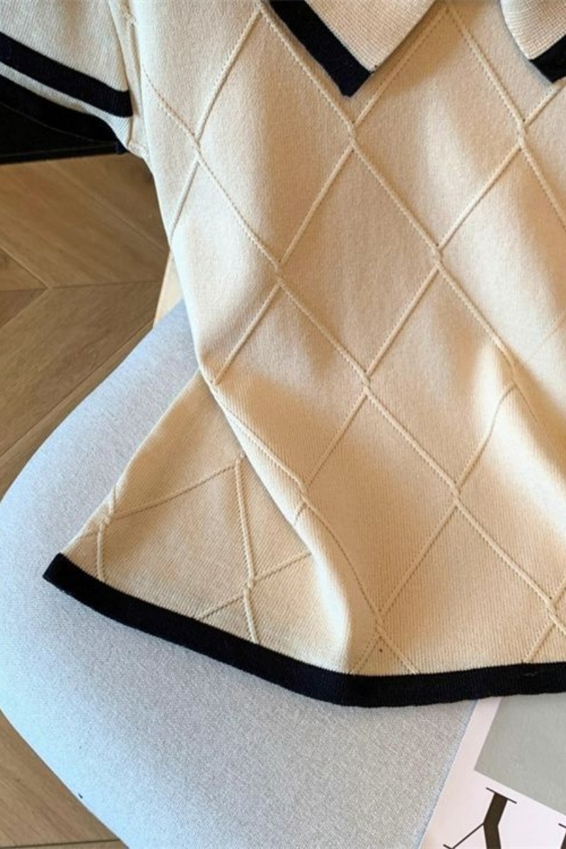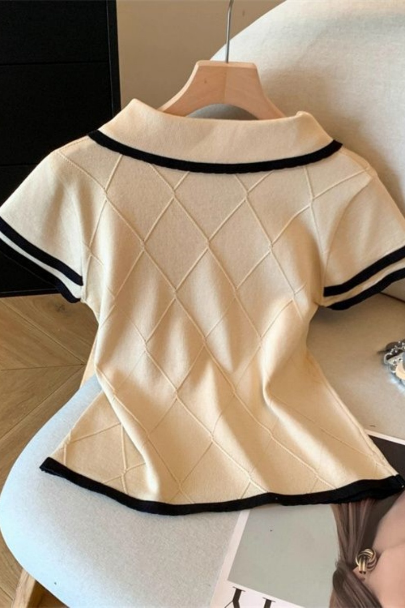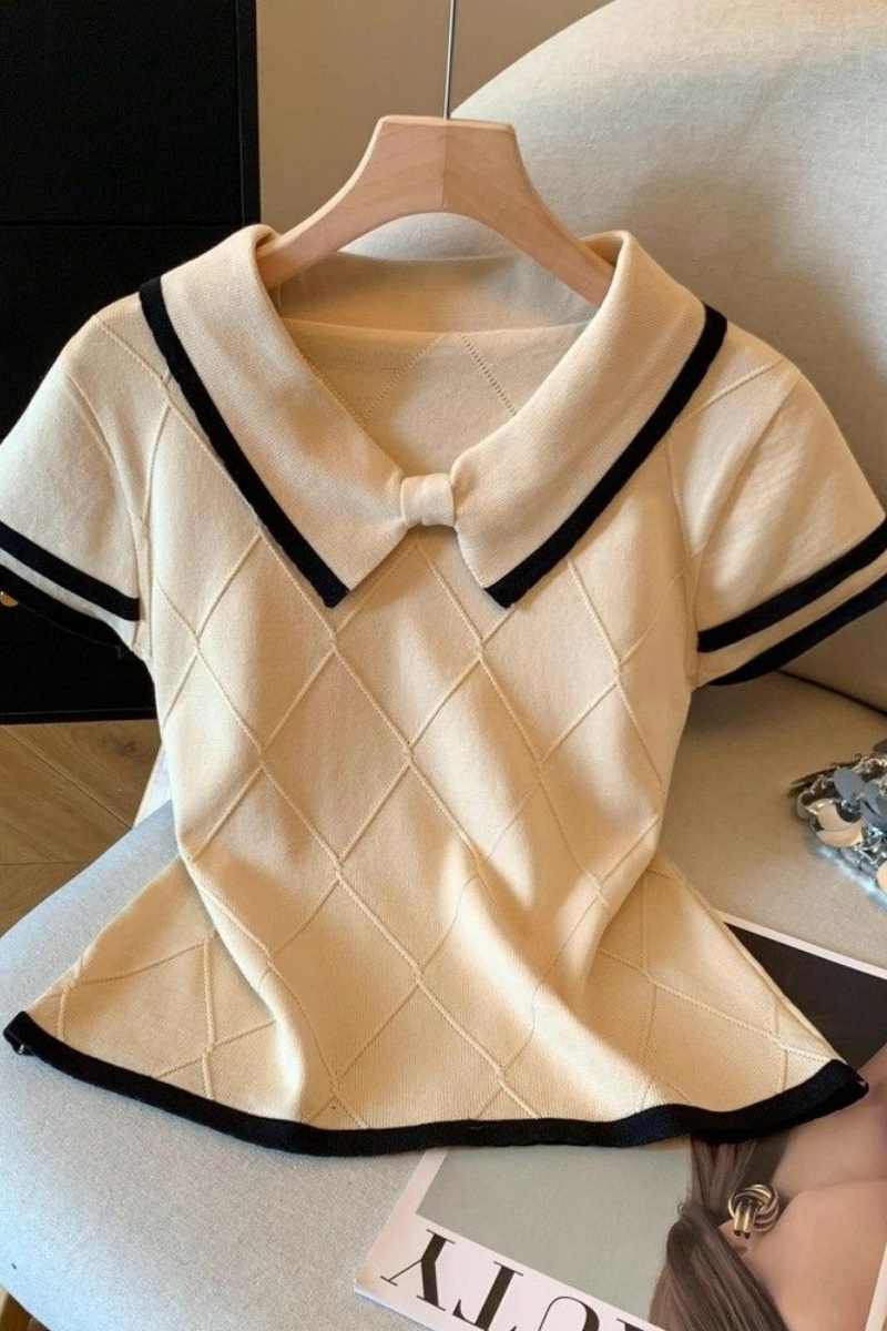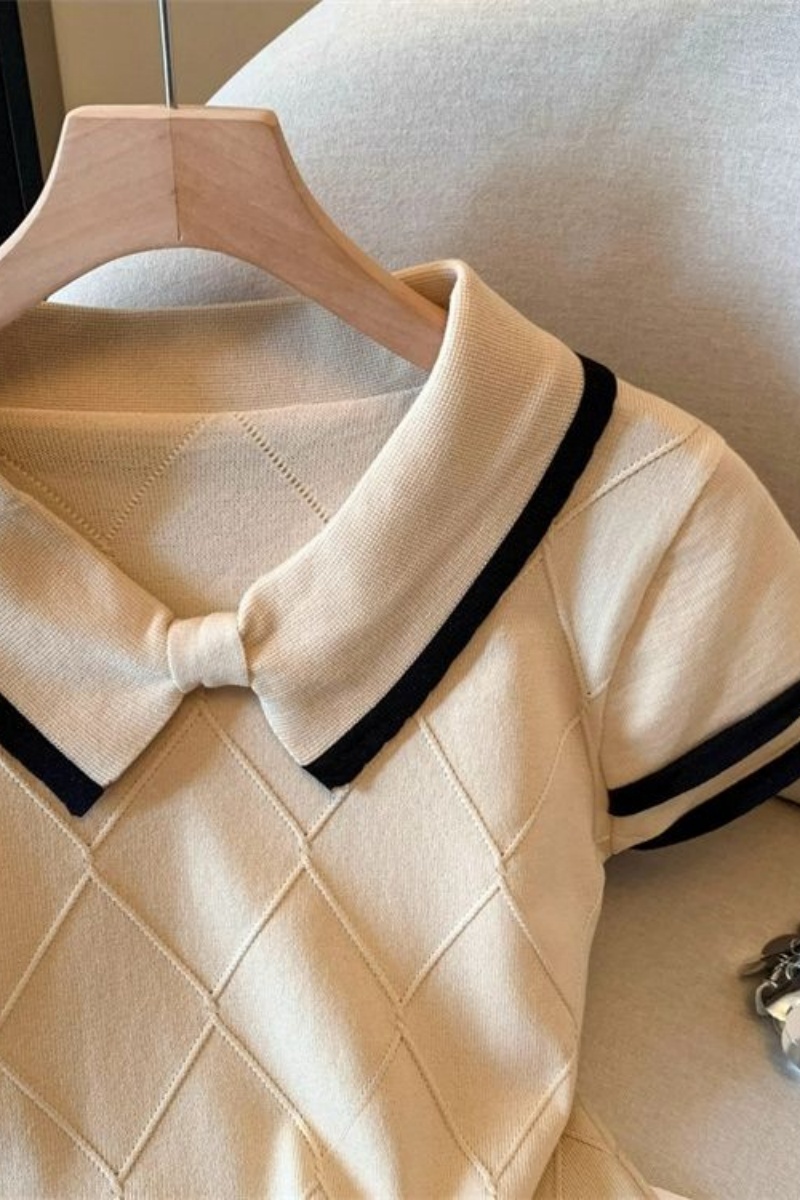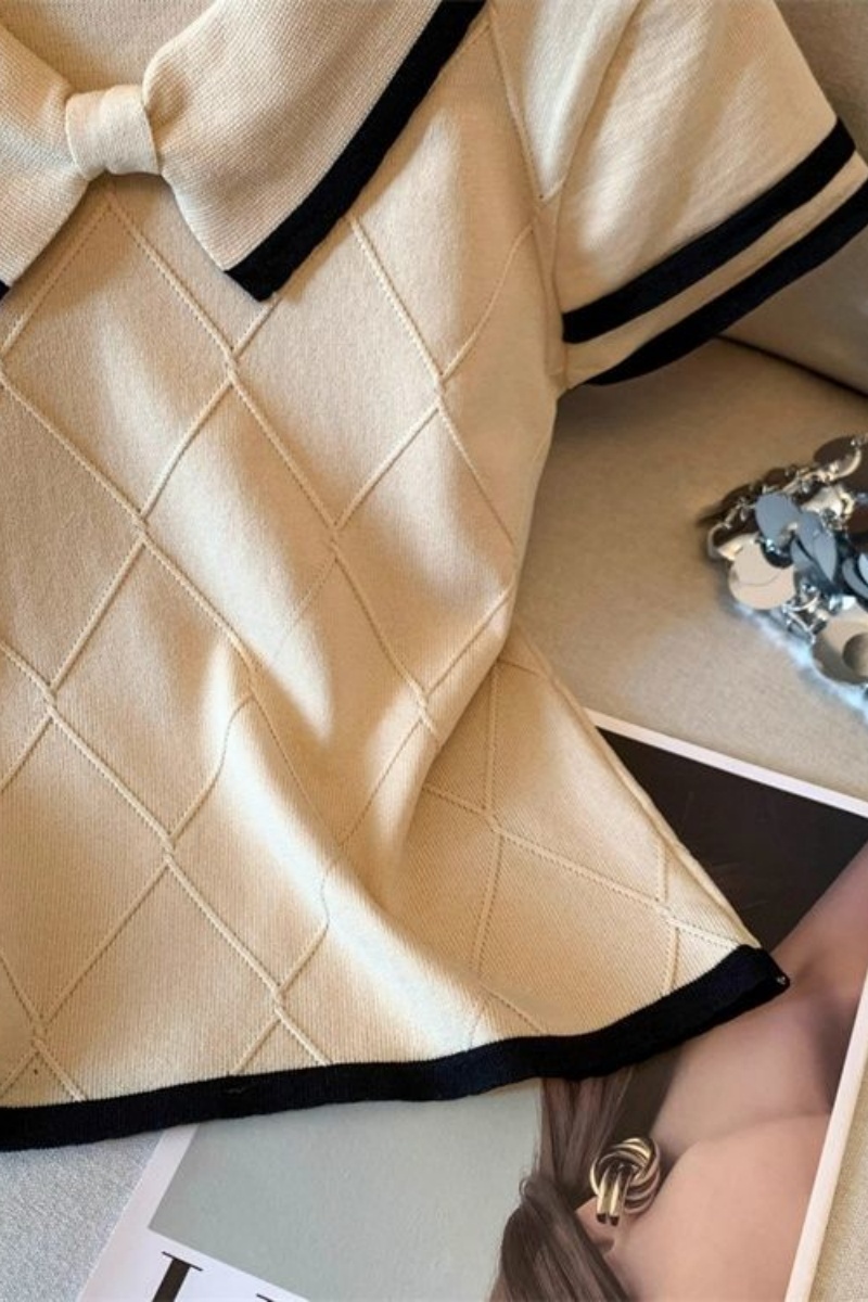 自留爆款推荐~蝴蝶结菱格肌理感T恤短袖上衣女夏季气质小个子小衫