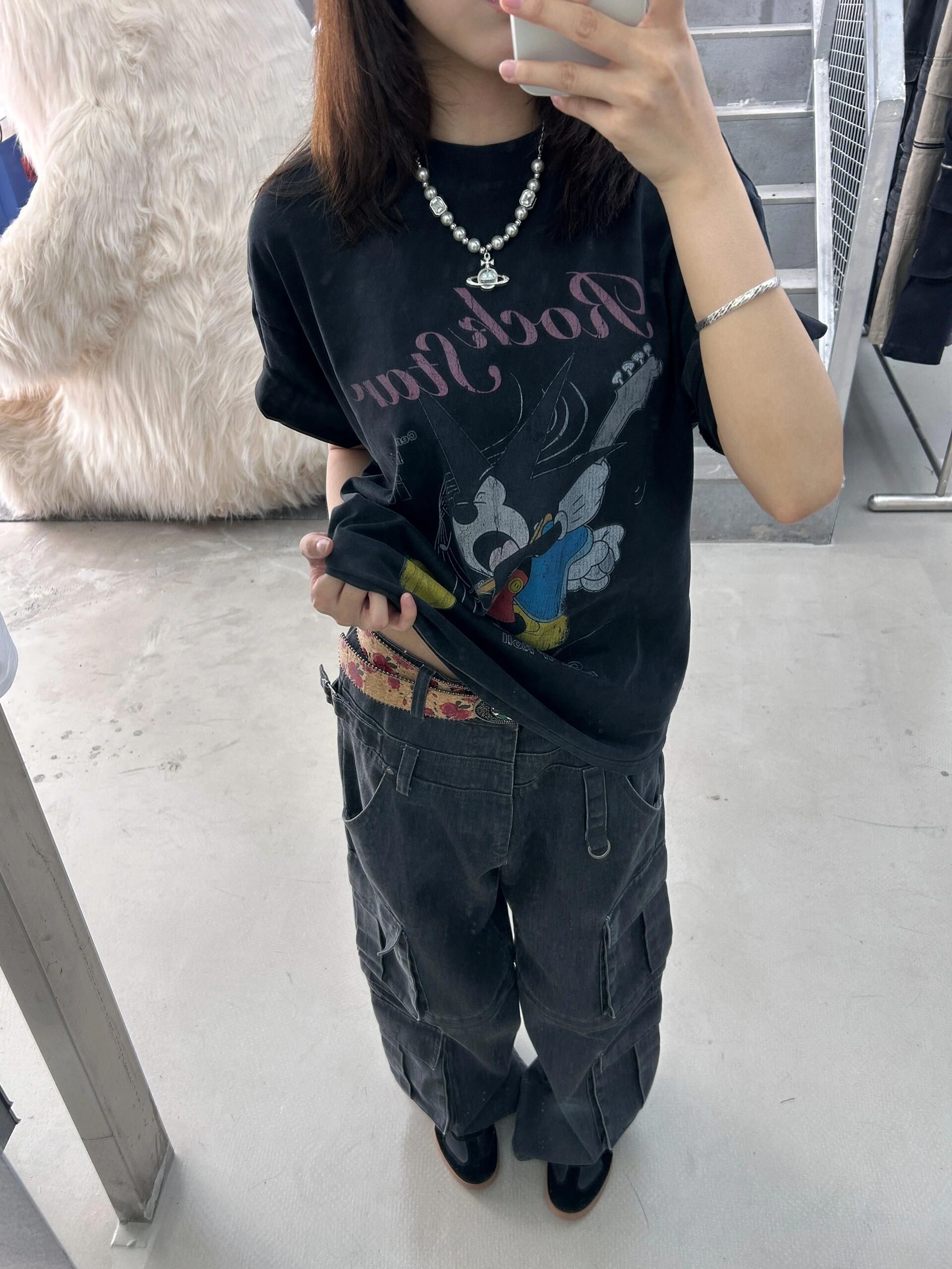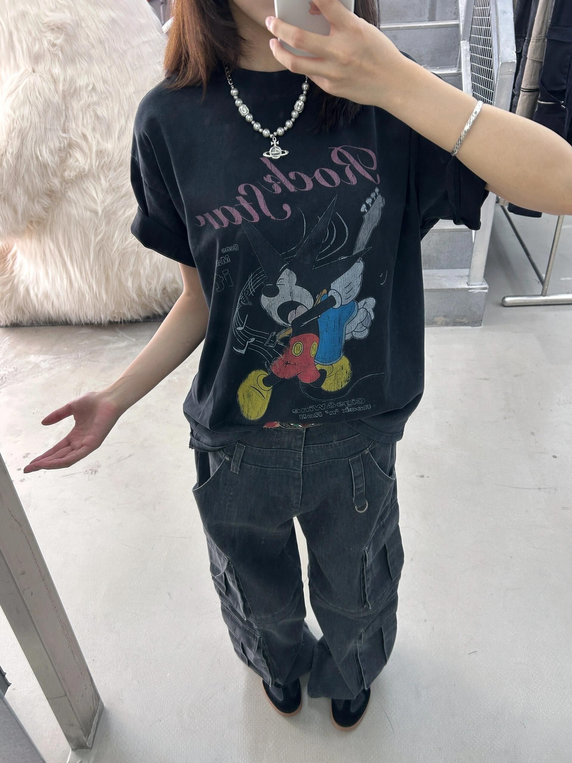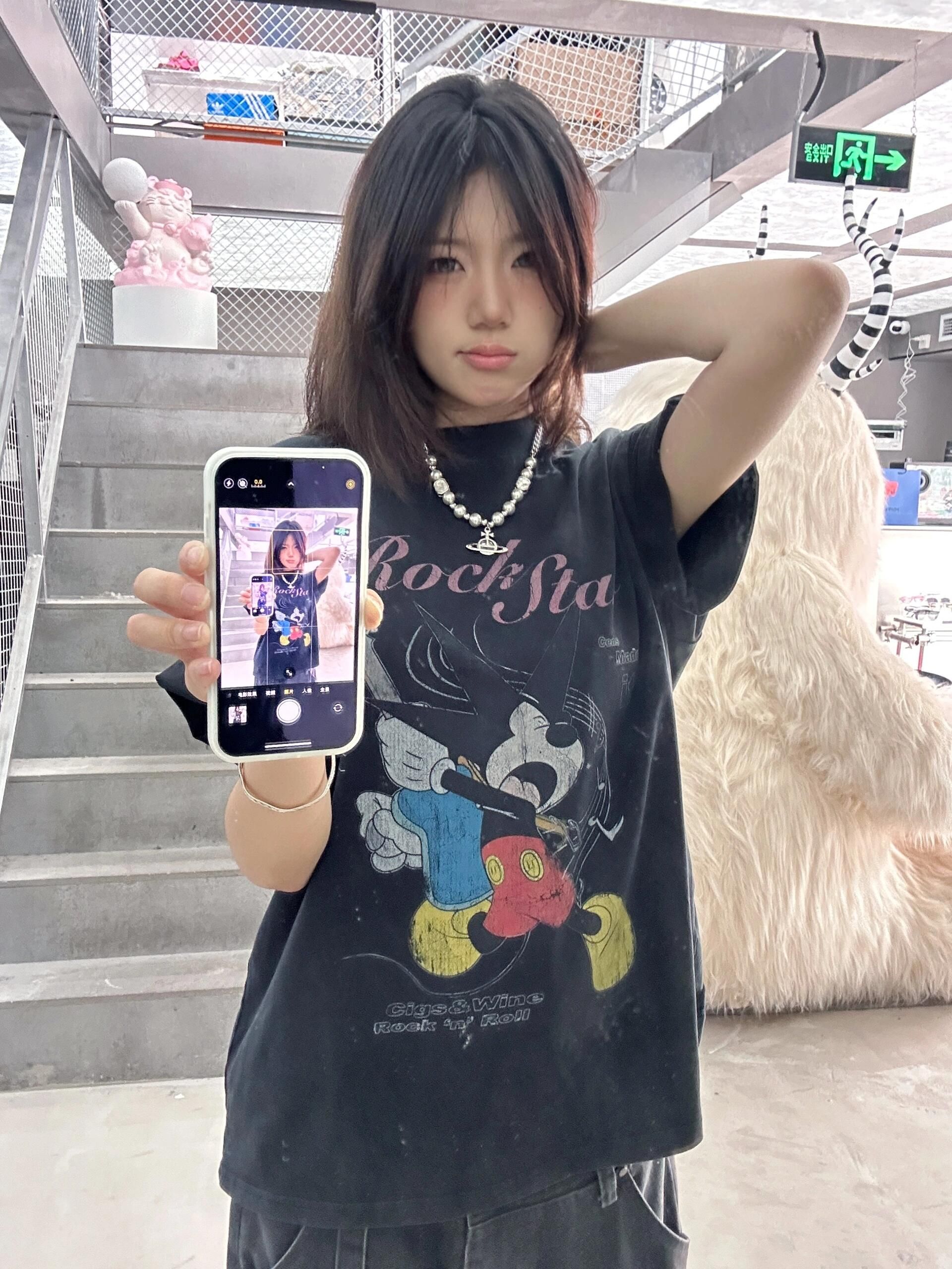 220克纯棉后包领水洗做旧美式复古oversize短袖t恤女夏ins潮牌