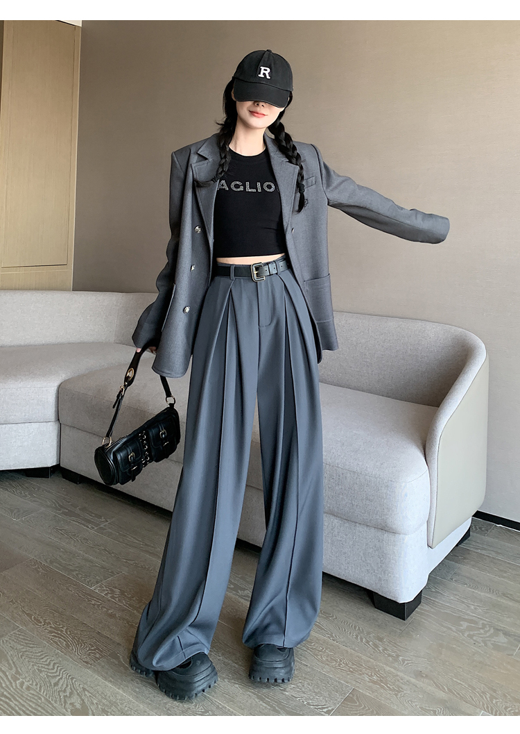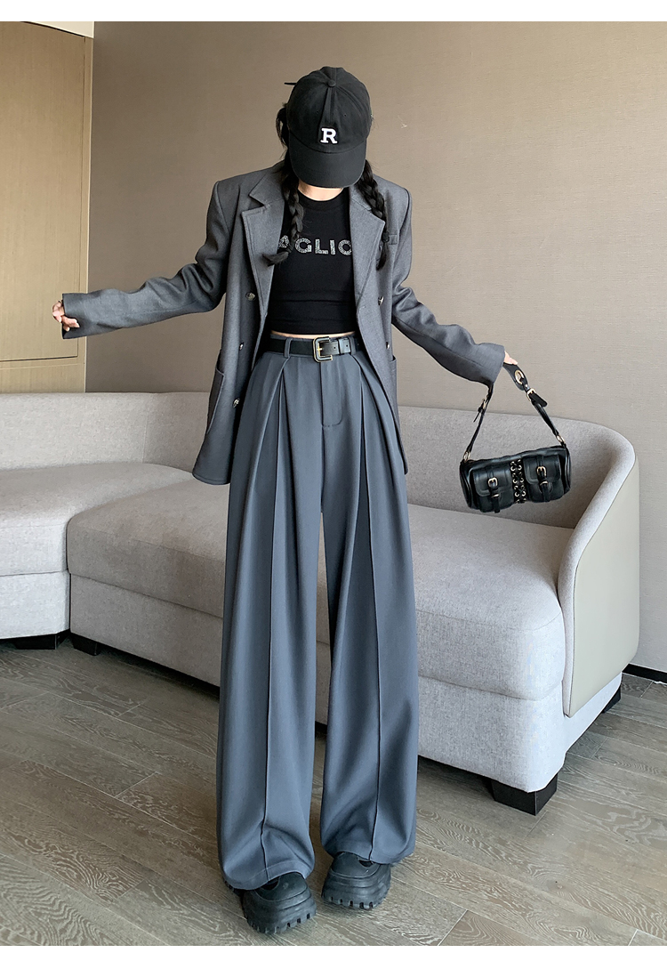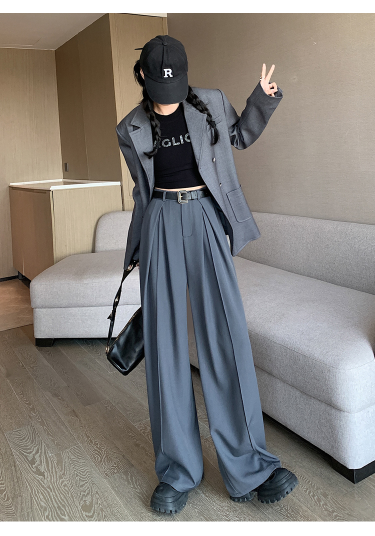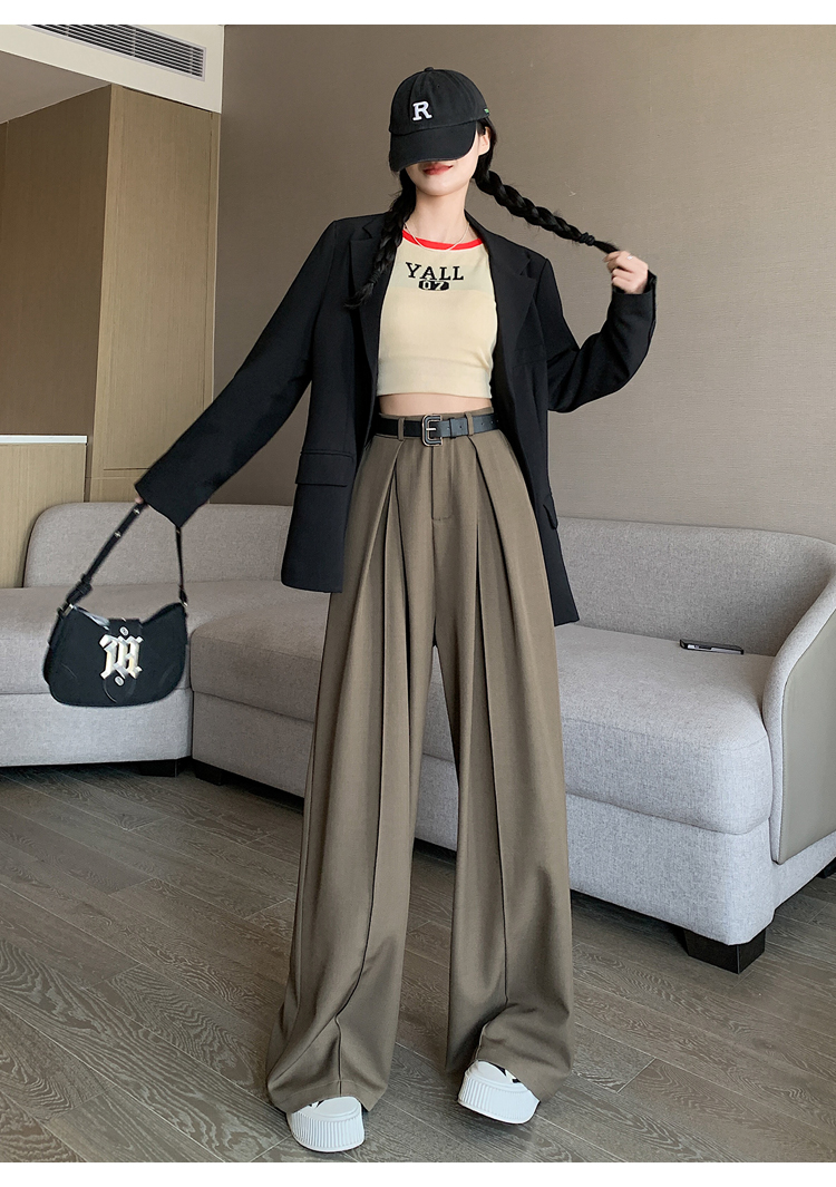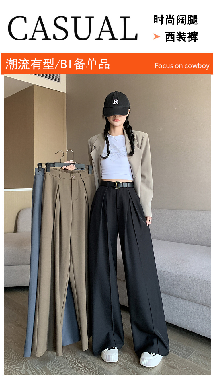 66019实拍实价阔腿裤垂感显瘦高腰宽松拖地休闲西装裤