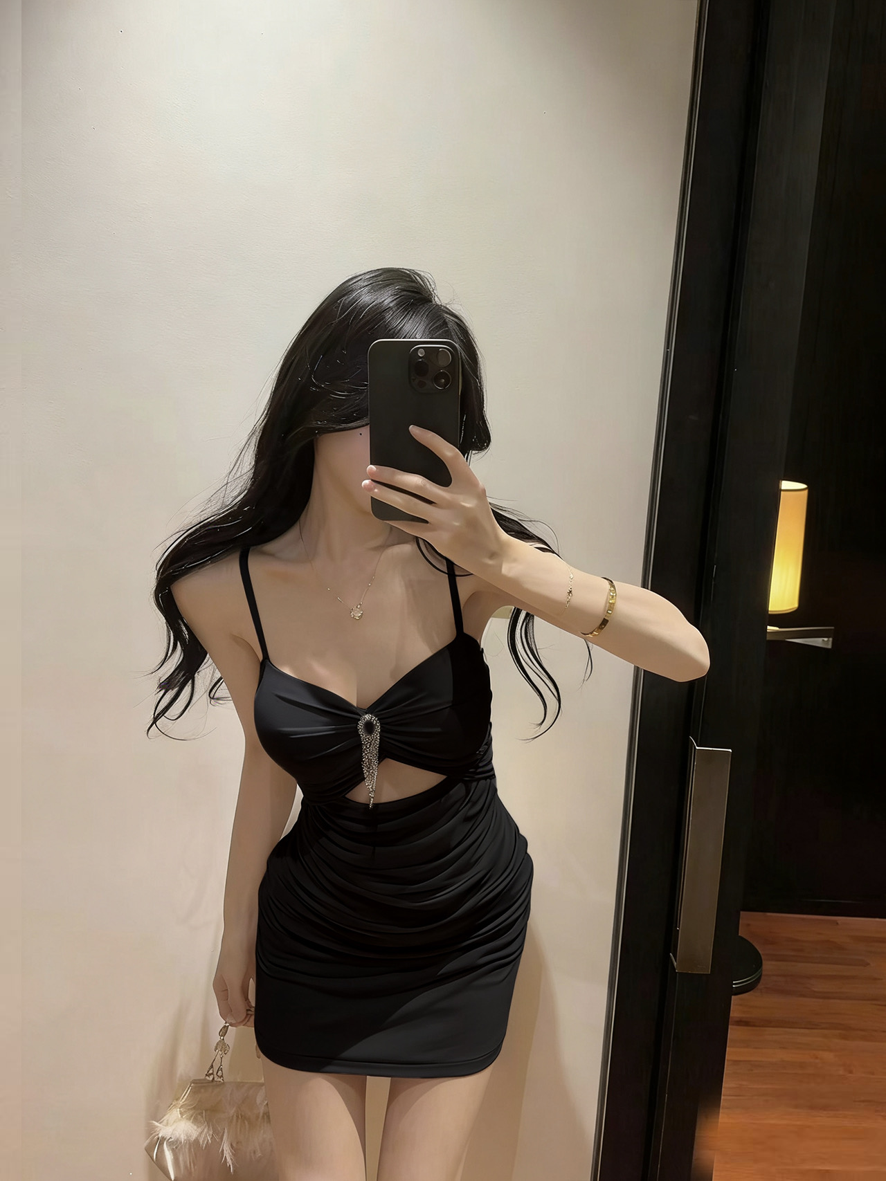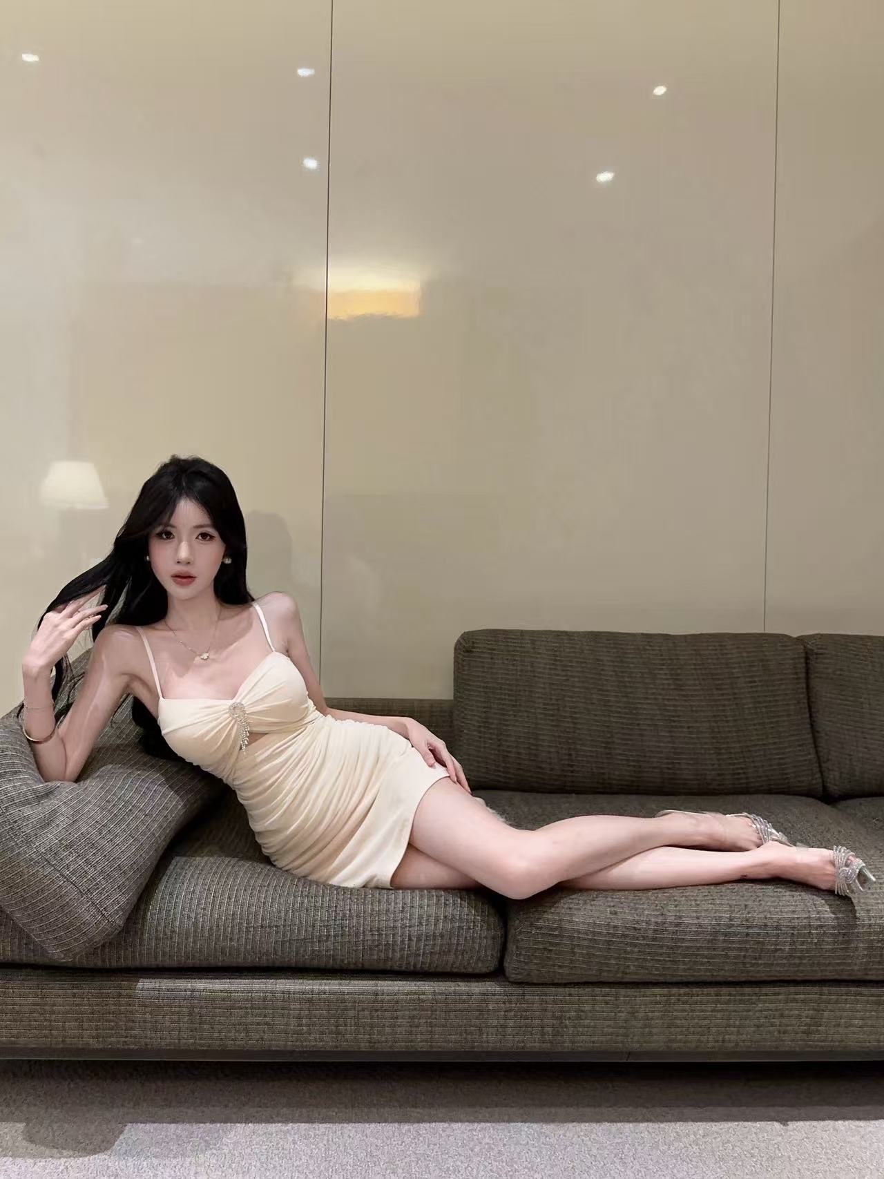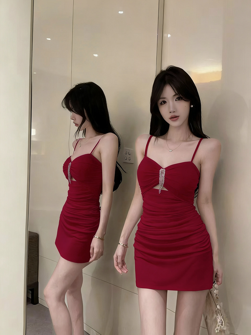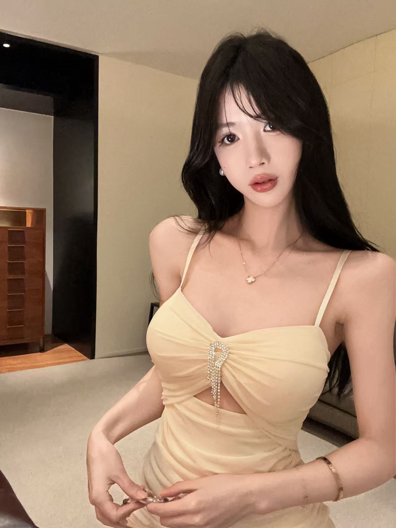 实拍性感网纱低胸镂空吊带短款打底连衣裙