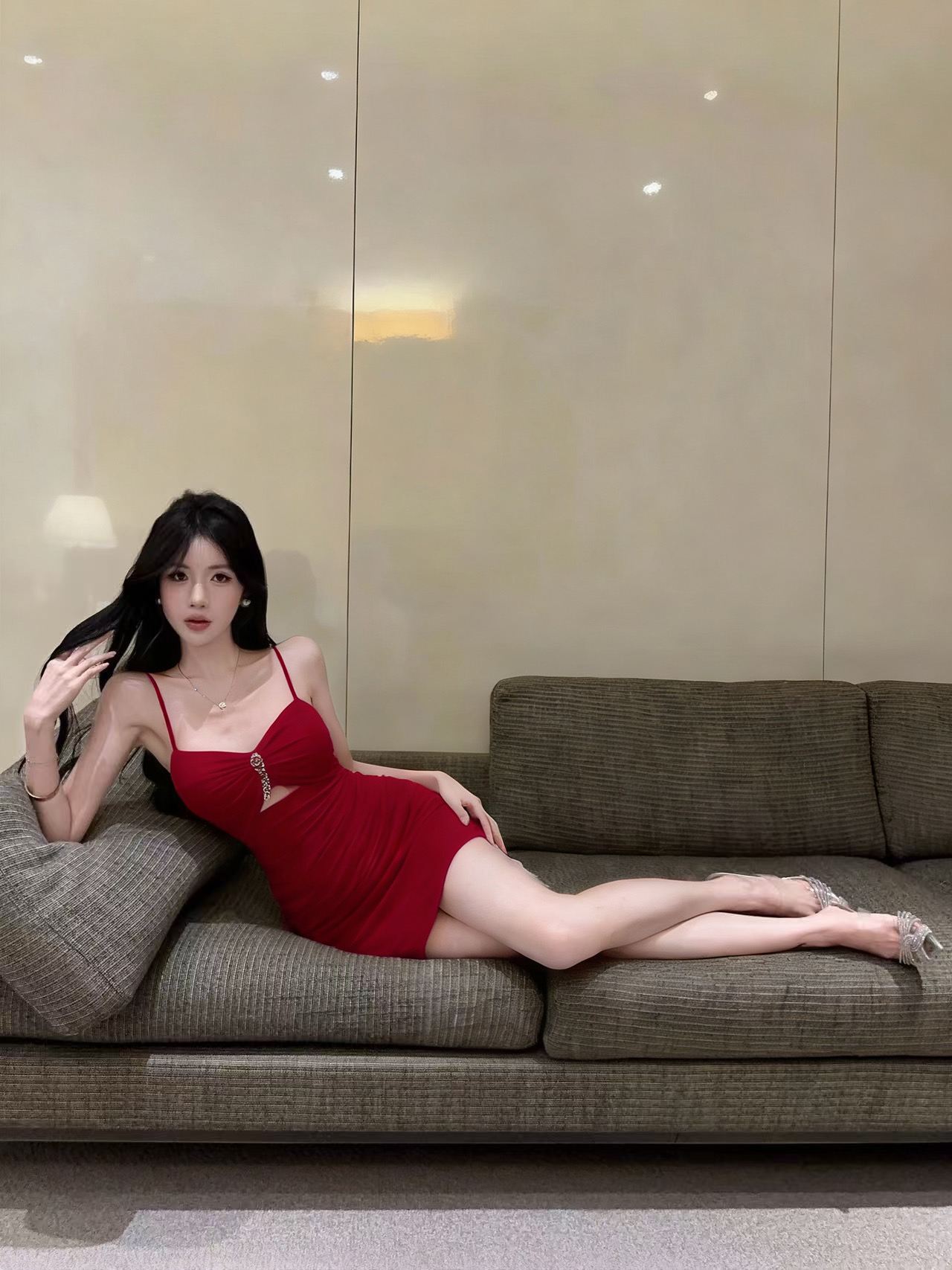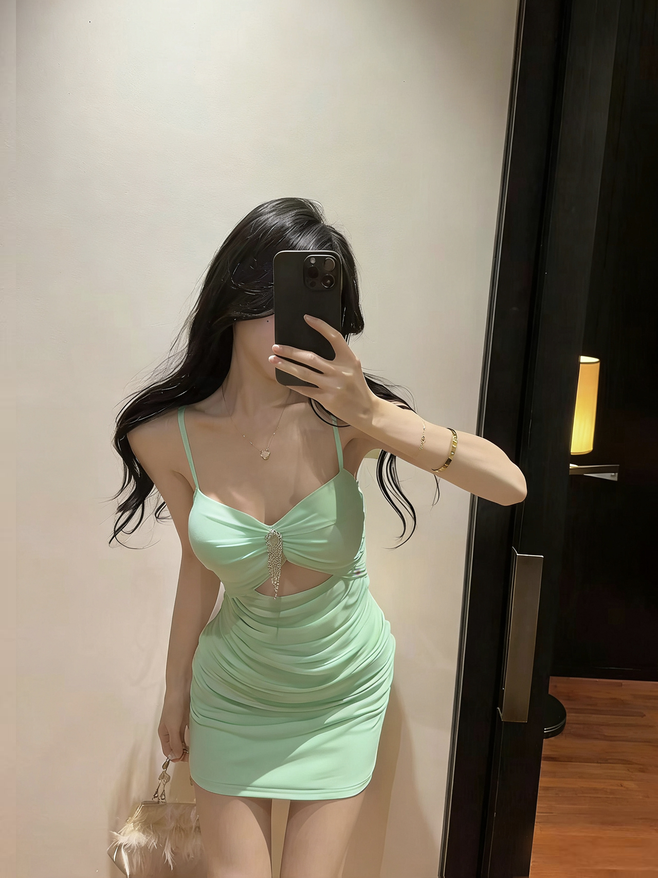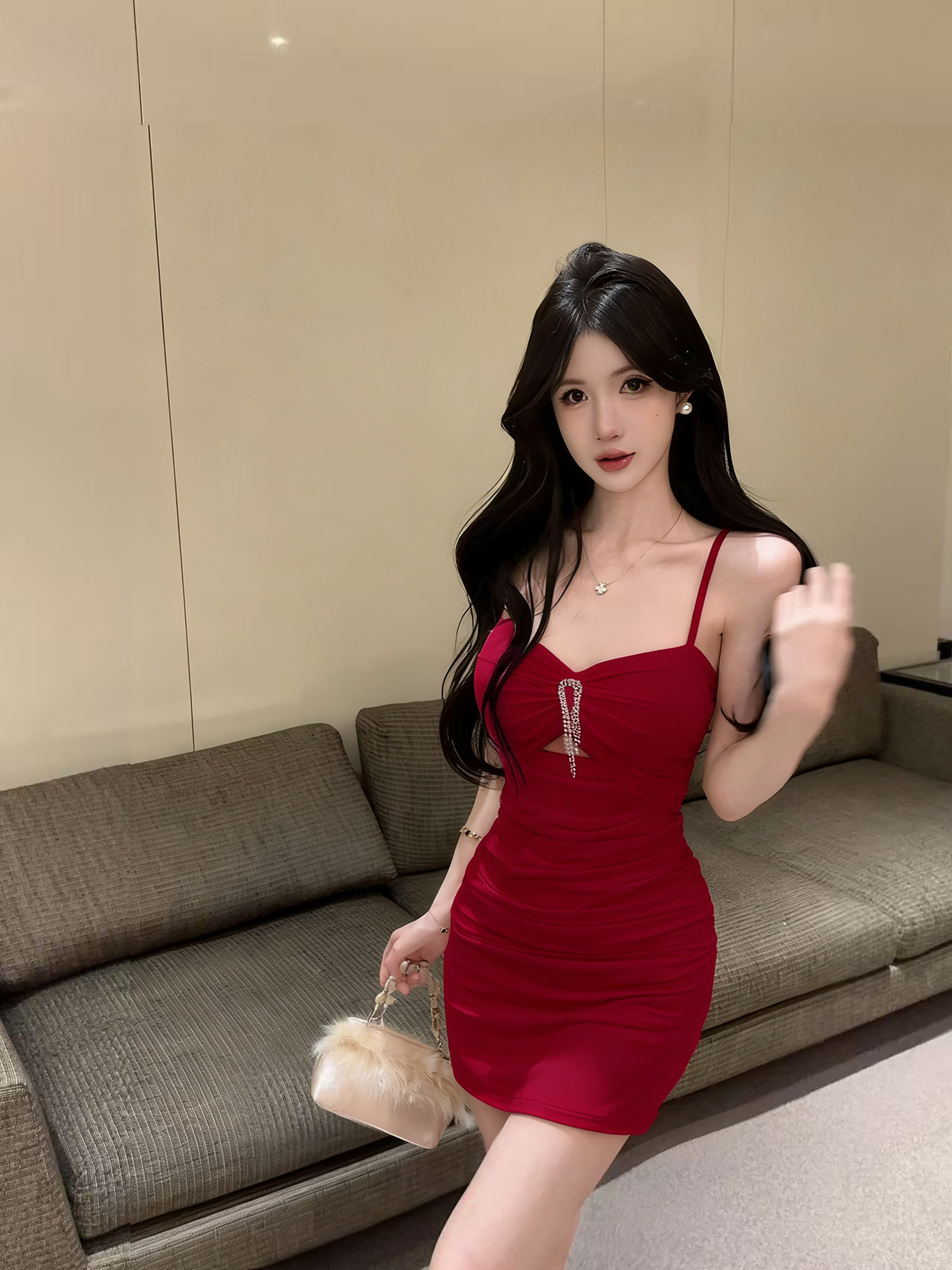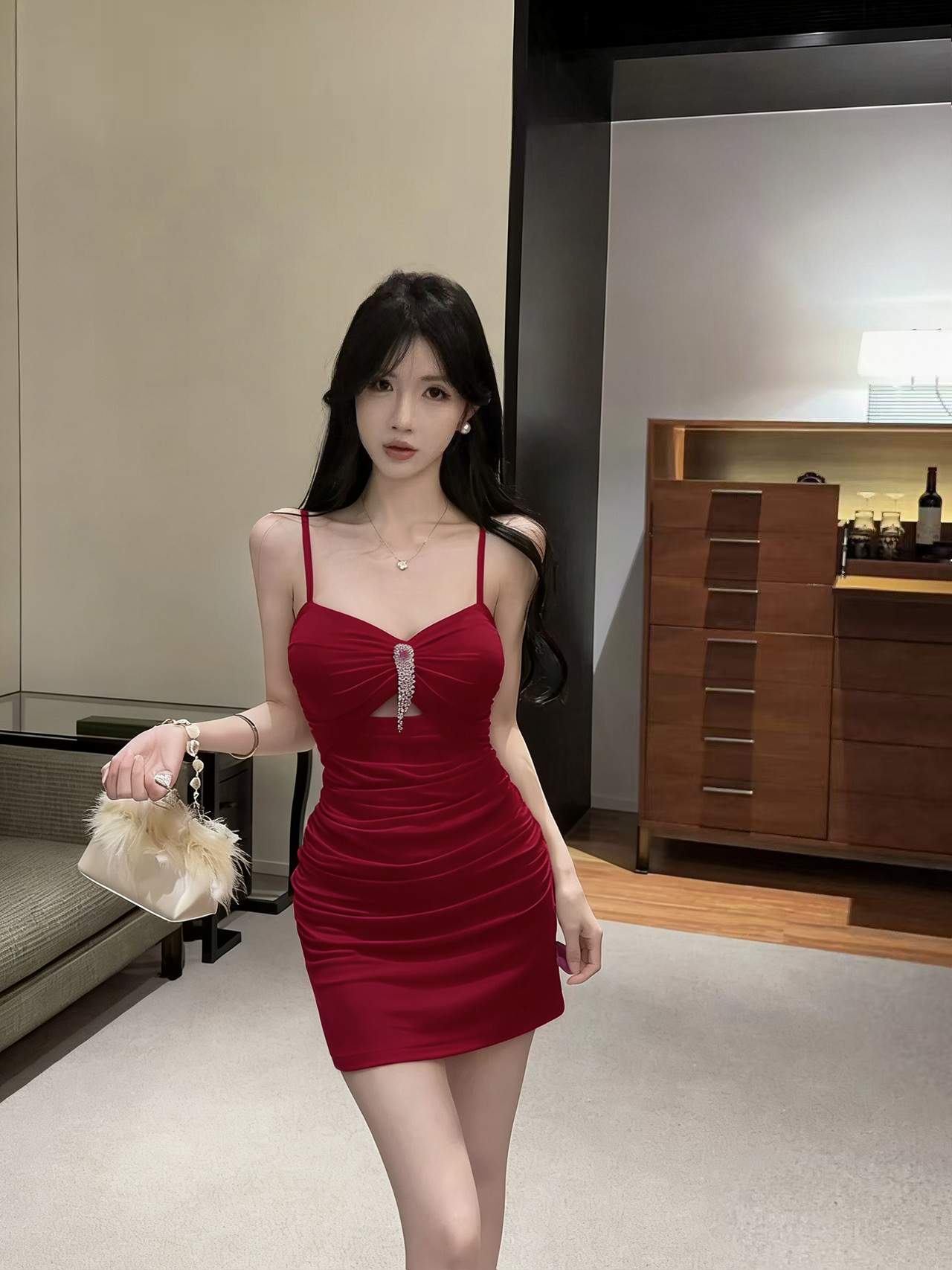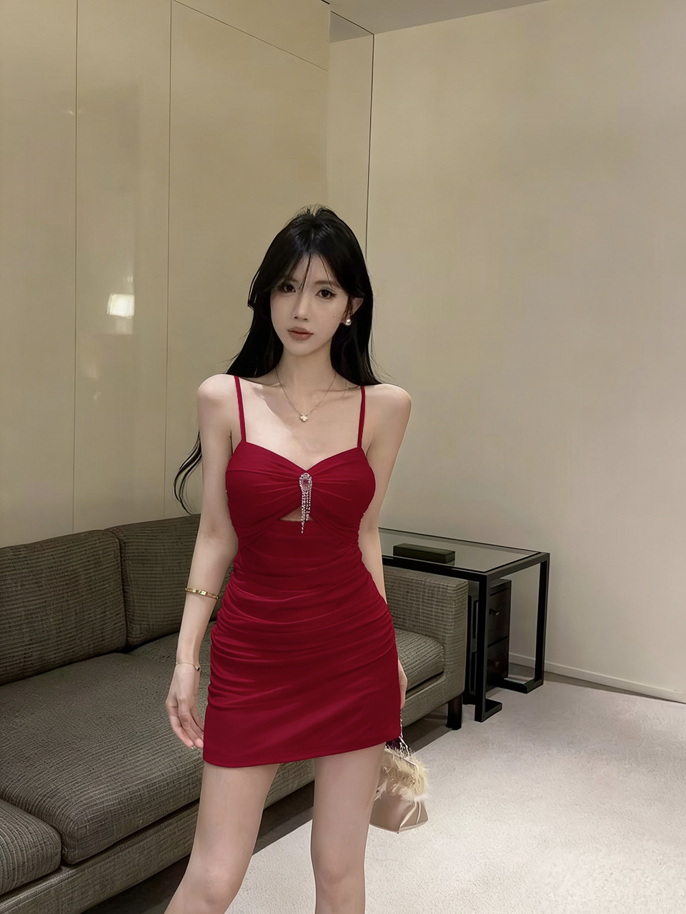 实拍性感网纱低胸镂空吊带短款打底连衣裙