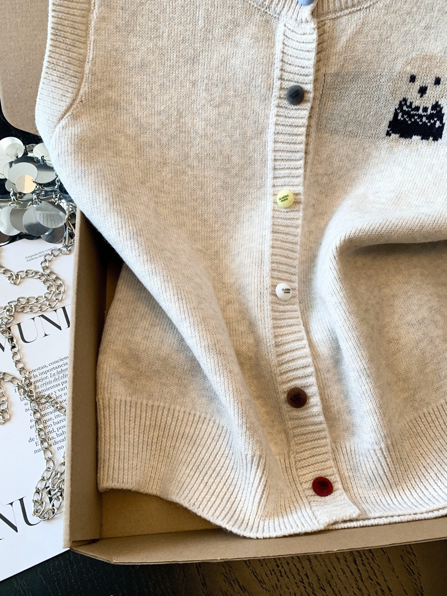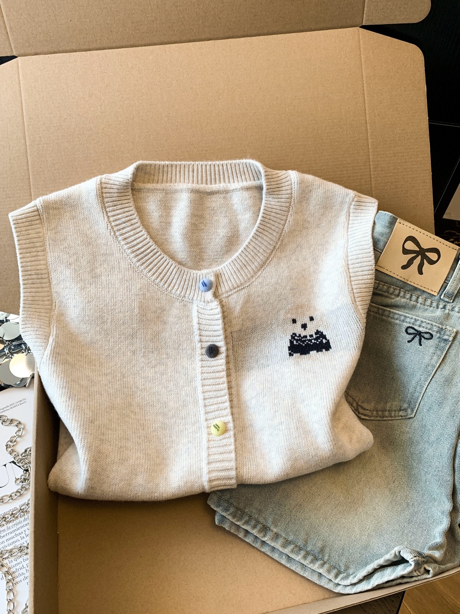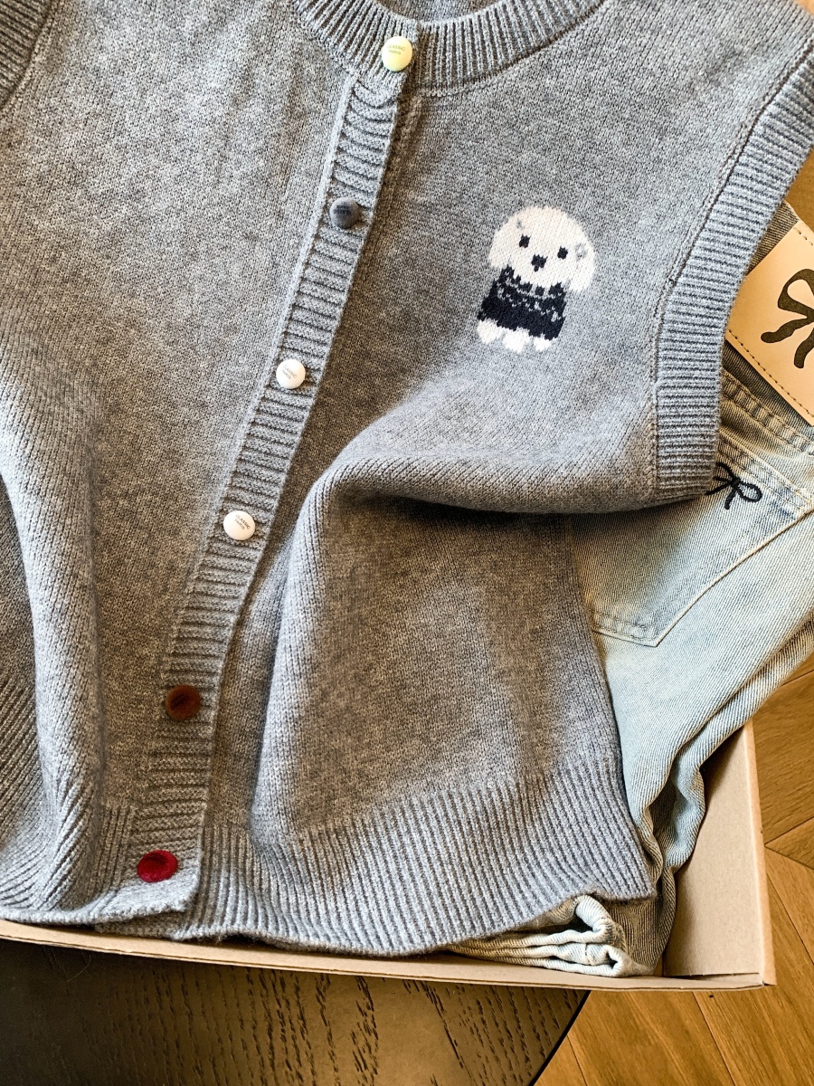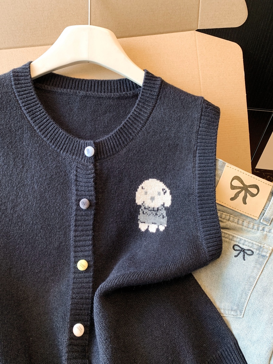 实拍复古圆领刺绣针织开衫马甲女2026春季彩扣设计感叠穿背心上衣
