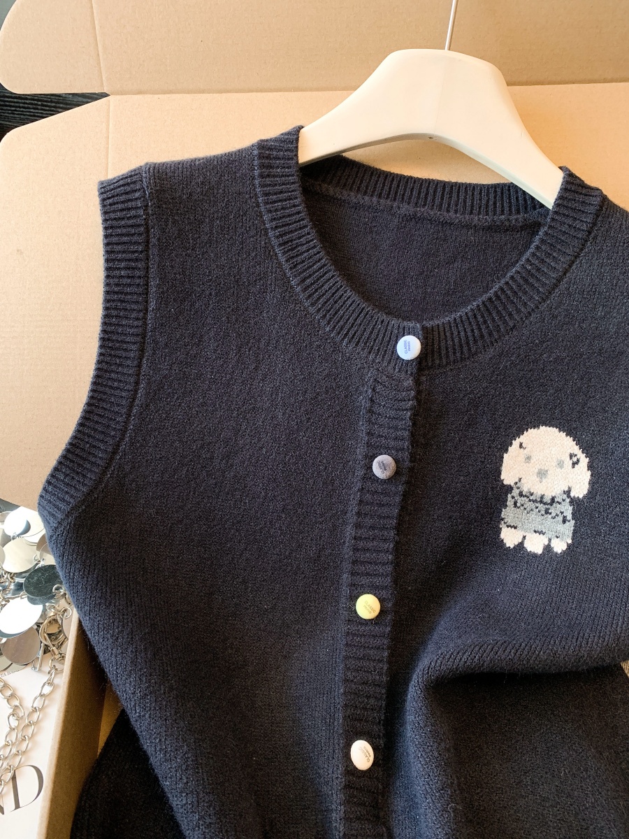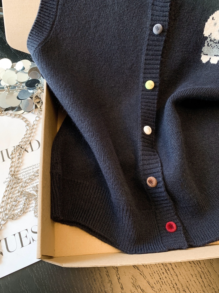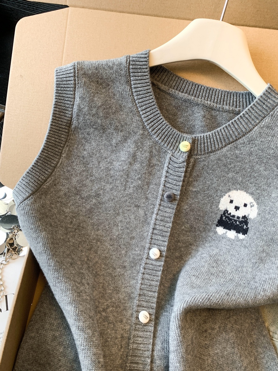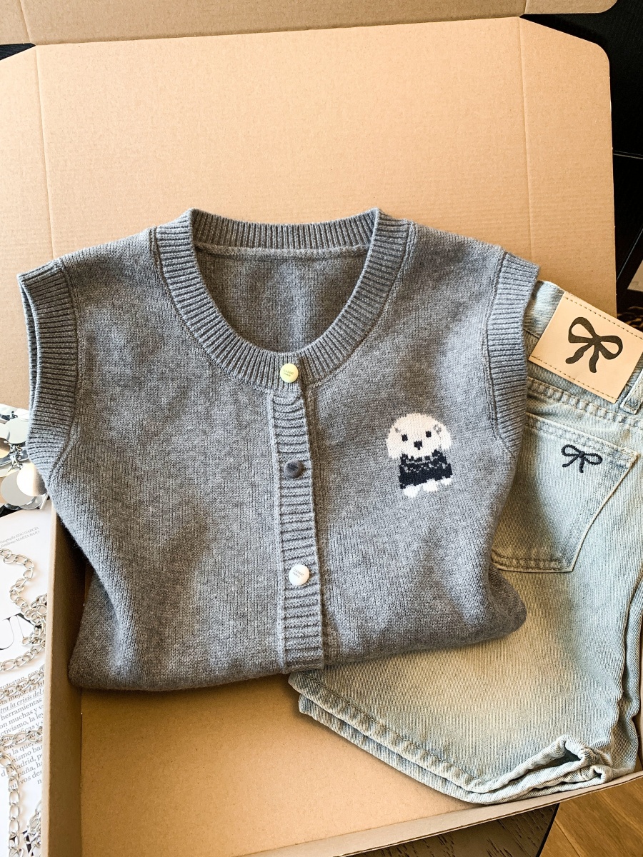 实拍复古圆领刺绣针织开衫马甲女2026春季彩扣设计感叠穿背心上衣