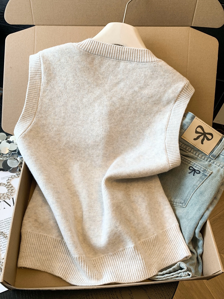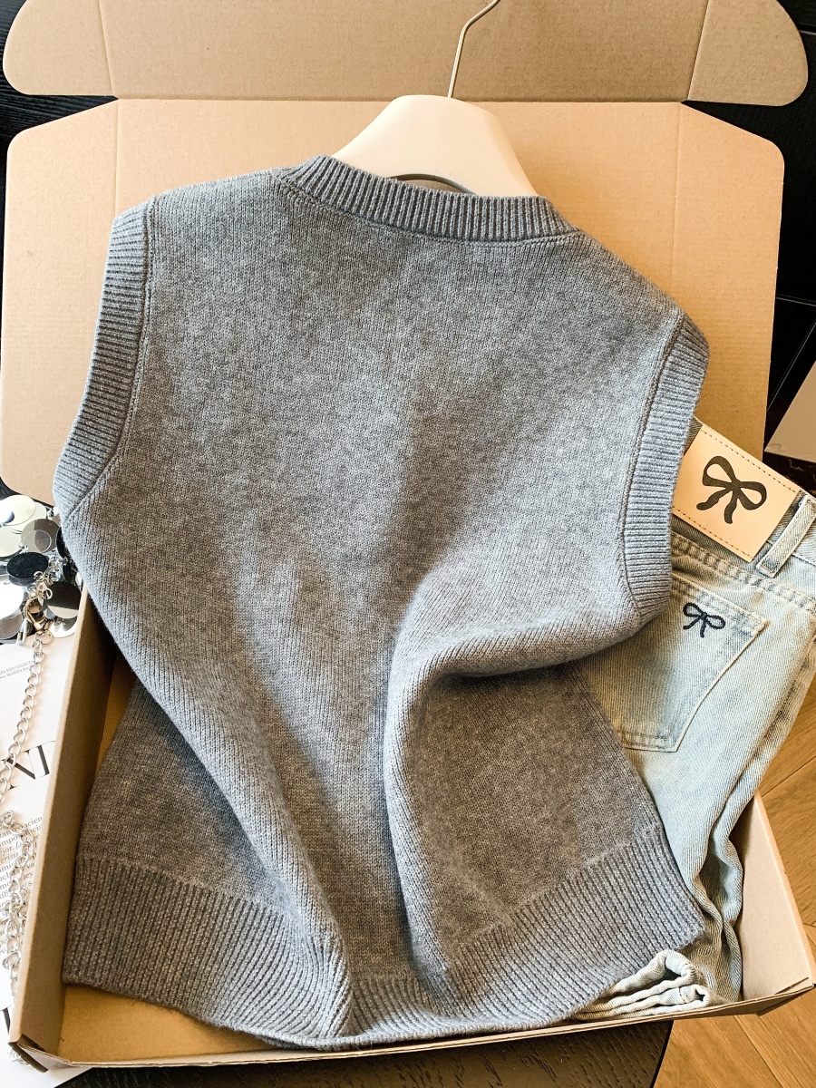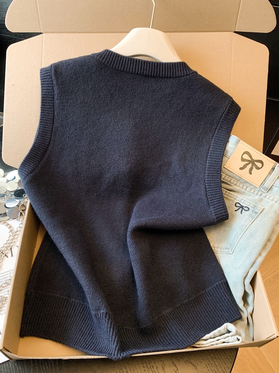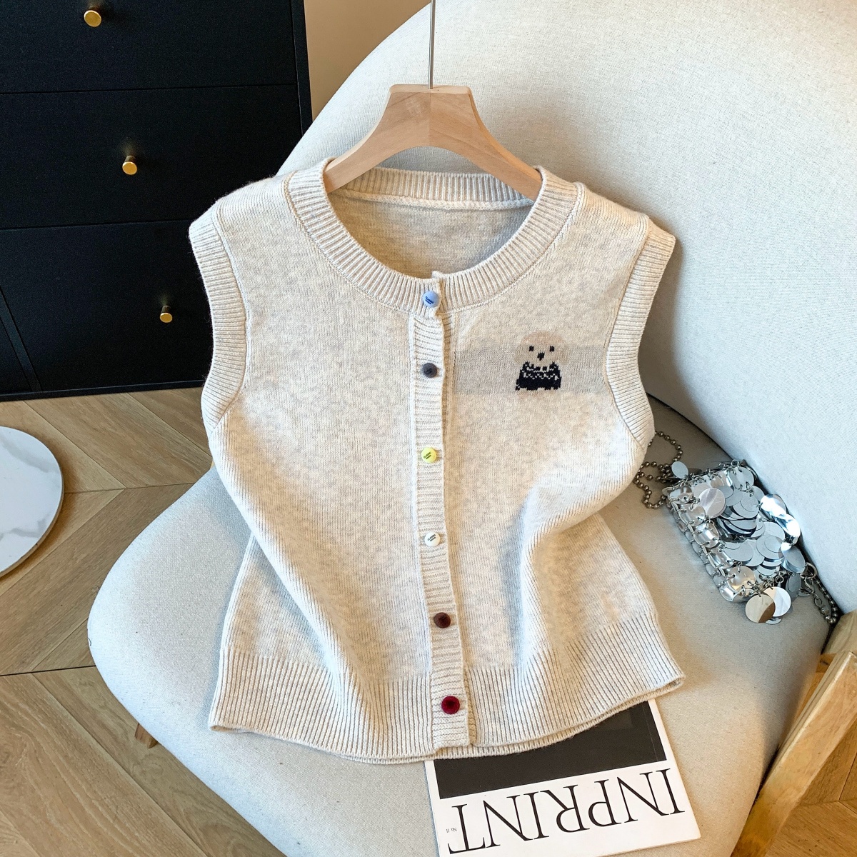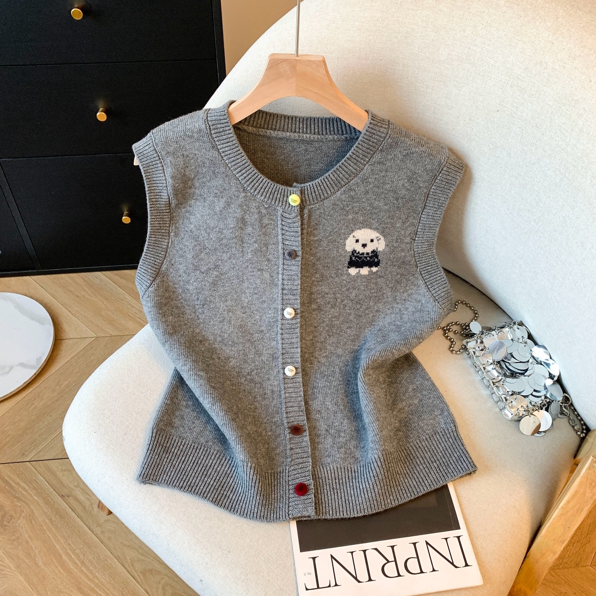 实拍复古圆领刺绣针织开衫马甲女2026春季彩扣设计感叠穿背心上衣