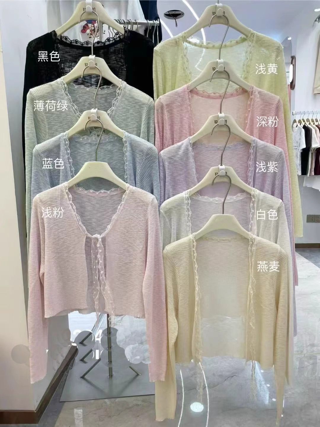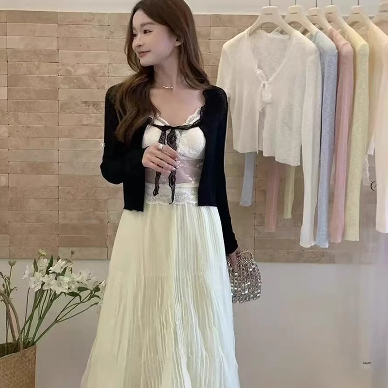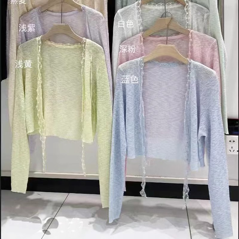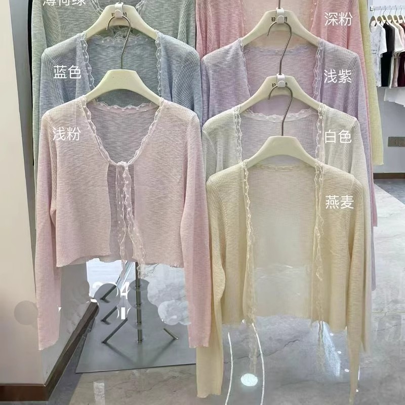 蕾丝拼接系带冰丝针织开衫女春季法式披肩外搭防晒罩衫配裙子上衣