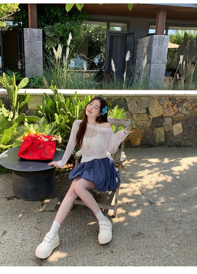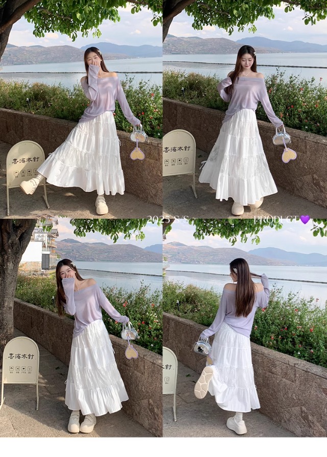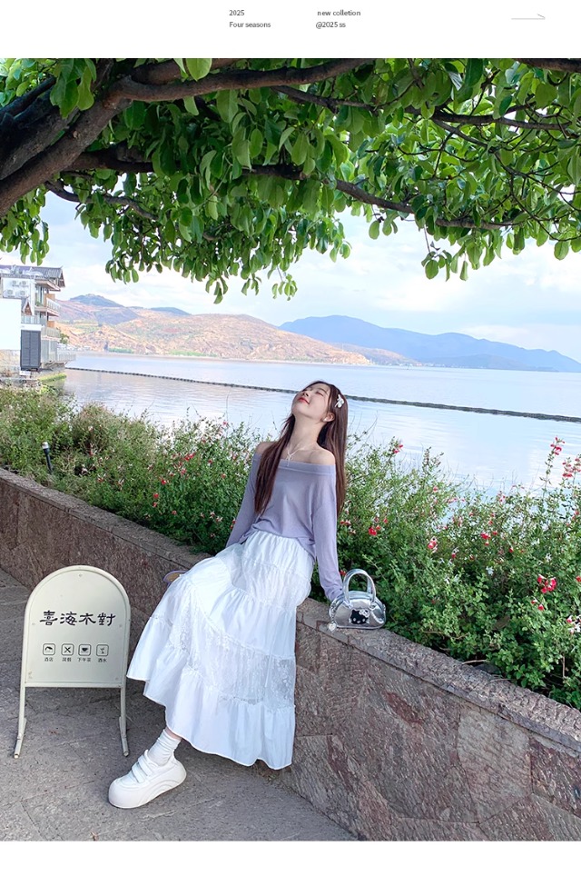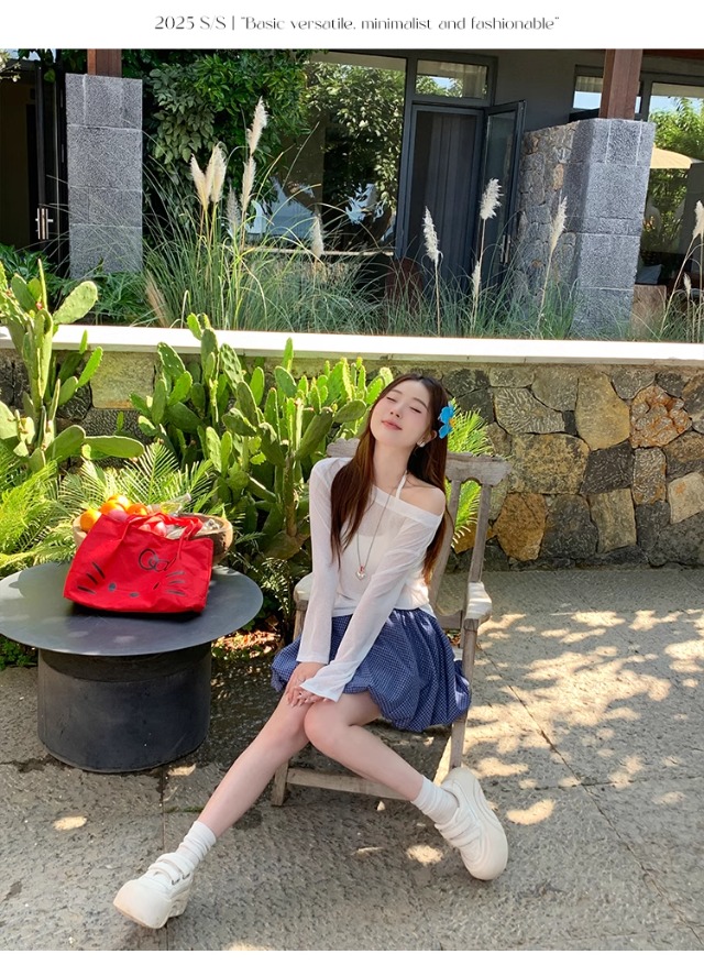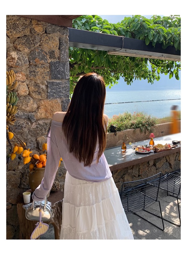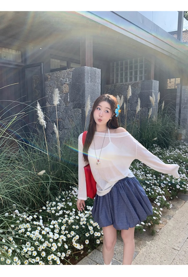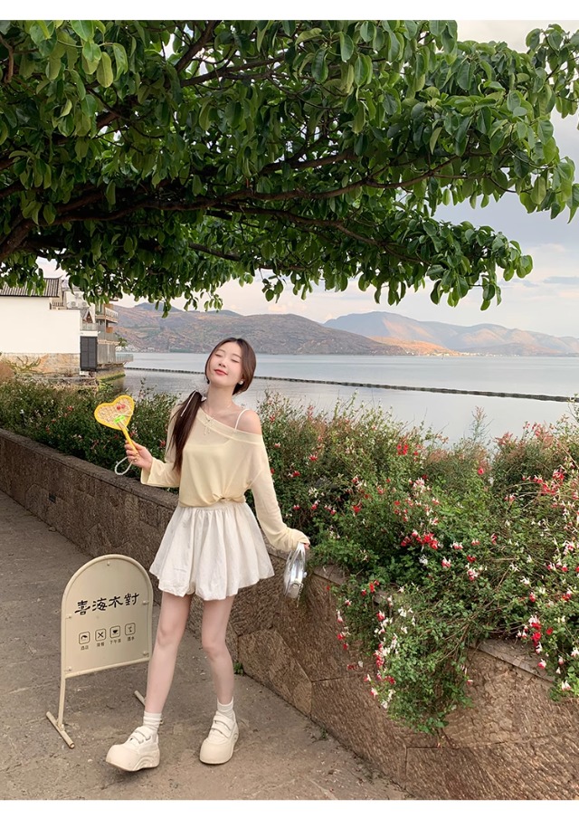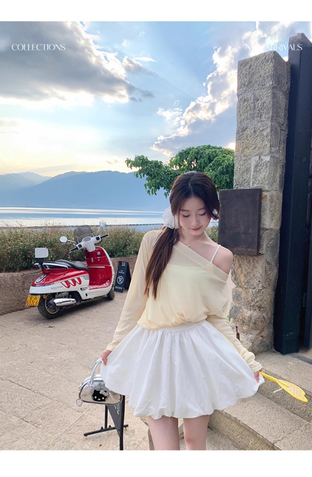 一字肩防晒罩衫女2026年夏季新款斜肩宽松显瘦慵懒风长袖t恤上衣