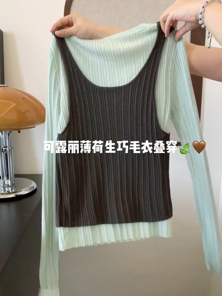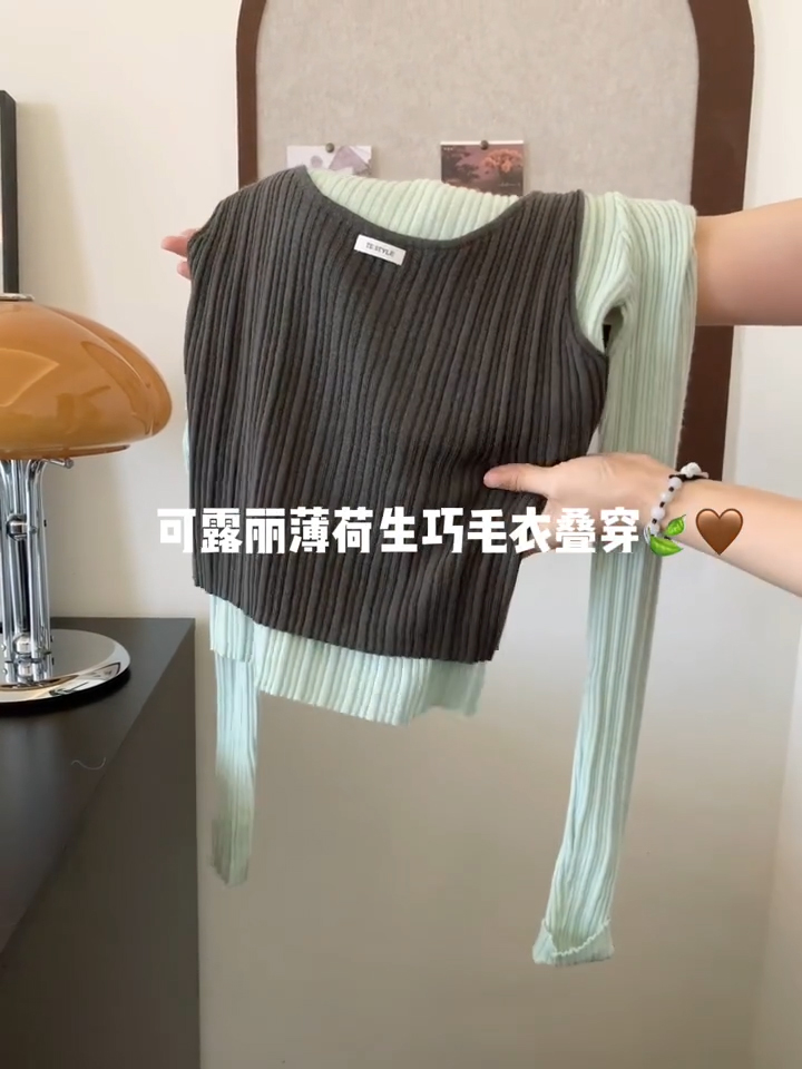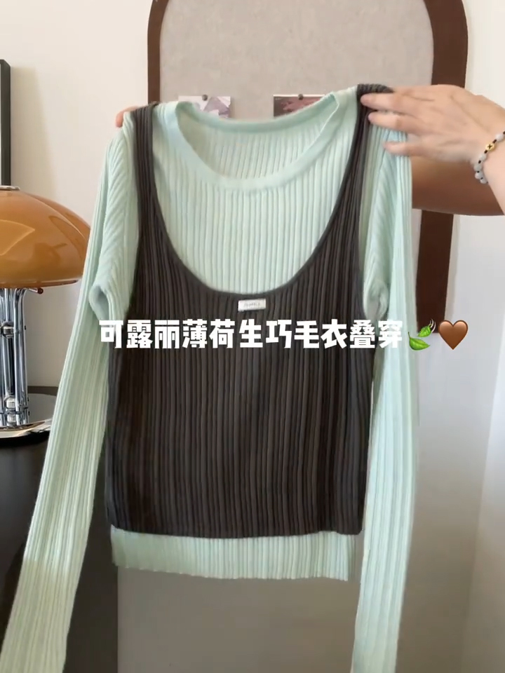 设计感假两件撞色圆领针织衫女2026早春新款通勤显瘦百搭长袖上衣