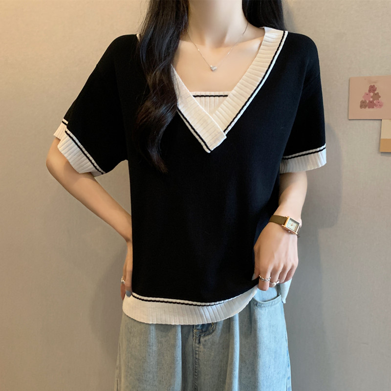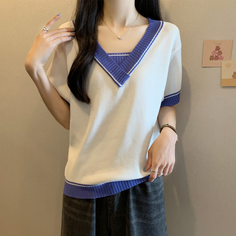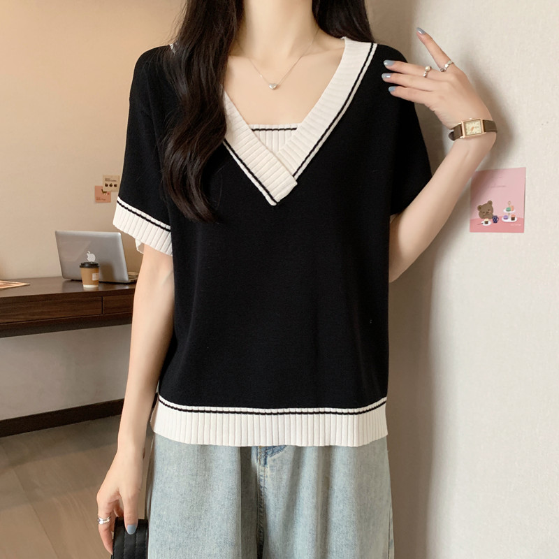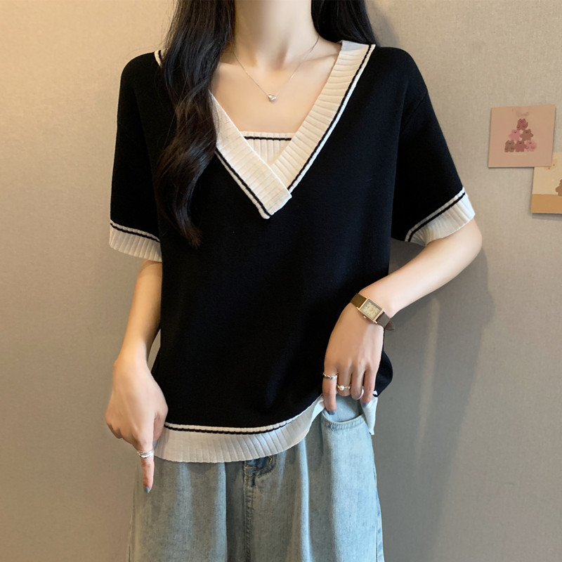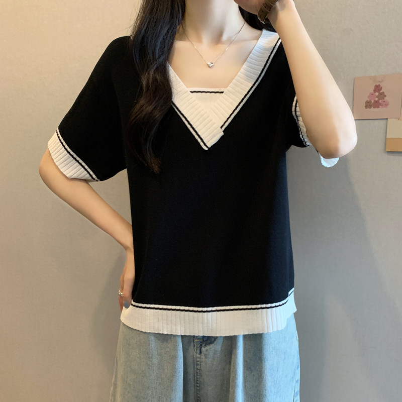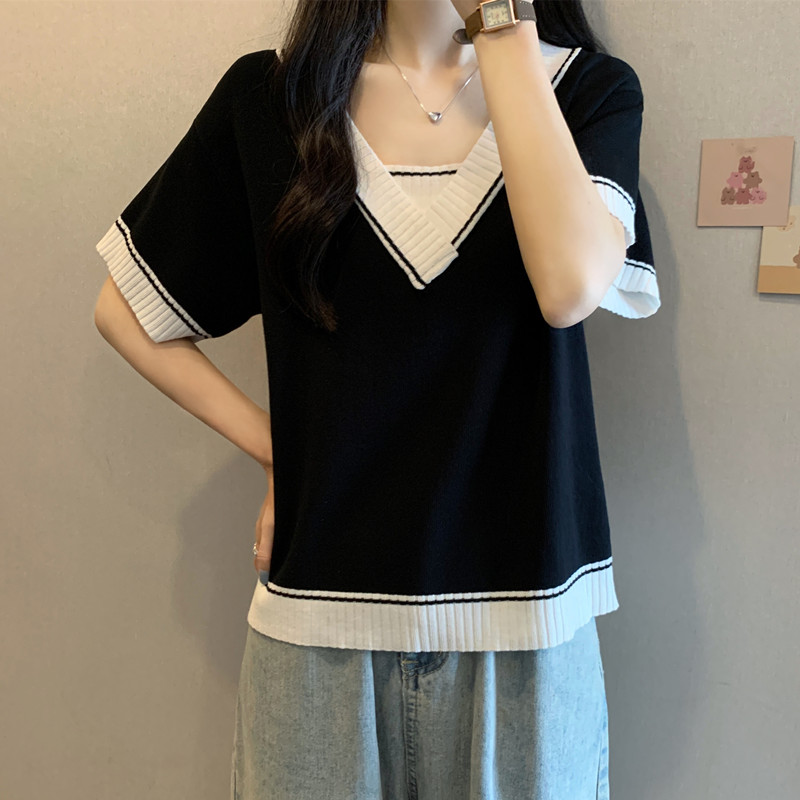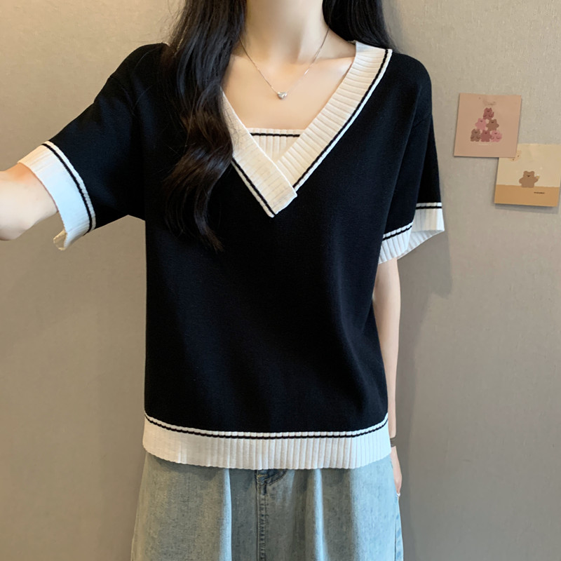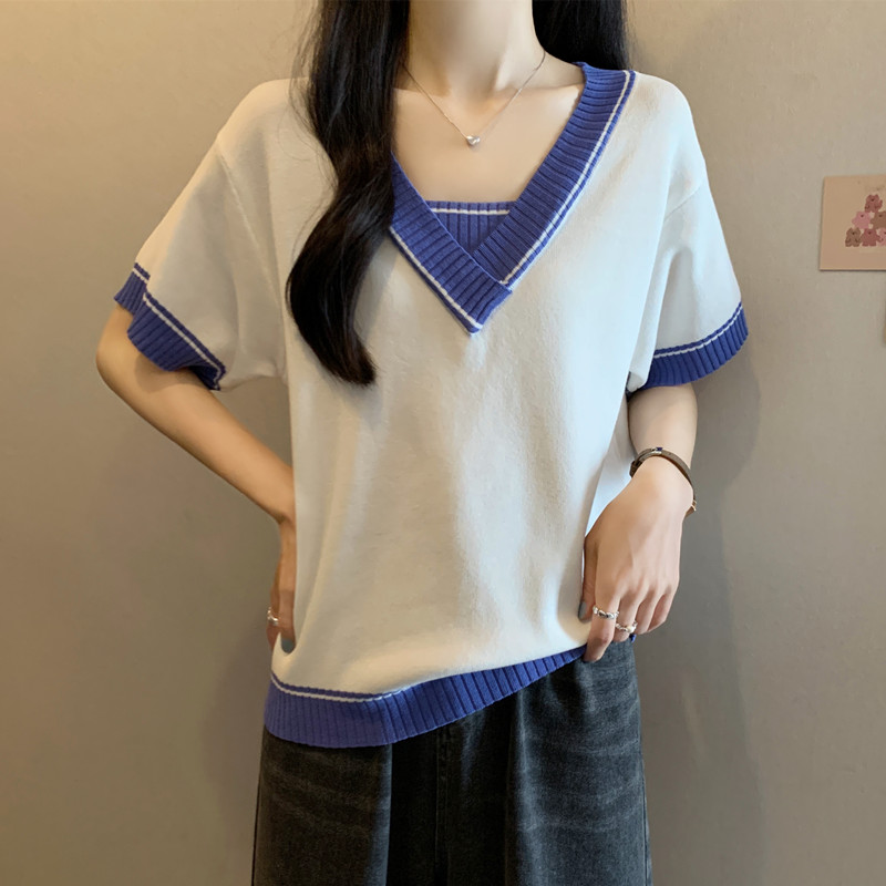 实拍 胖妹妹夏装大码女装新款韩版套头V领宽松短袖T恤显瘦上衣潮