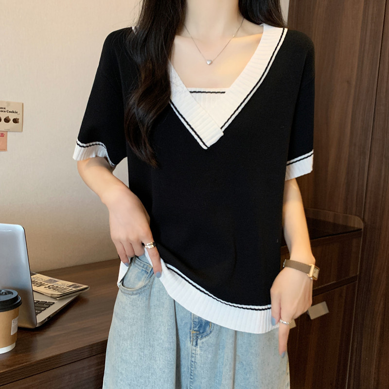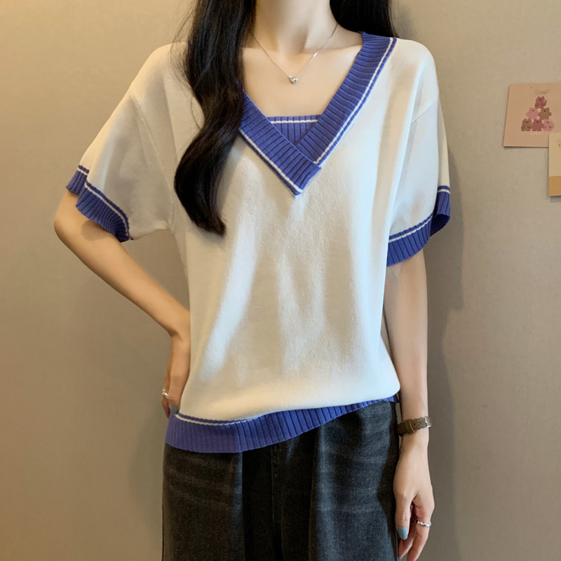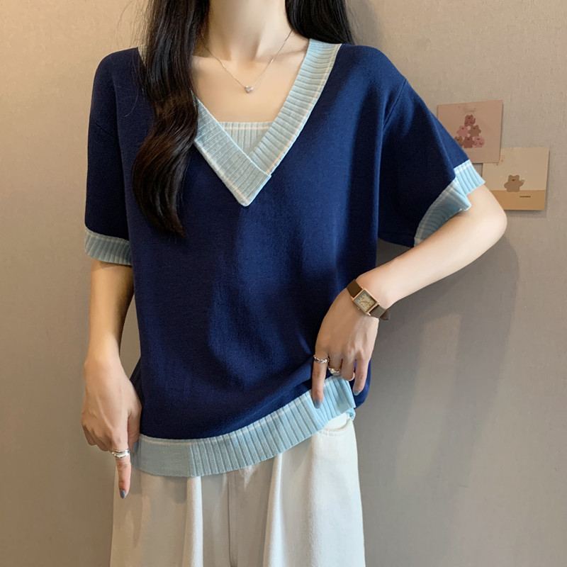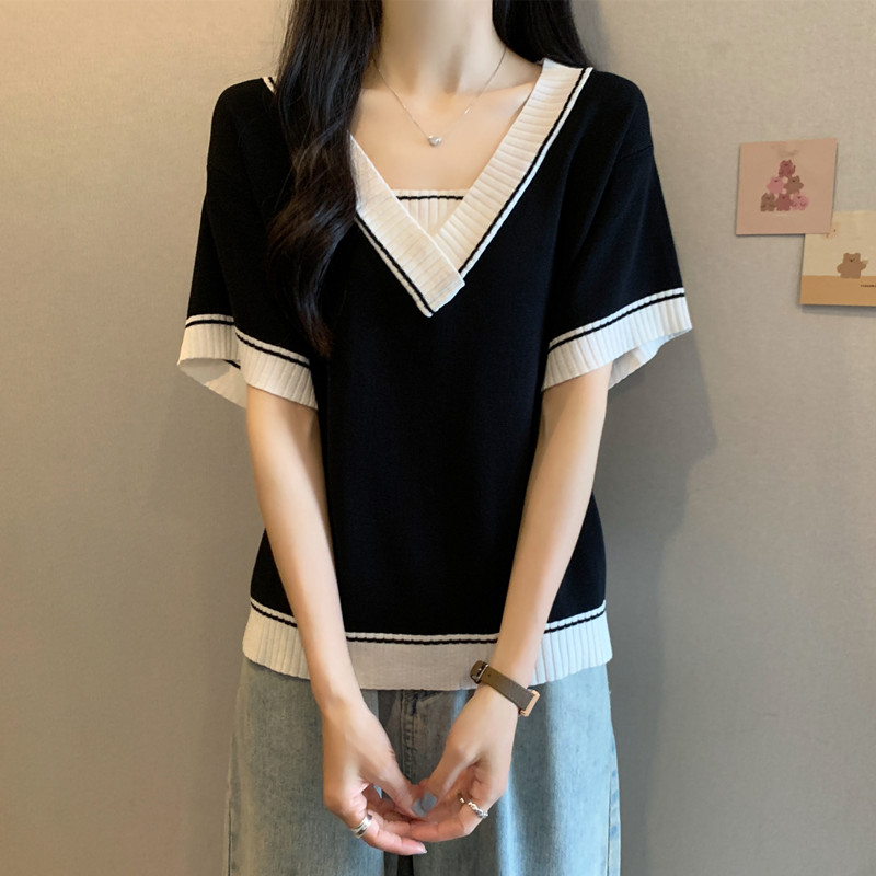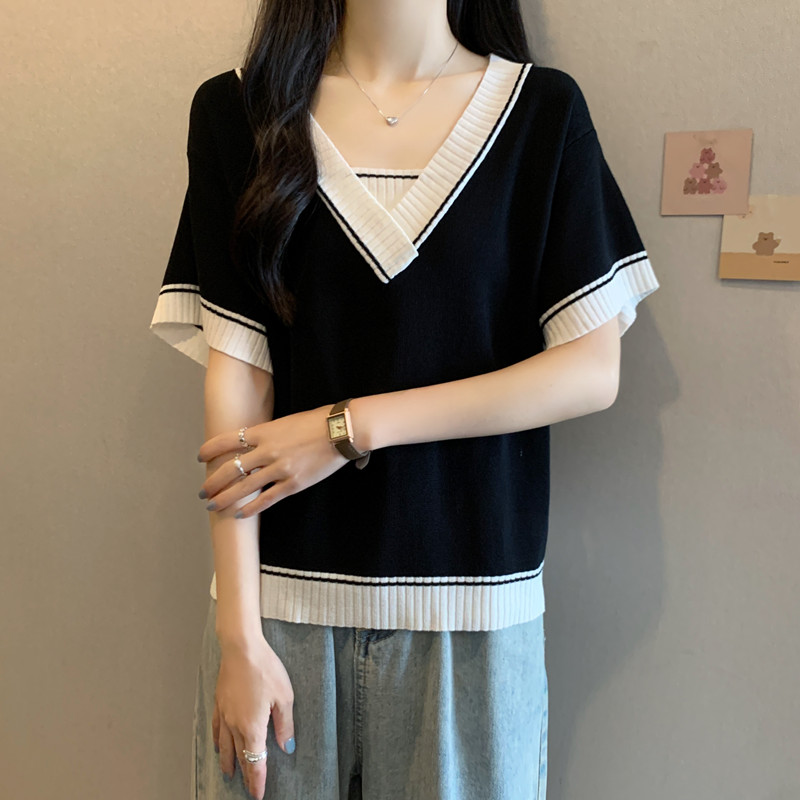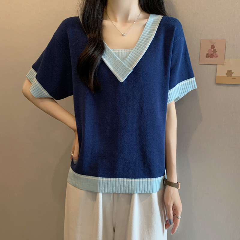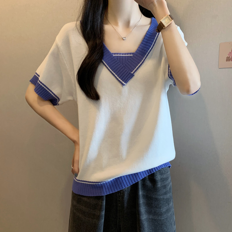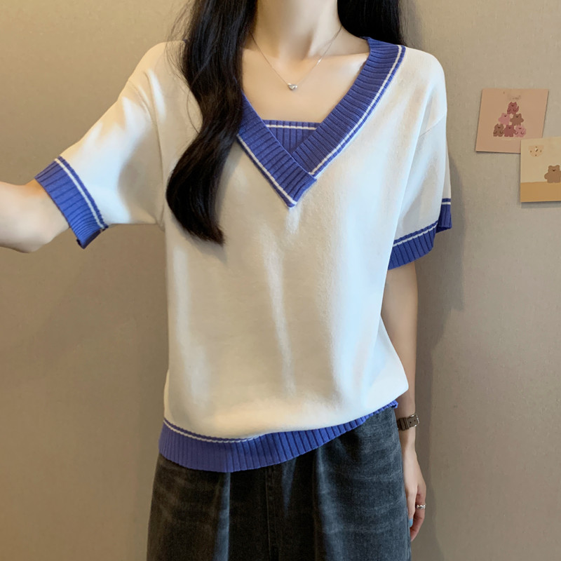 实拍 胖妹妹夏装大码女装新款韩版套头V领宽松短袖T恤显瘦上衣潮