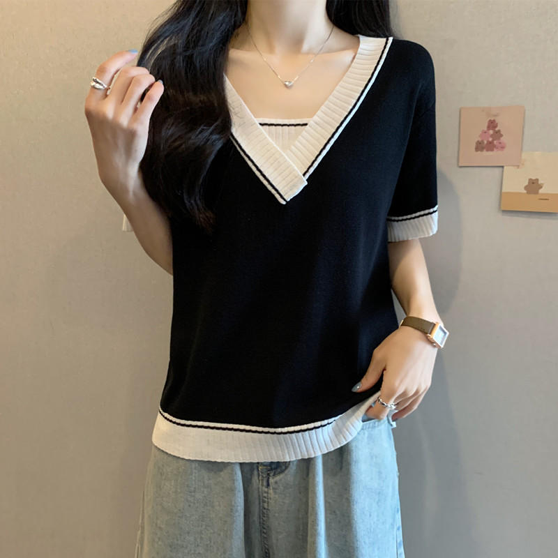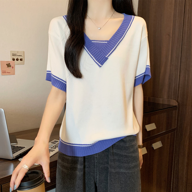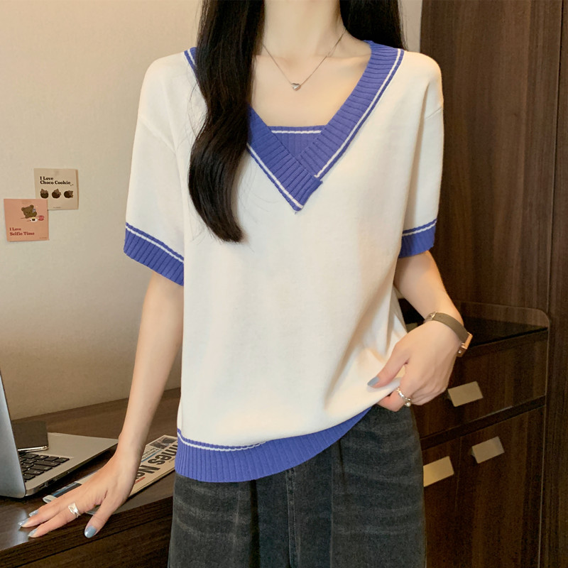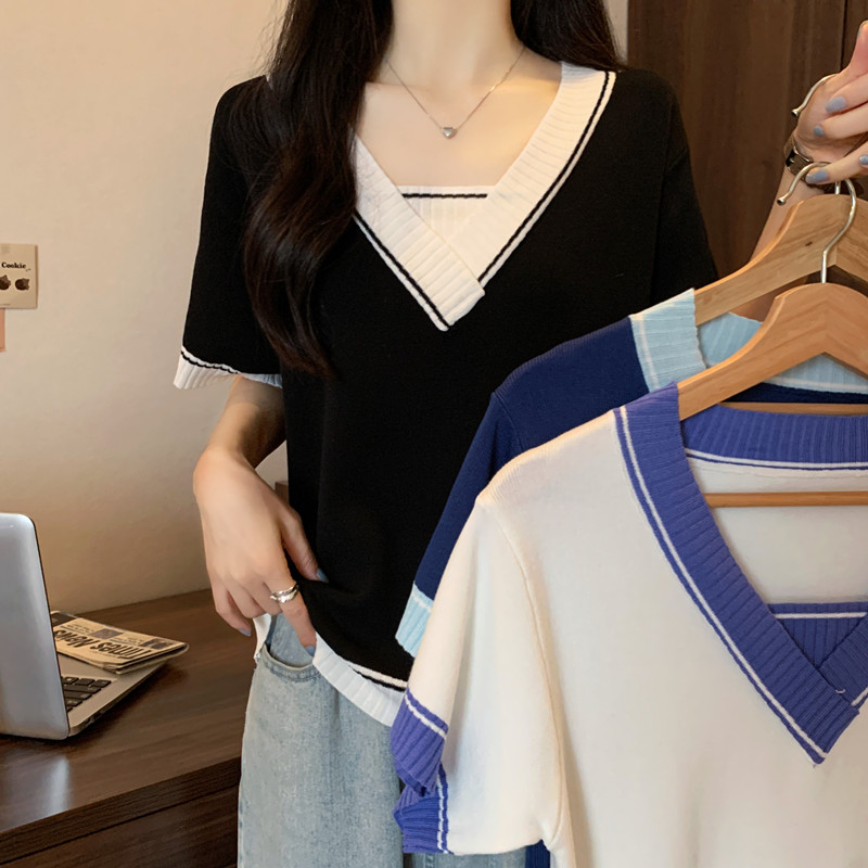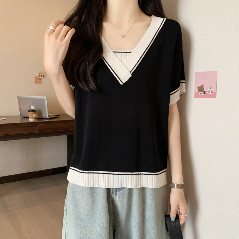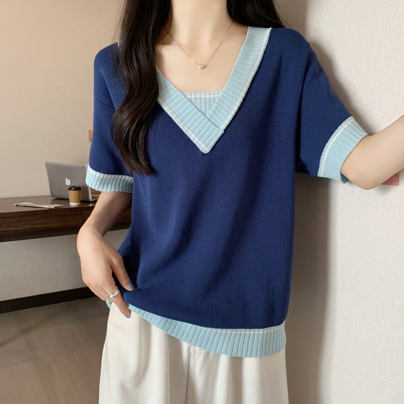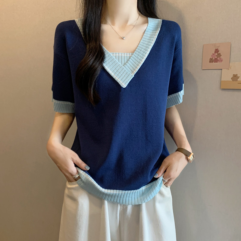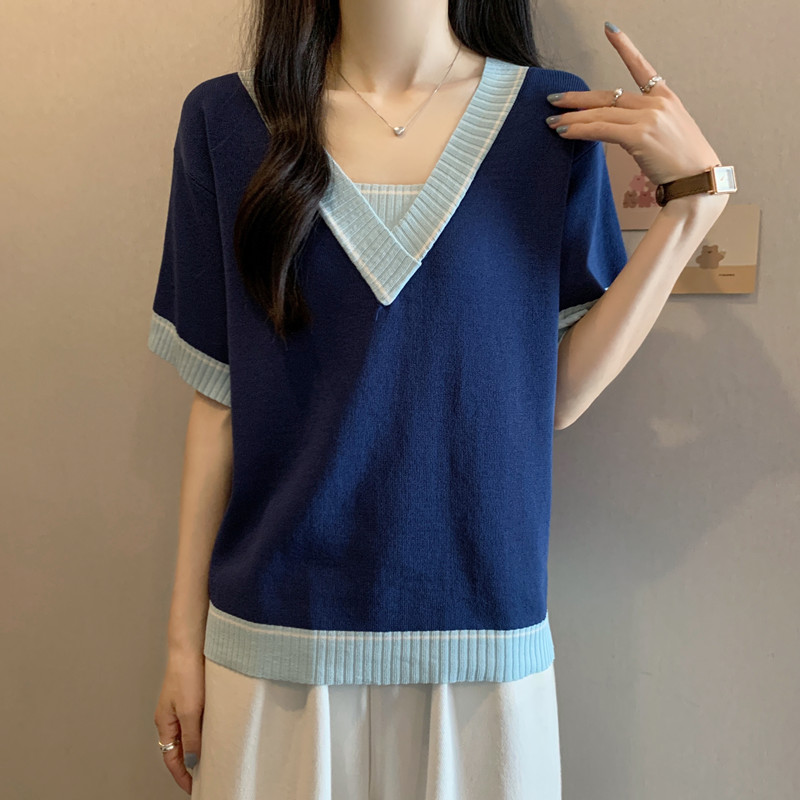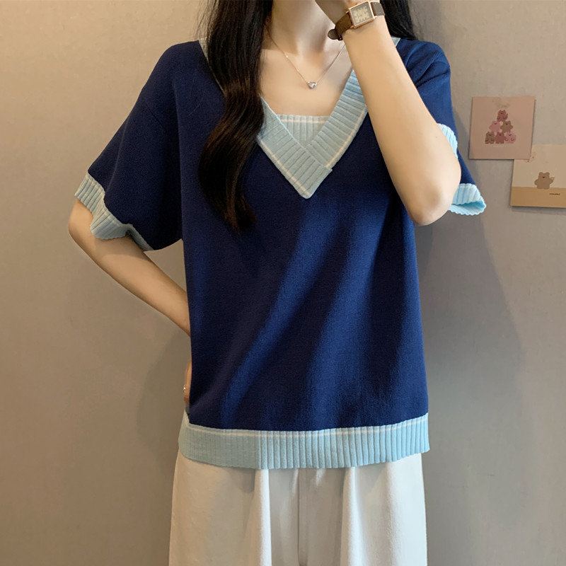 实拍 胖妹妹夏装大码女装新款韩版套头V领宽松短袖T恤显瘦上衣潮
