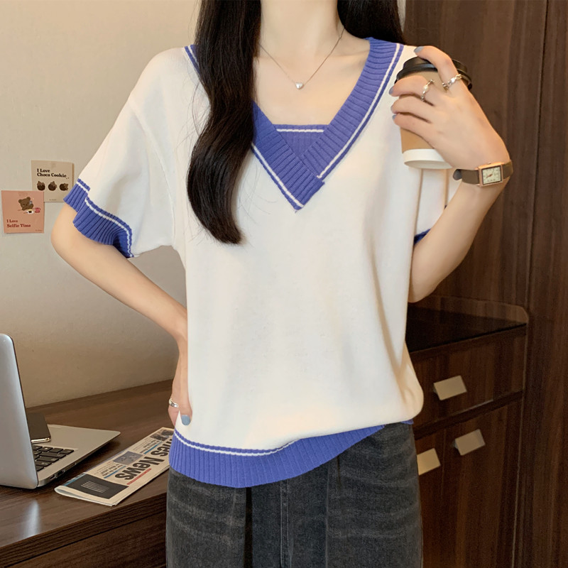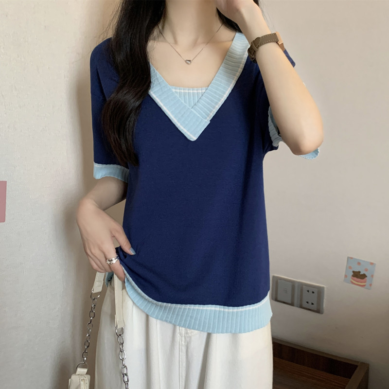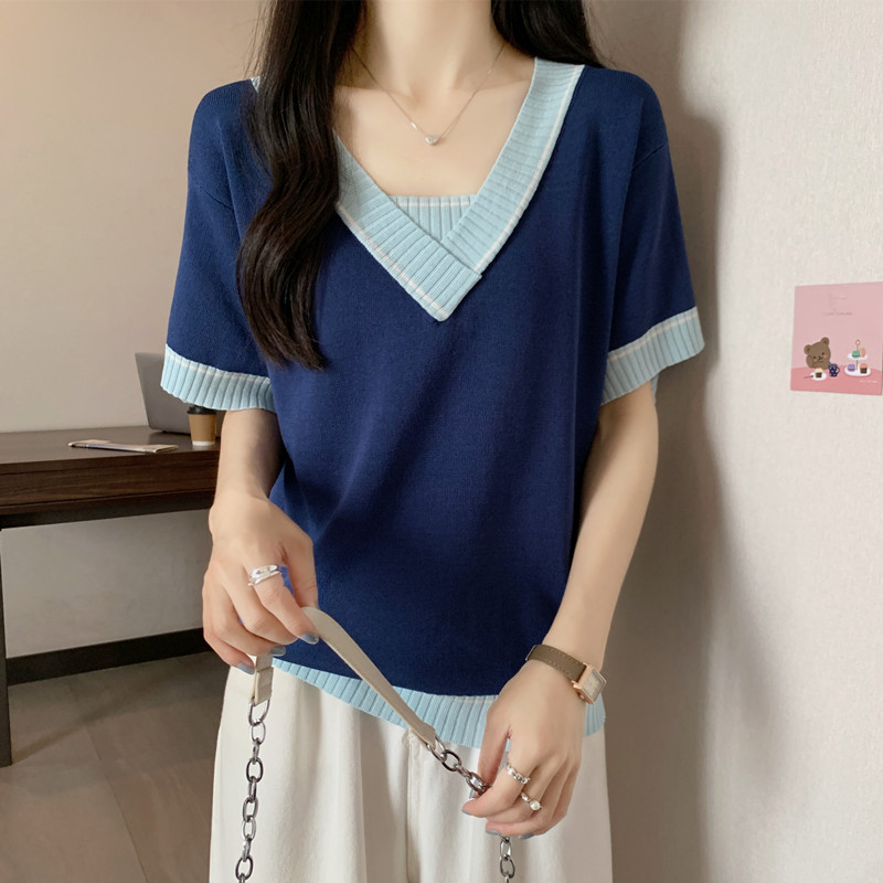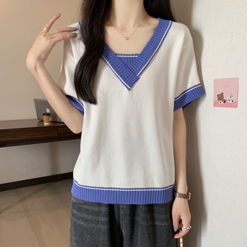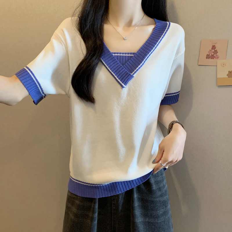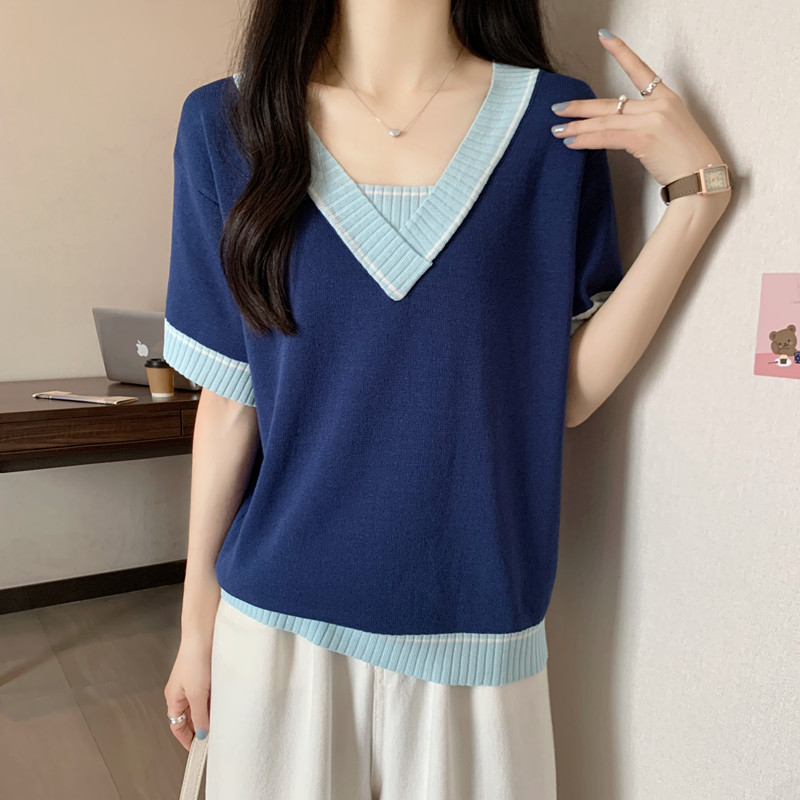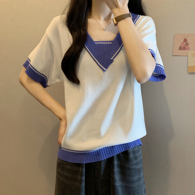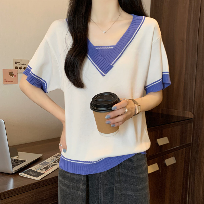 实拍 胖妹妹夏装大码女装新款韩版套头V领宽松短袖T恤显瘦上衣潮