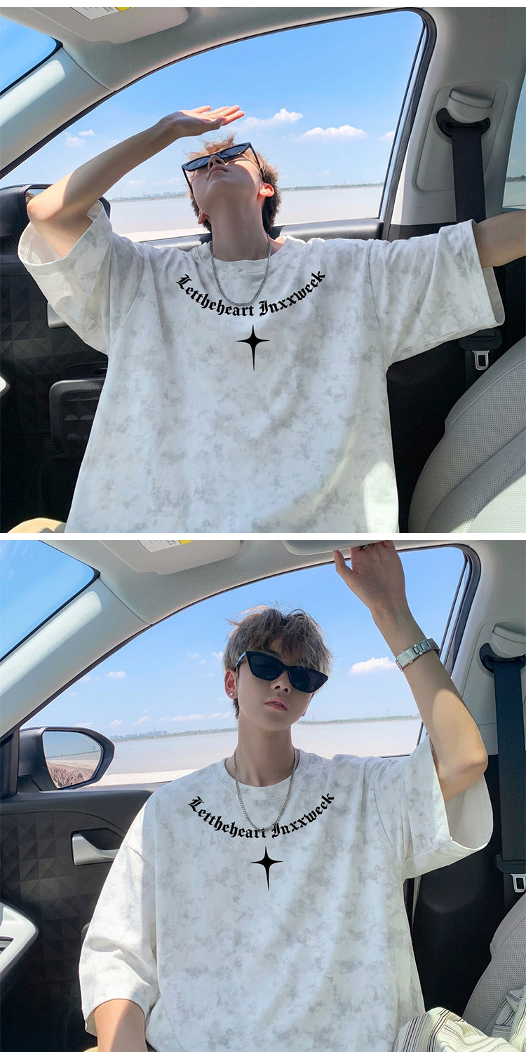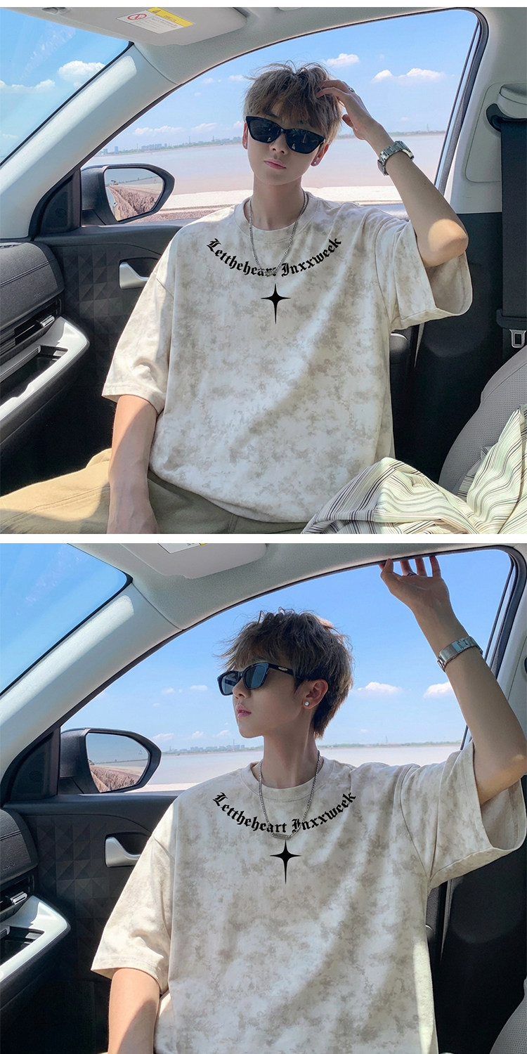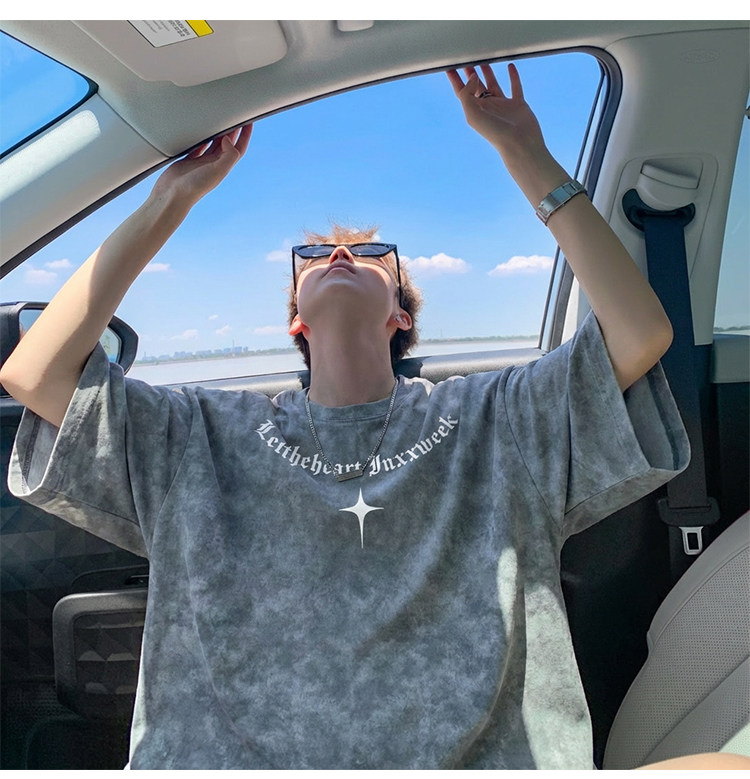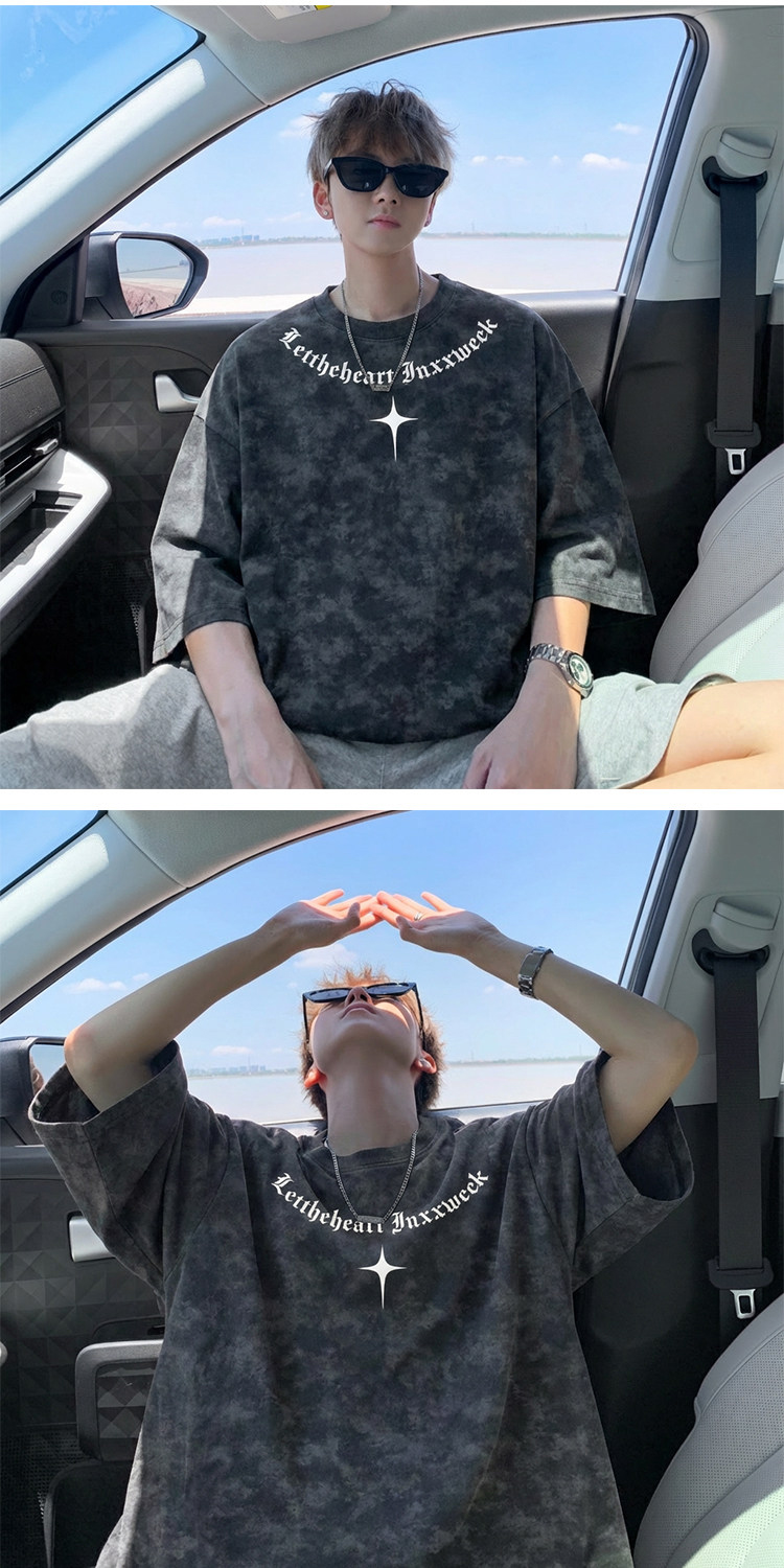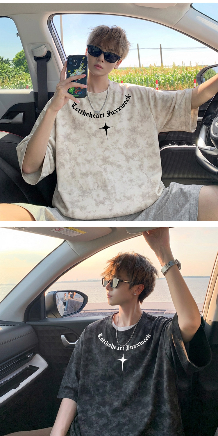 美式扎染短袖T恤男款夏季复古潮流重磅痞帅爆款重磅宽松半袖体恤