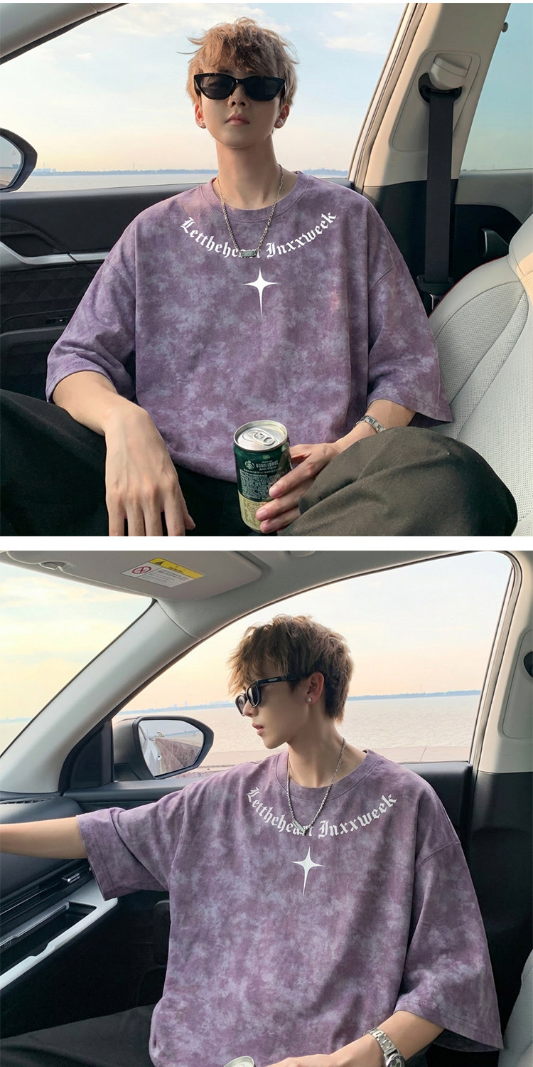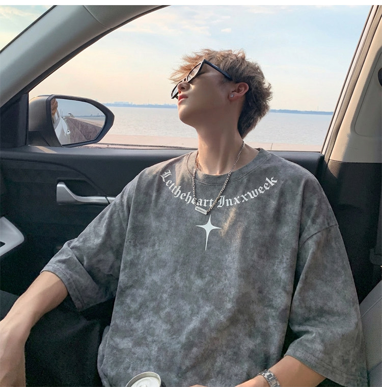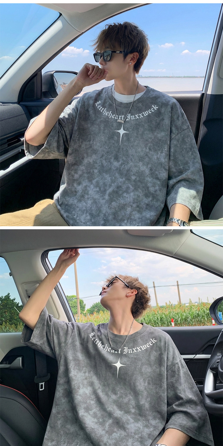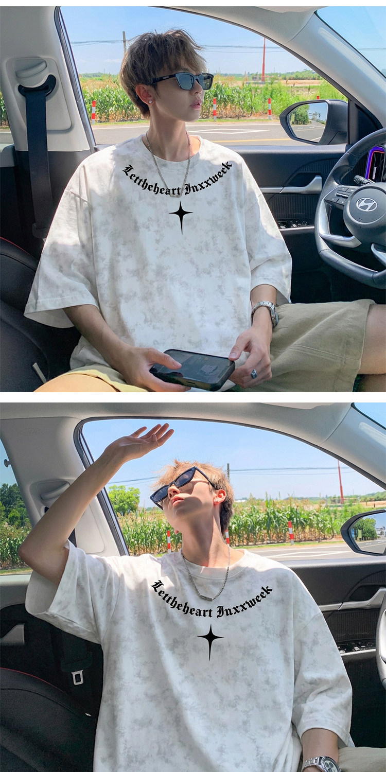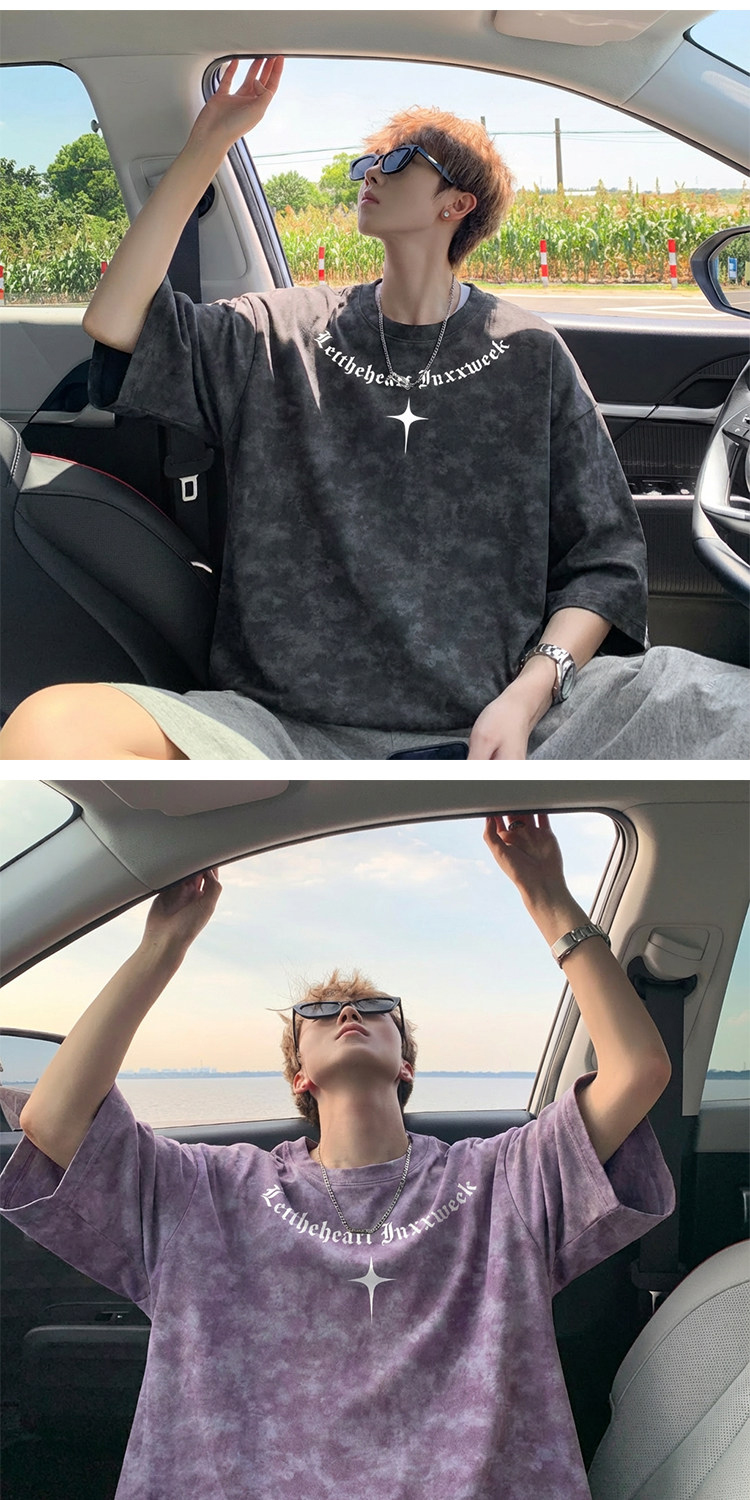 美式扎染短袖T恤男款夏季复古潮流重磅痞帅爆款重磅宽松半袖体恤