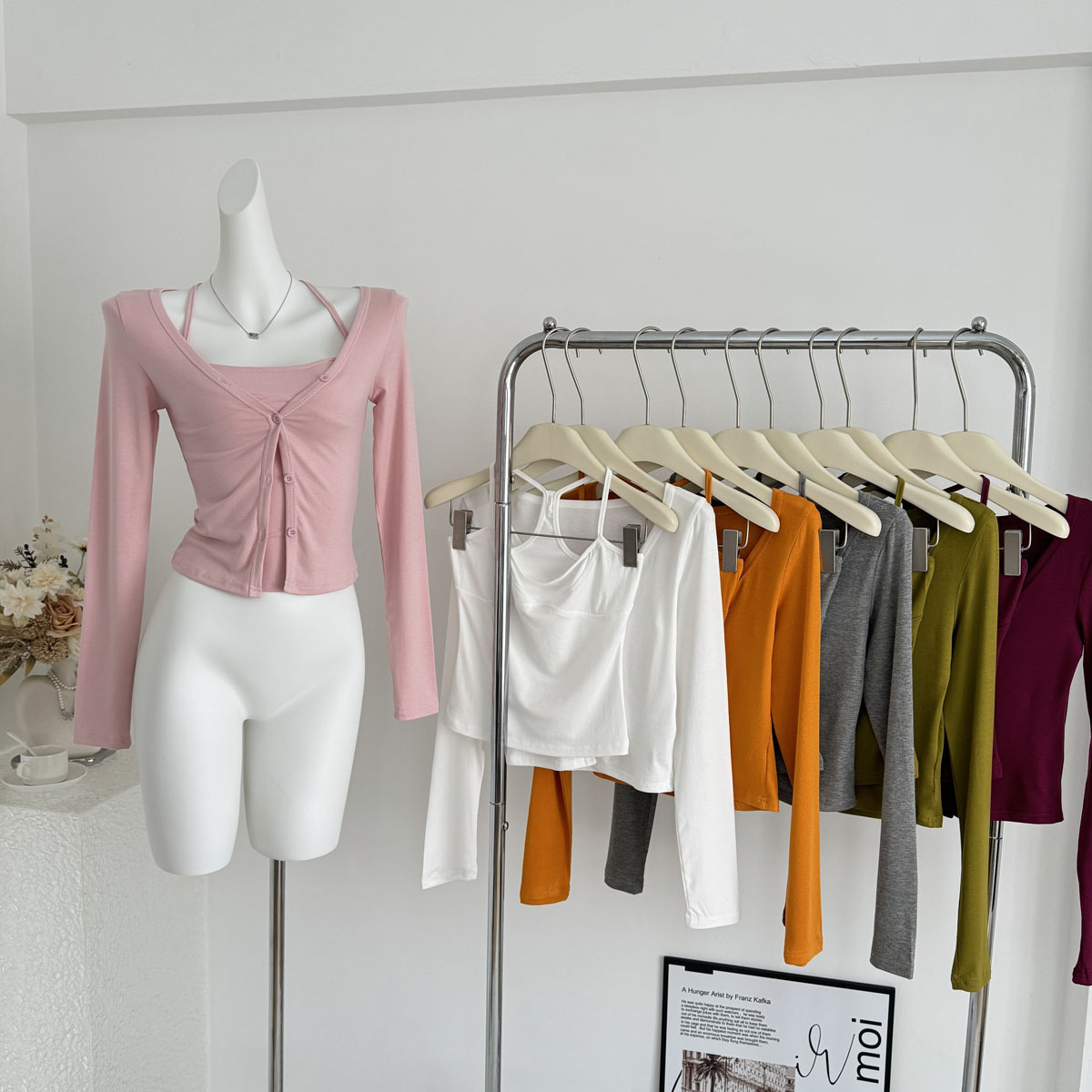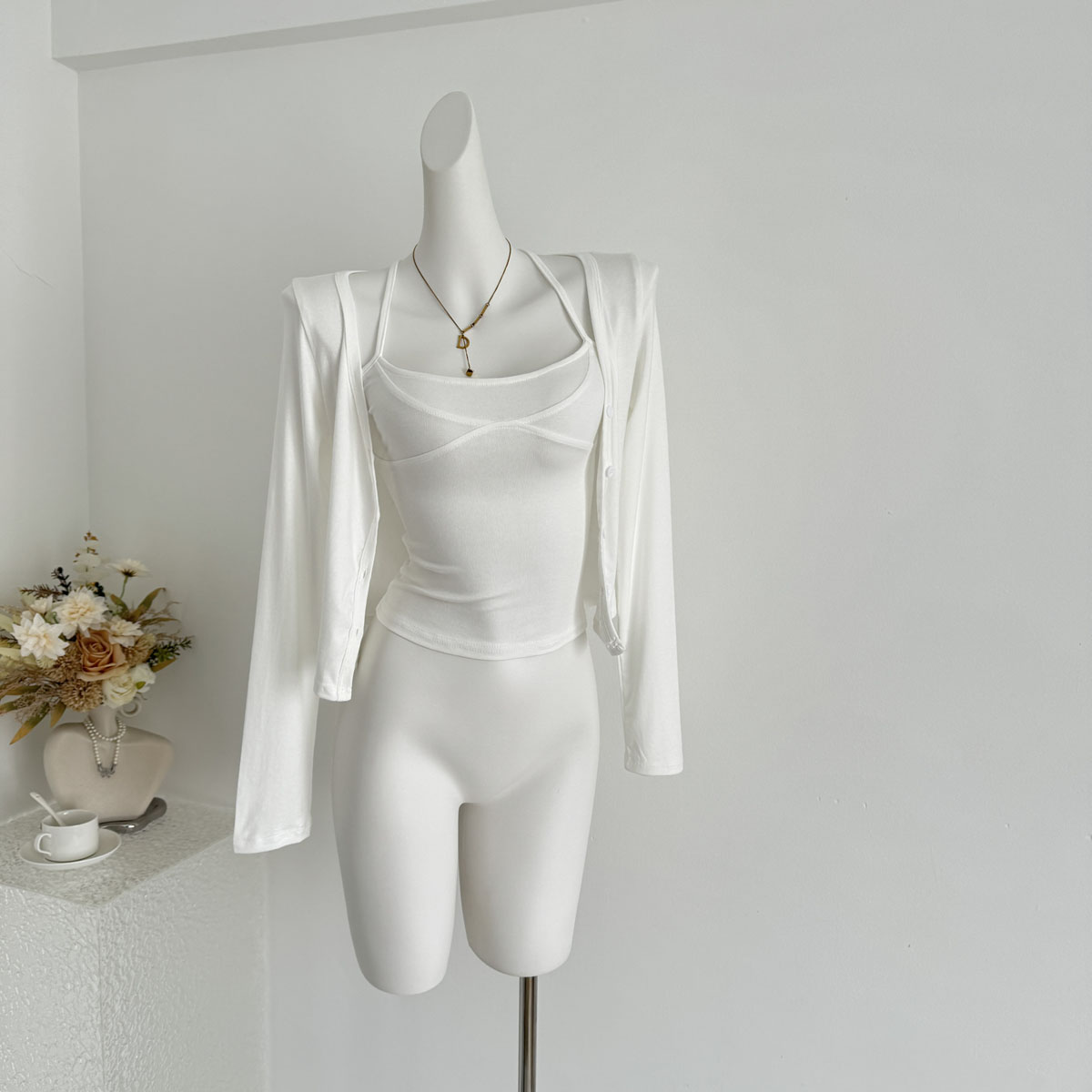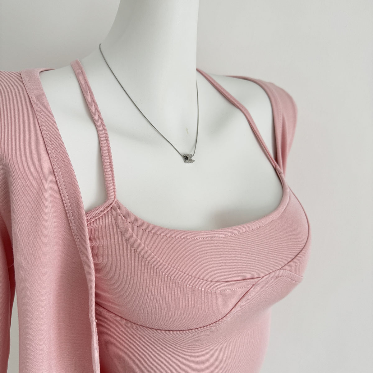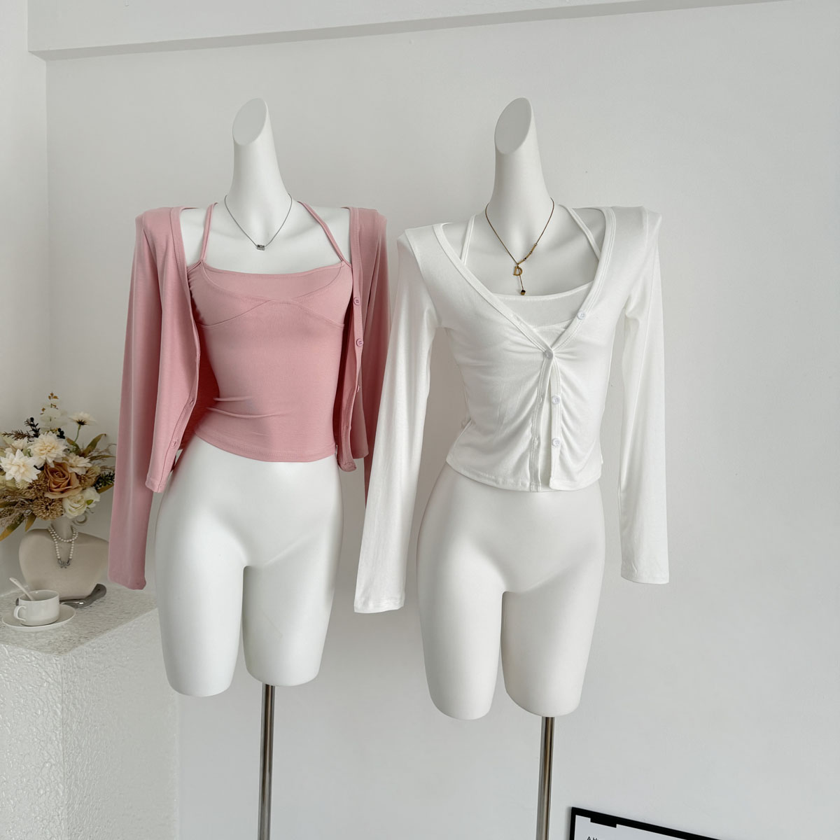 Suuuicee Hot Bangkok - 다양한 색상으로 구매하세요! 투피스 세트: 탱크탑, 슬림핏 캐미솔, 싱글 브레스트 가디건