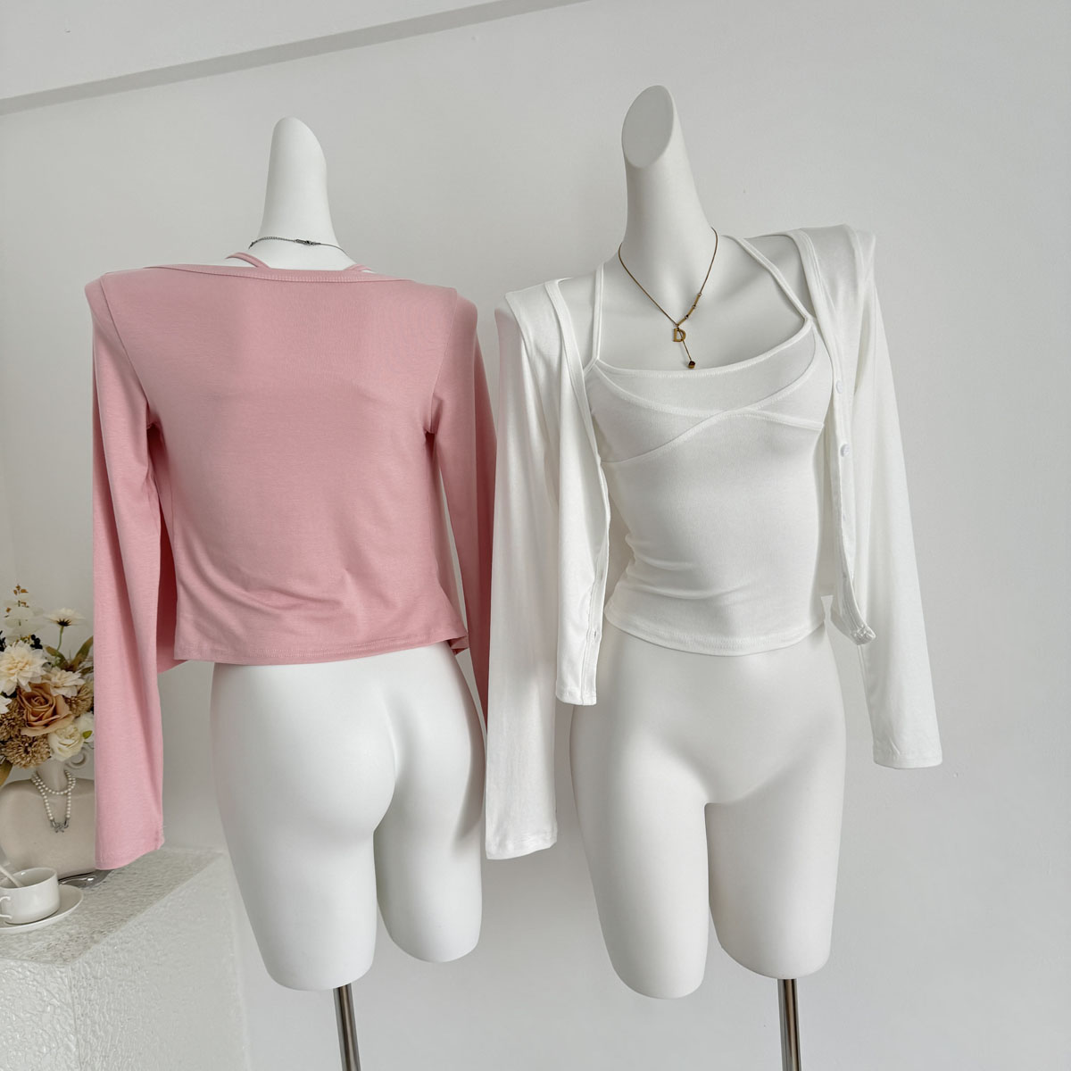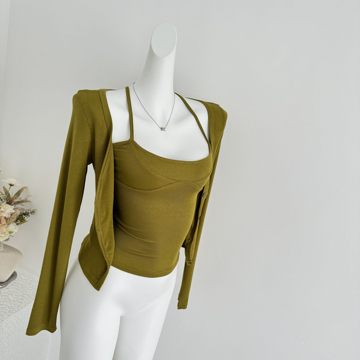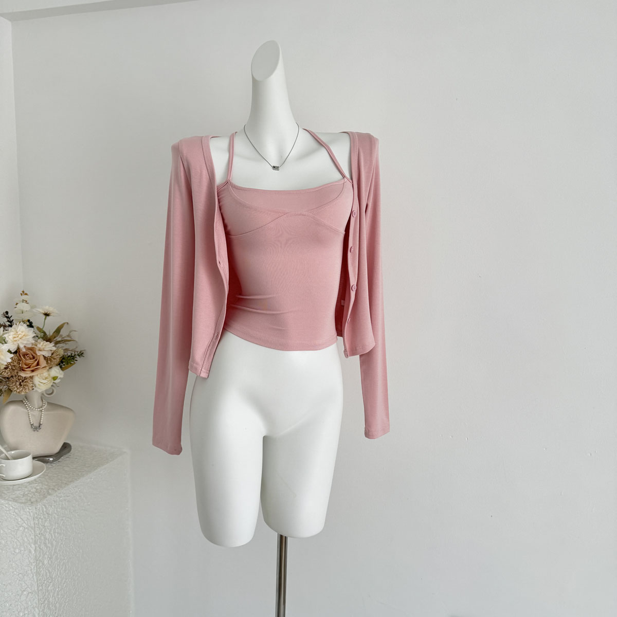 Suuuicee Hot Bangkok - 다양한 색상으로 구매하세요! 투피스 세트: 탱크탑, 슬림핏 캐미솔, 싱글 브레스트 가디건