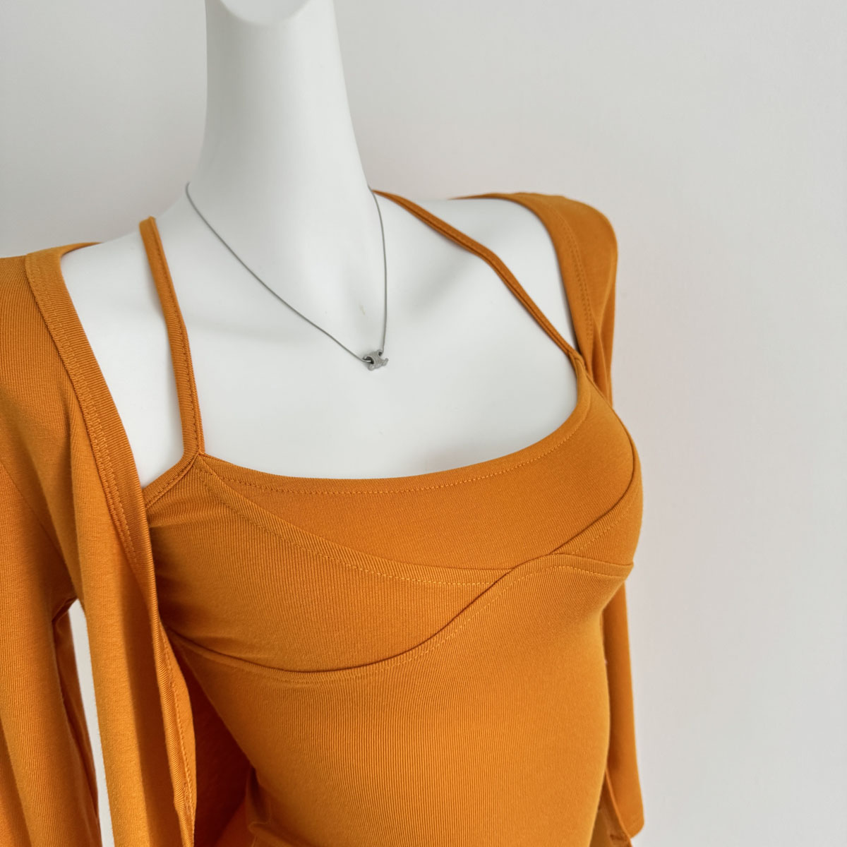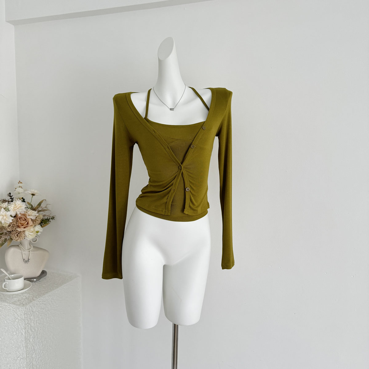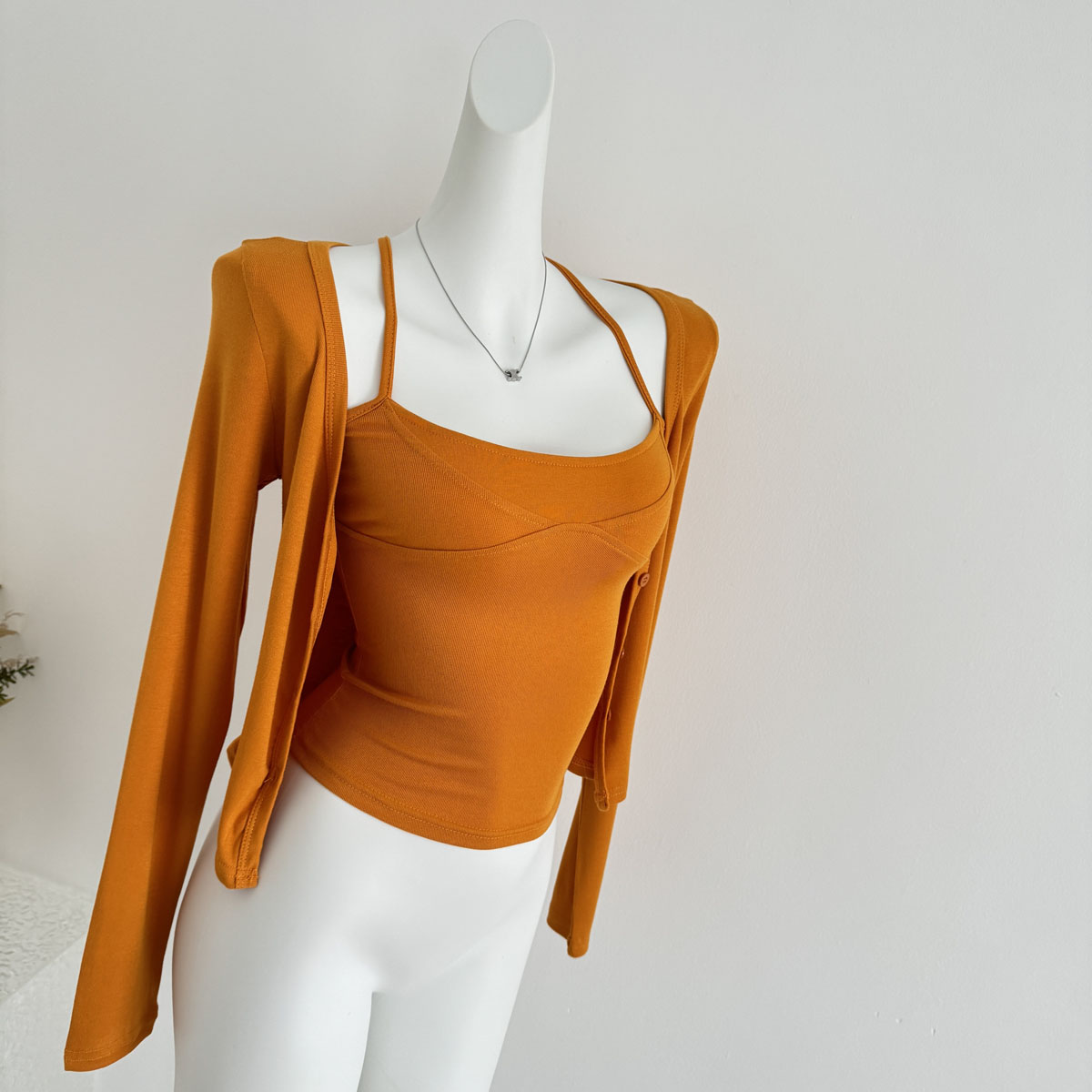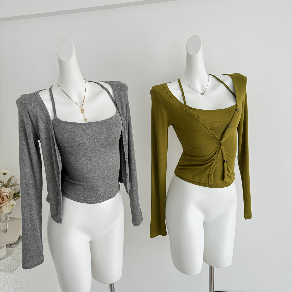 Suuuicee Hot Bangkok - 다양한 색상으로 구매하세요! 투피스 세트: 탱크탑, 슬림핏 캐미솔, 싱글 브레스트 가디건