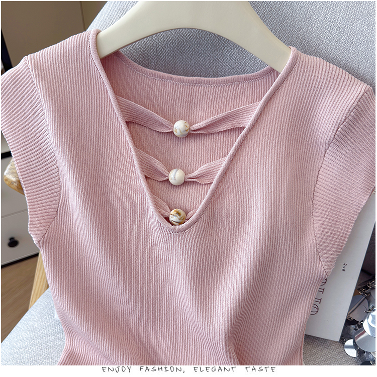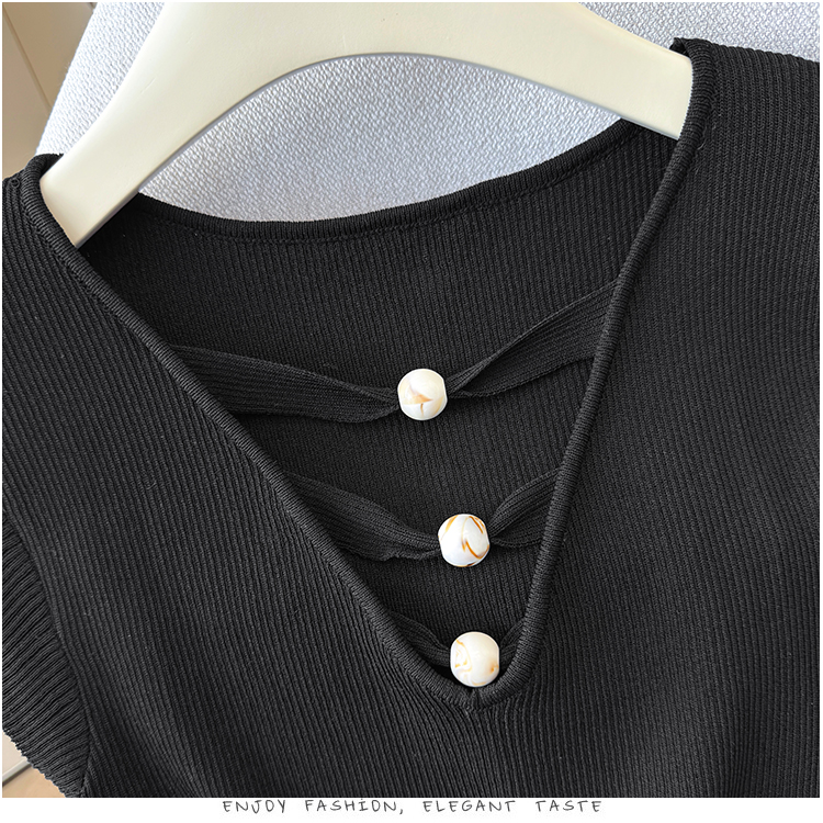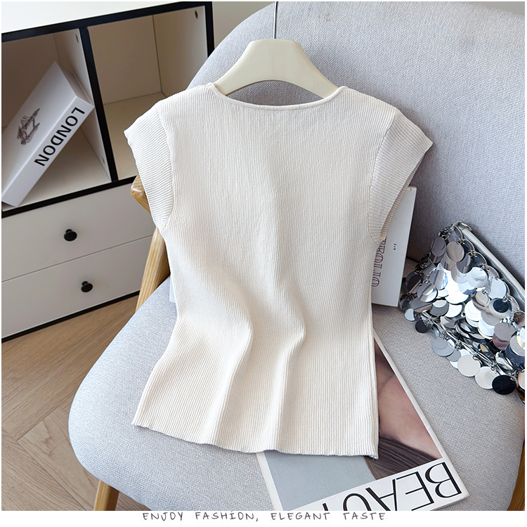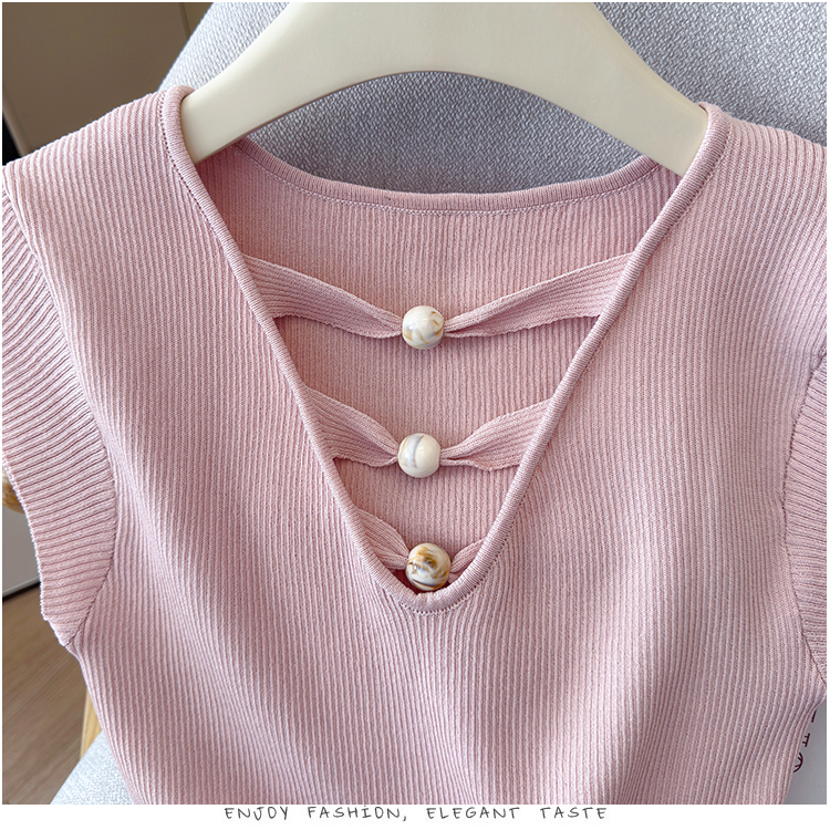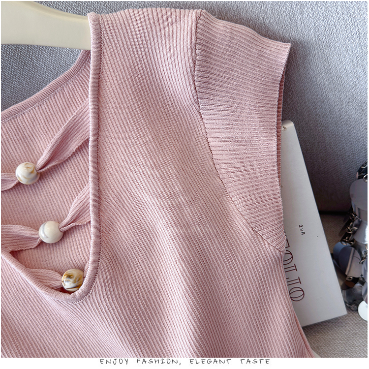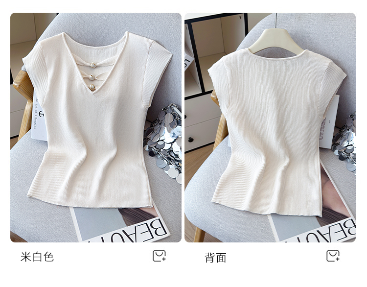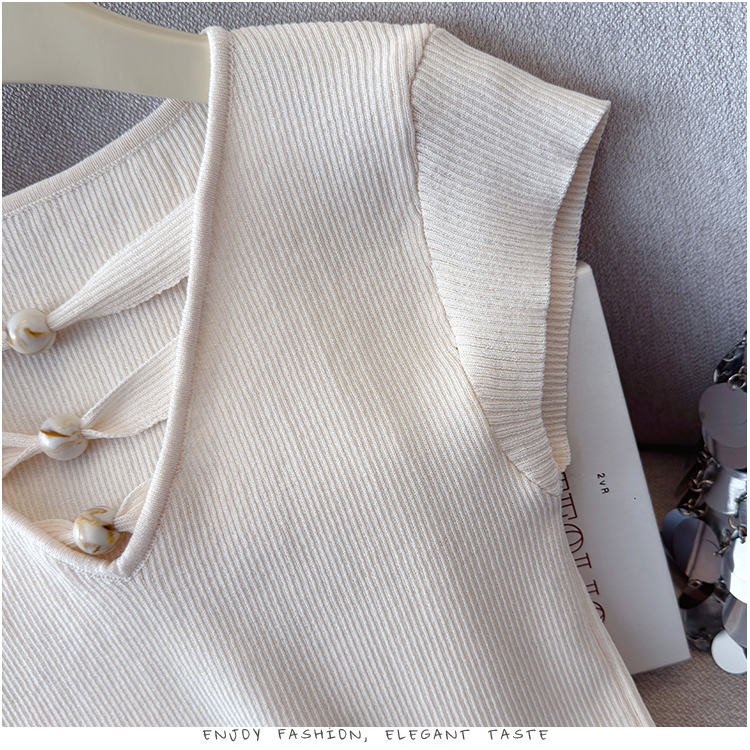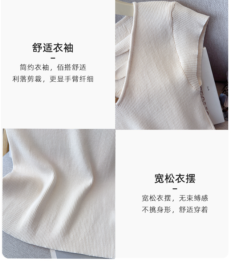 2026夏新款韩版修身显瘦坎肩无袖百搭减龄显瘦短袖天丝麻针织衫