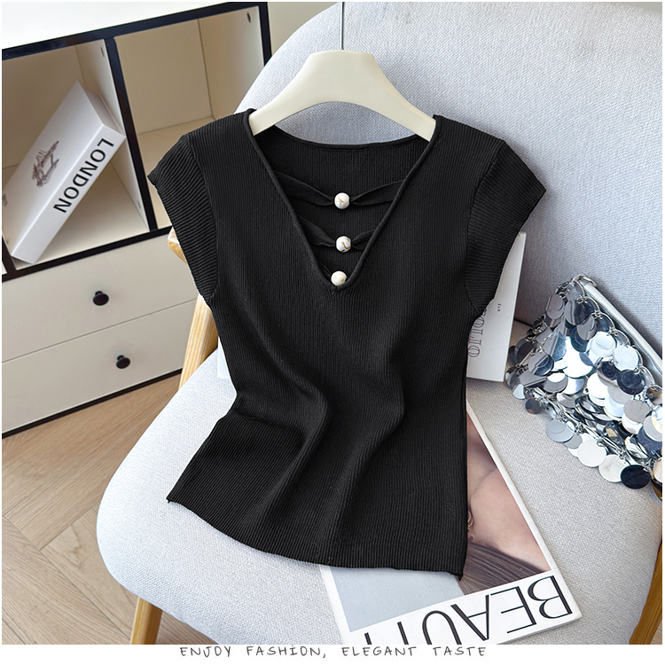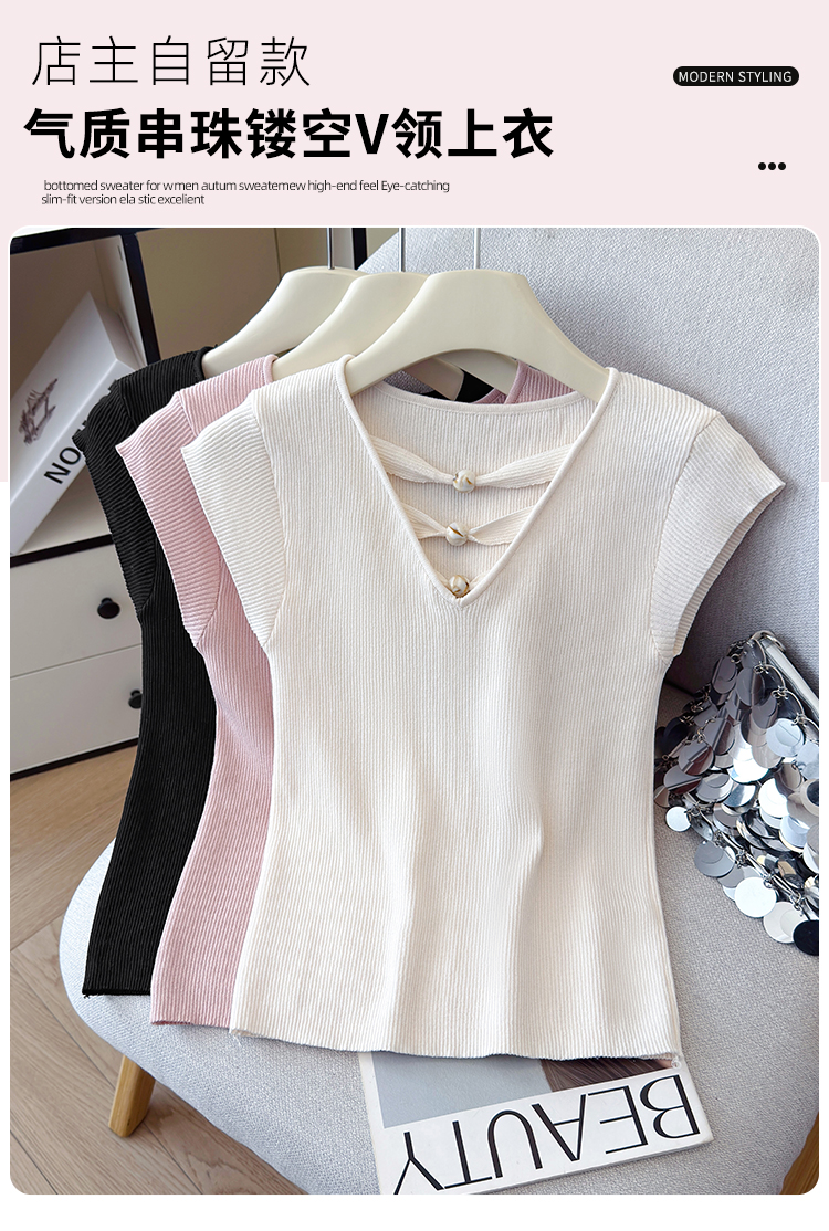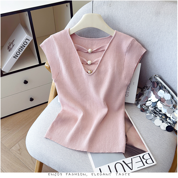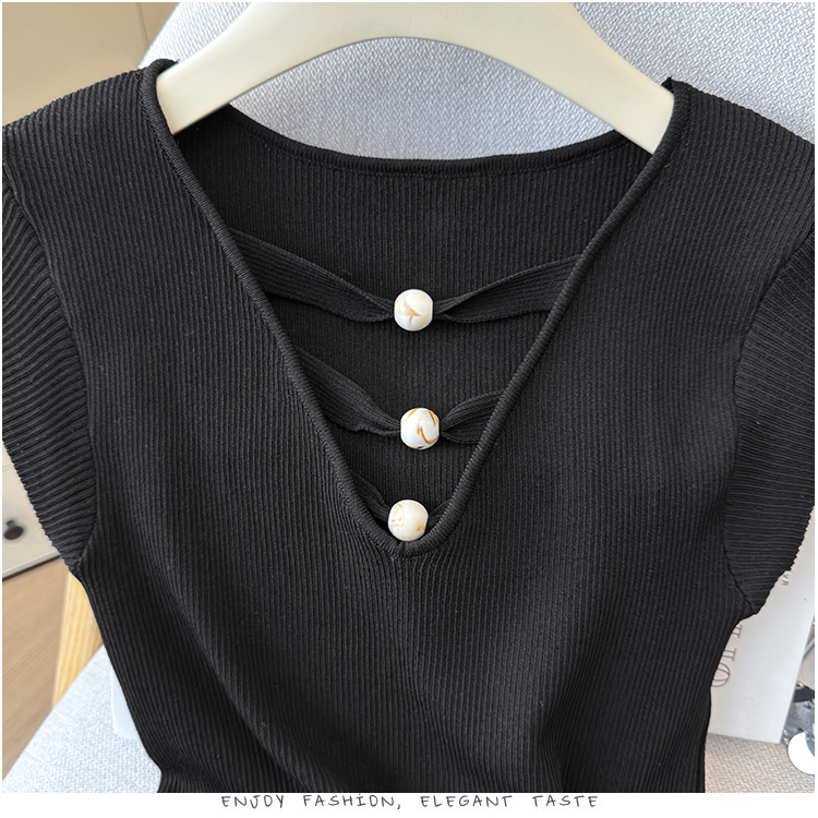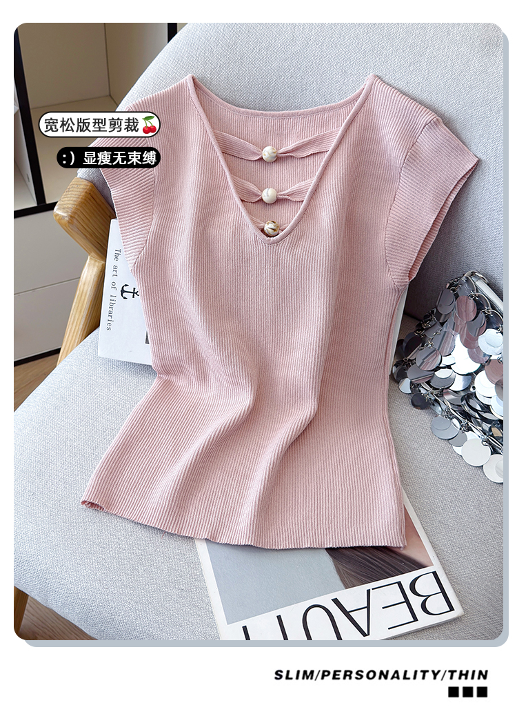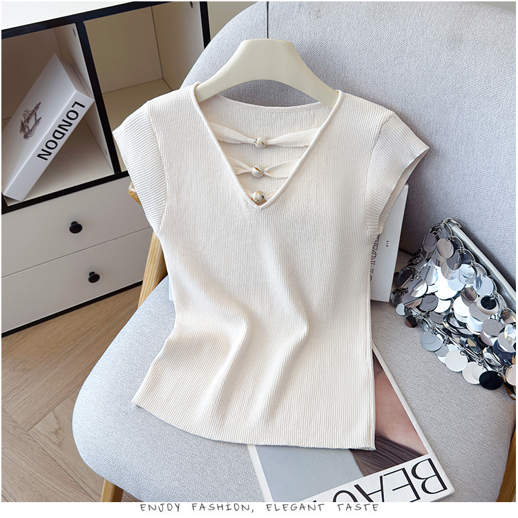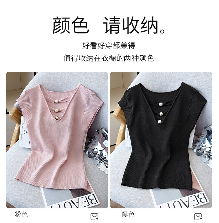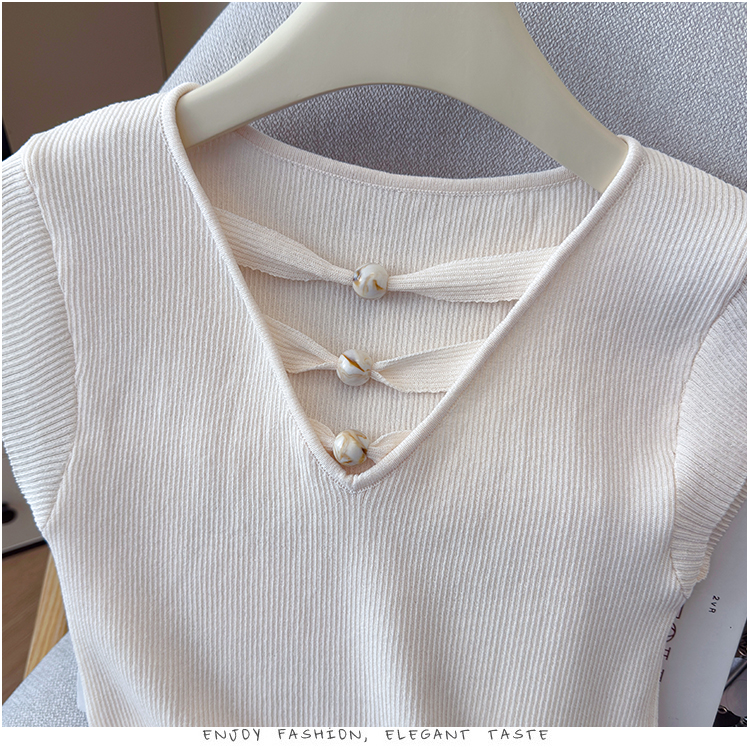 2026夏新款韩版修身显瘦坎肩无袖百搭减龄显瘦短袖天丝麻针织衫