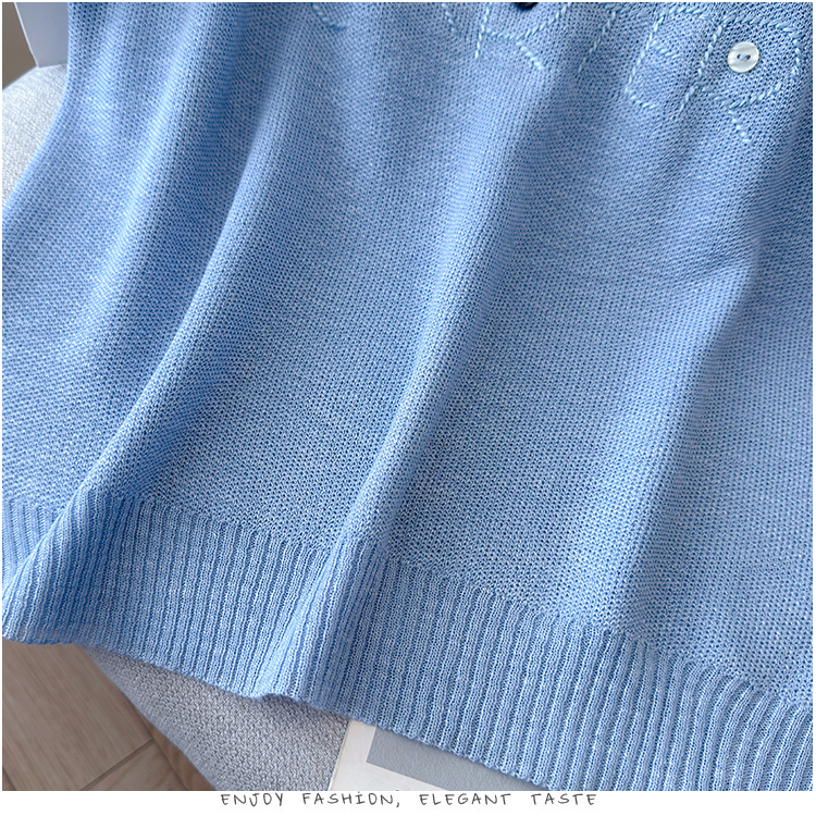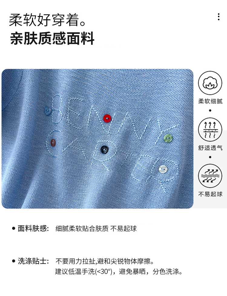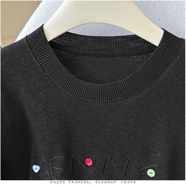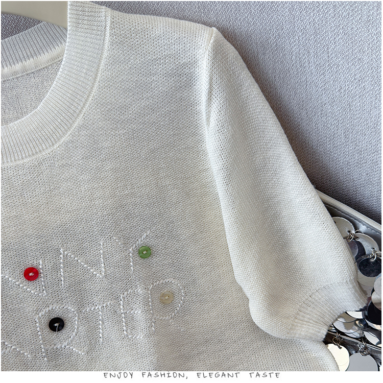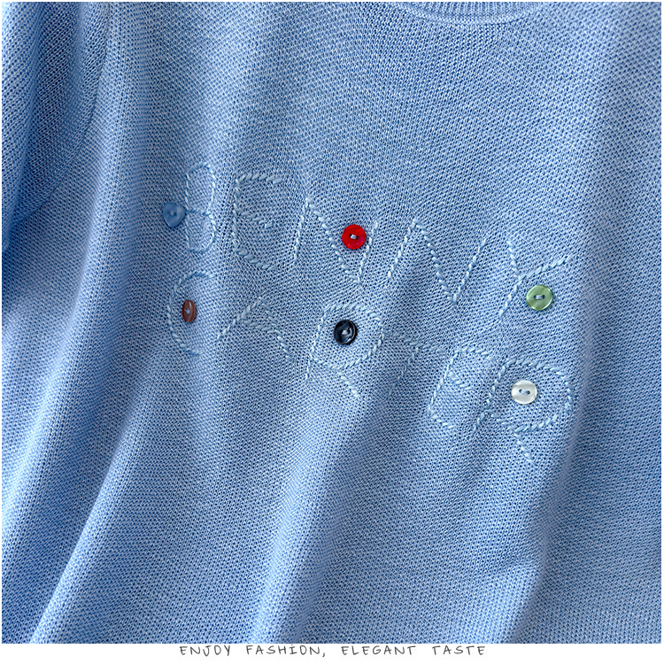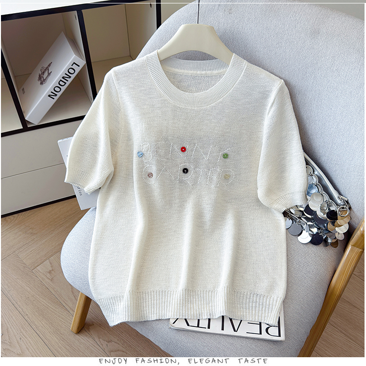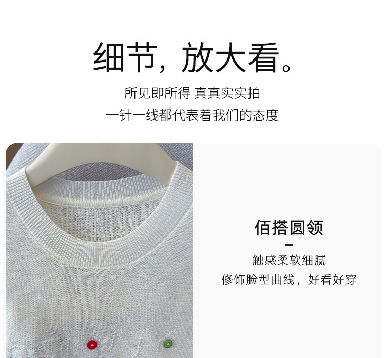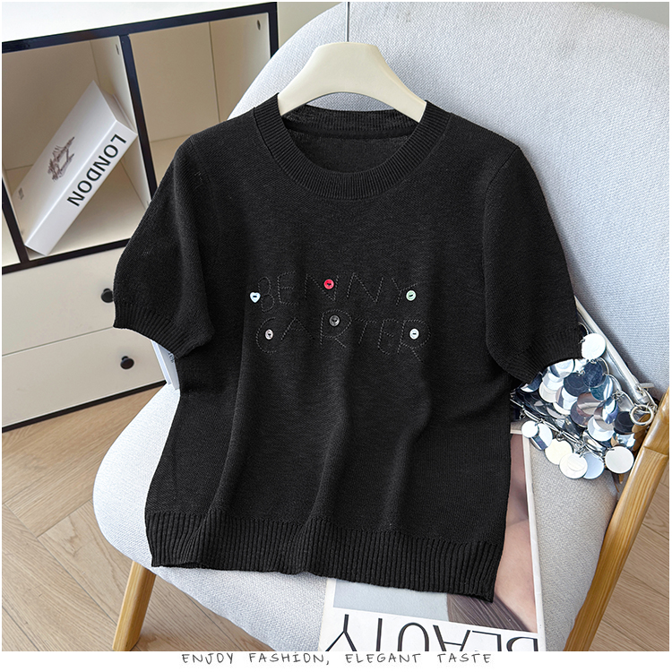 2026年夏季新款时尚百搭圆领宽松刺绣冰丝T恤天丝麻针织衫上衣女