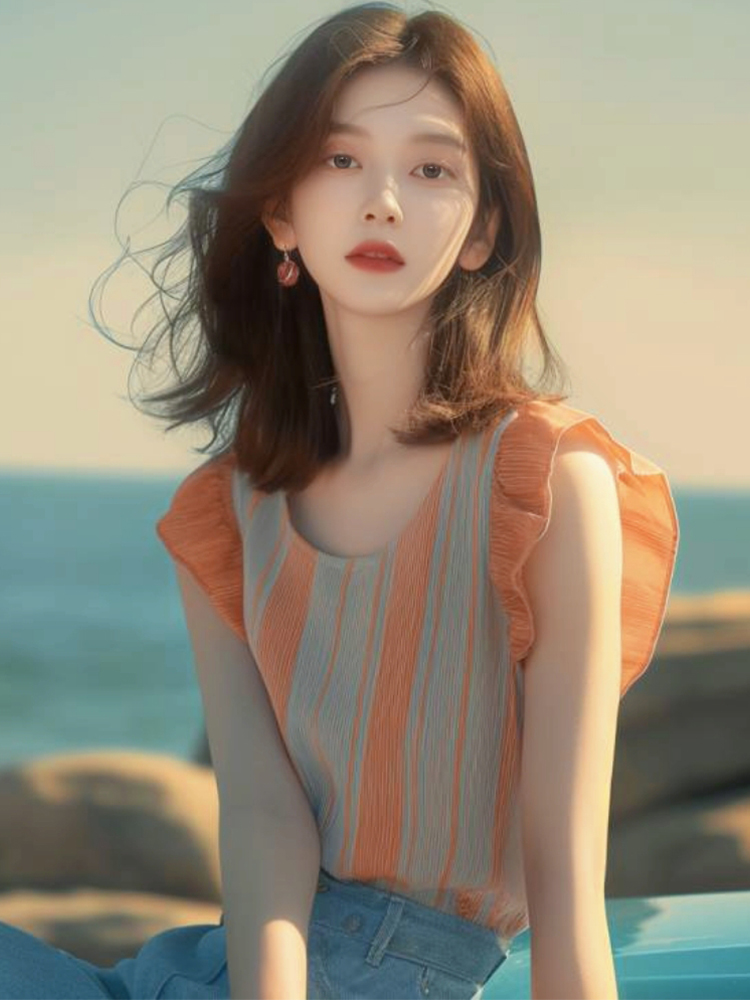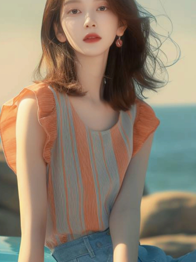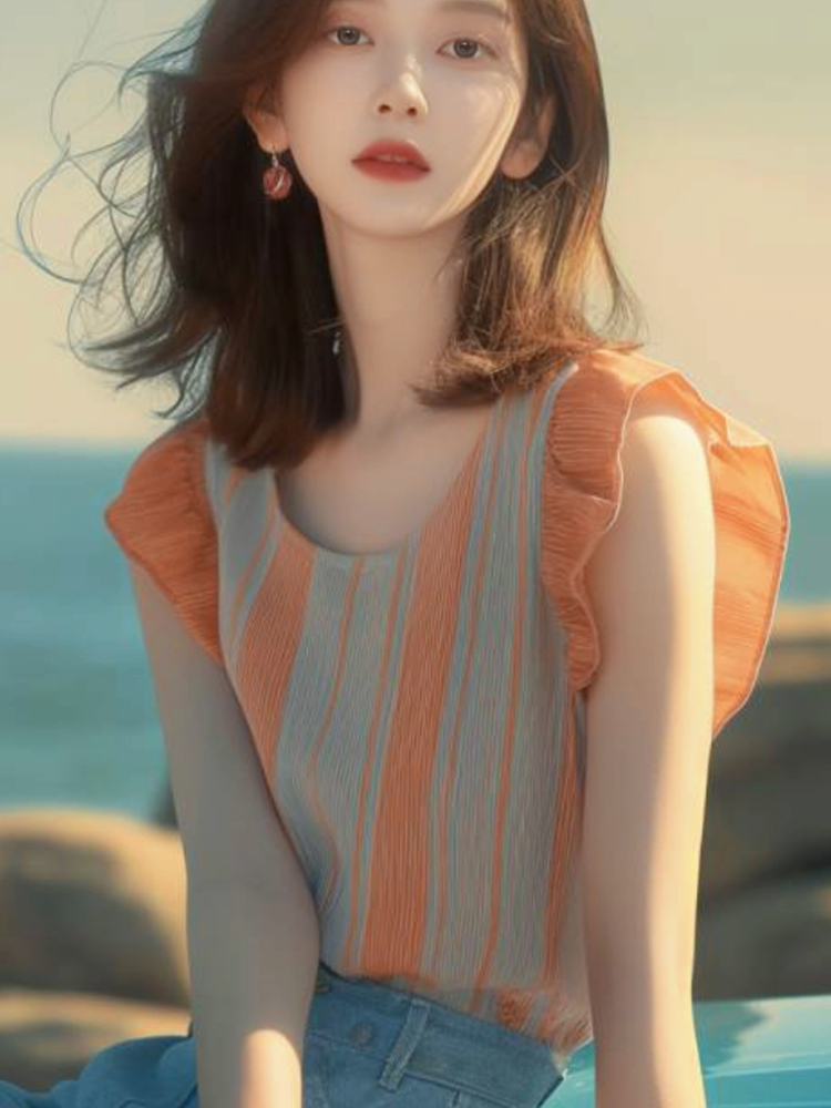 初夏流行漂亮小衫小众洋气减龄法式气质绝美撞色条纹小飞袖衬衫女