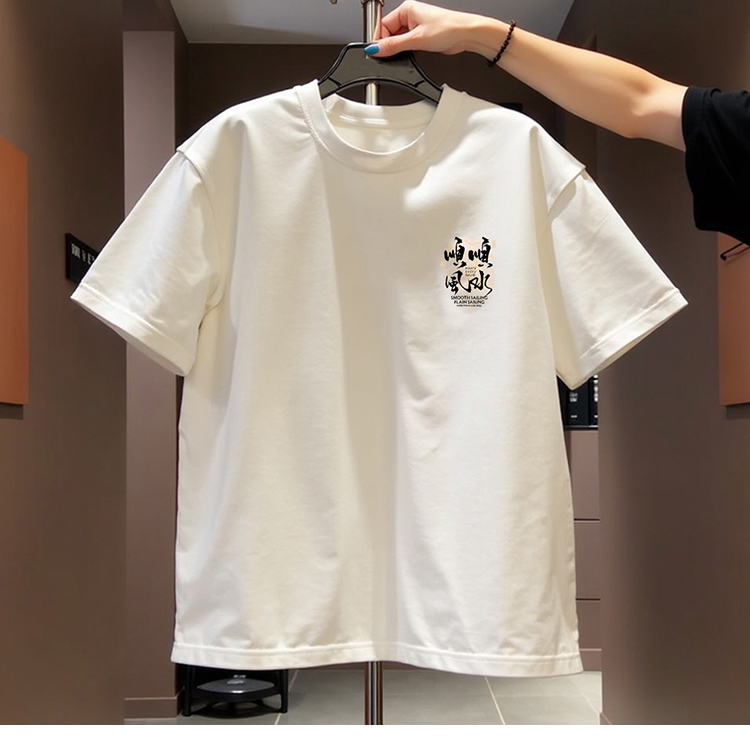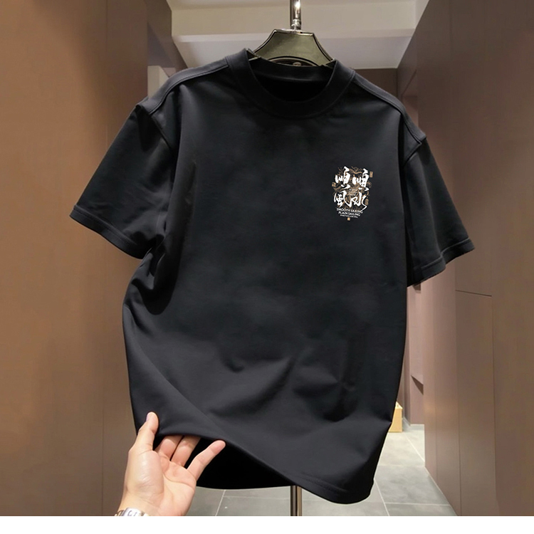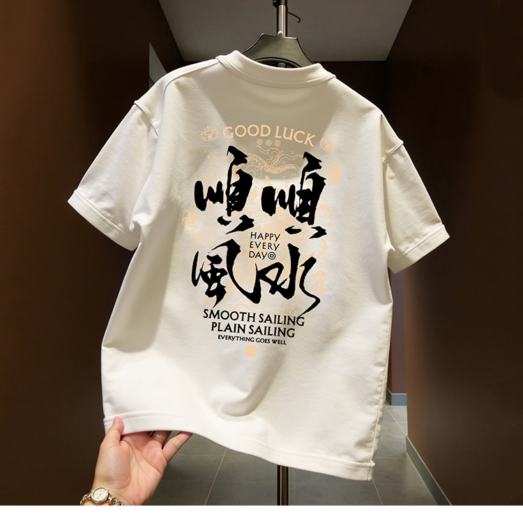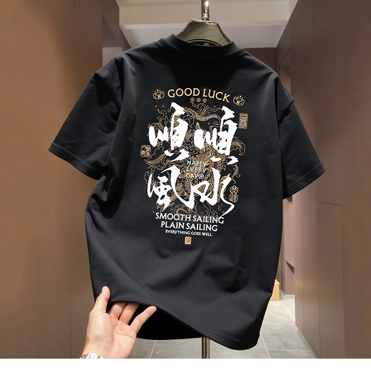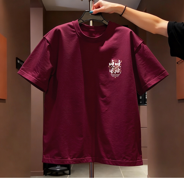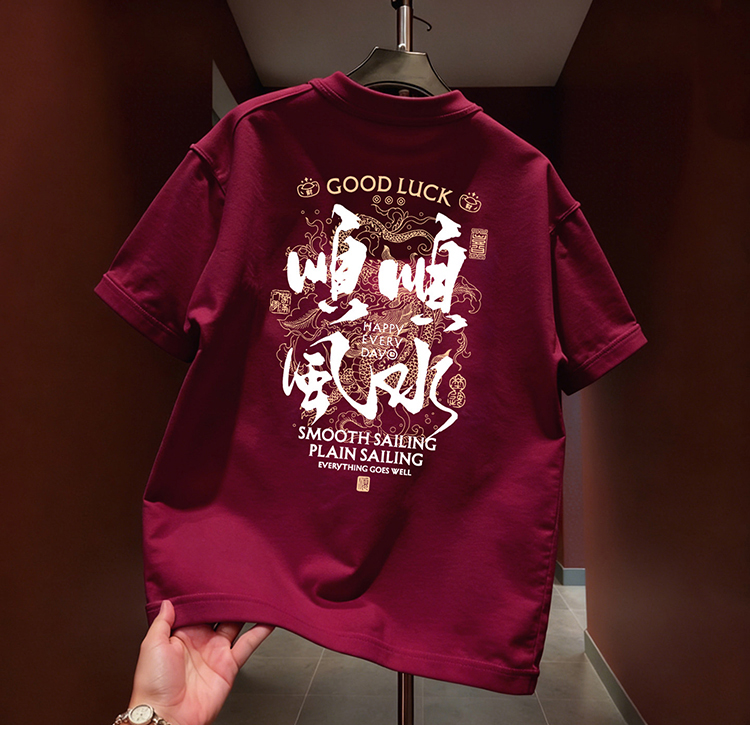 国潮牌风本命年短袖T恤男圆领新款顺水重磅纯棉红色宽松上衣