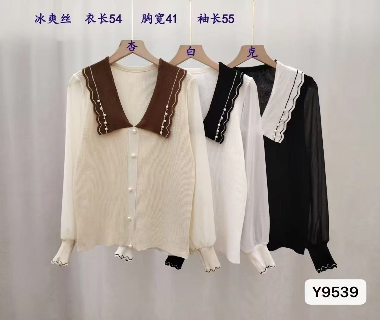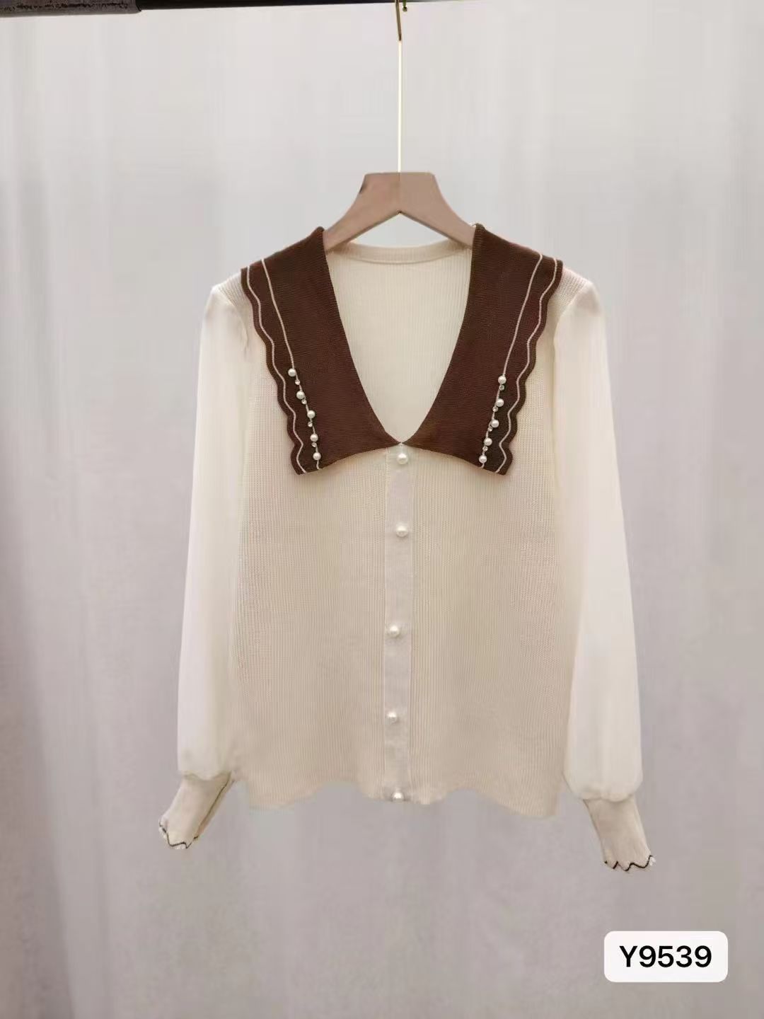 实价韩版娃娃领镶钻镂空针织开衫女薄款气质百搭显瘦拼接长袖上衣