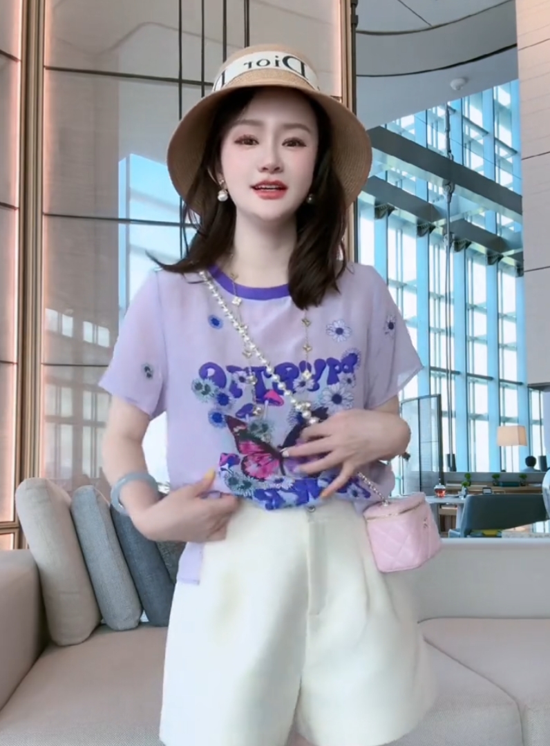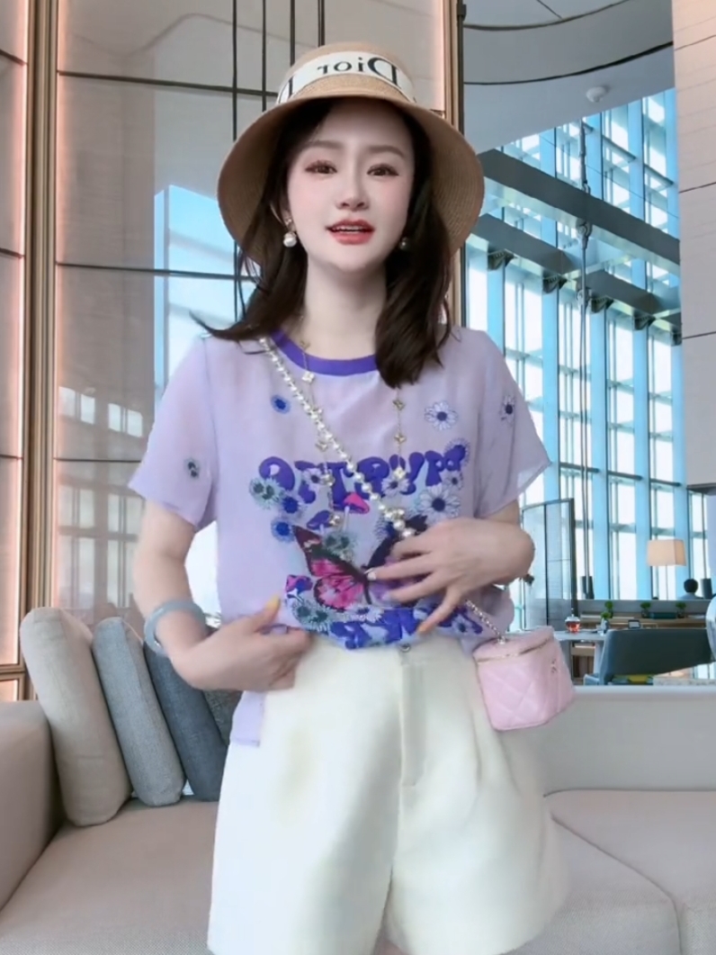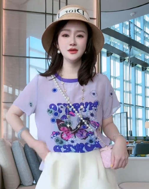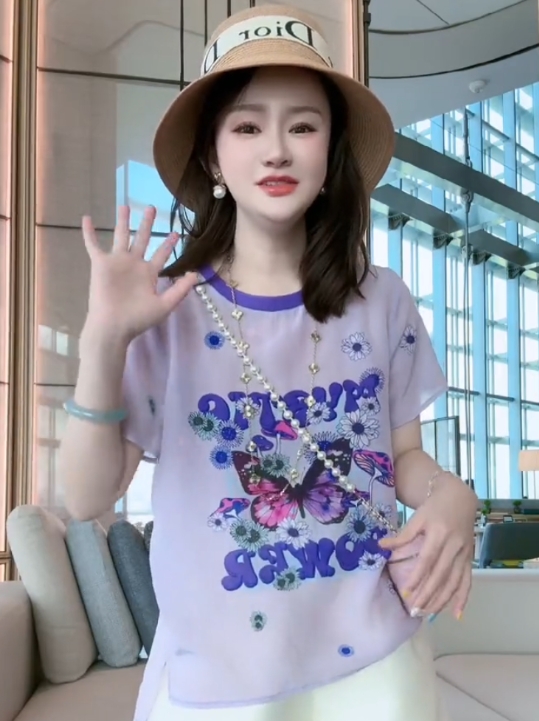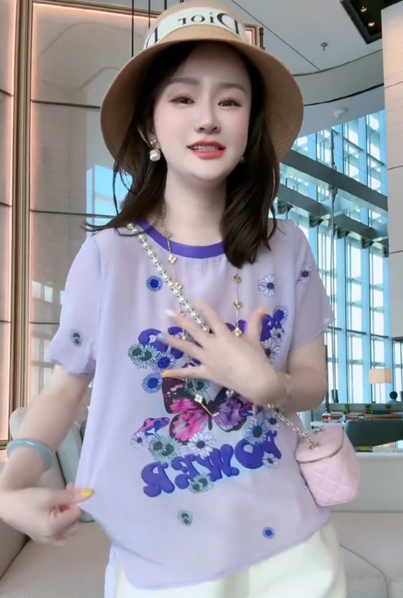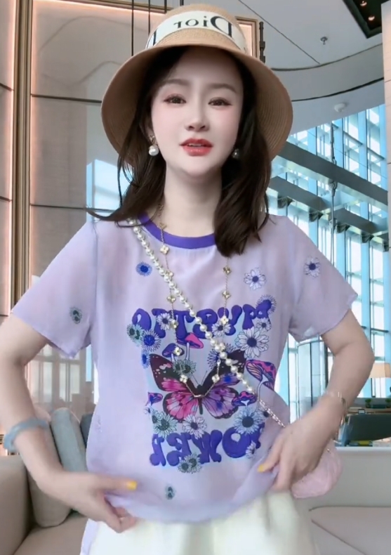 时尚可爱图案设计圆领短袖真丝减龄百搭气质T桖衫2026夏季新款女