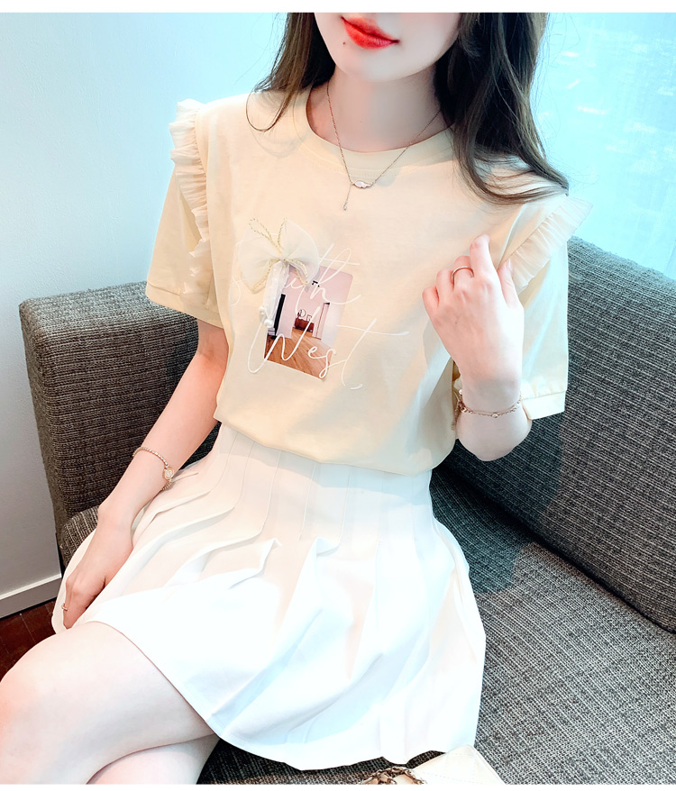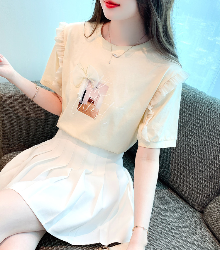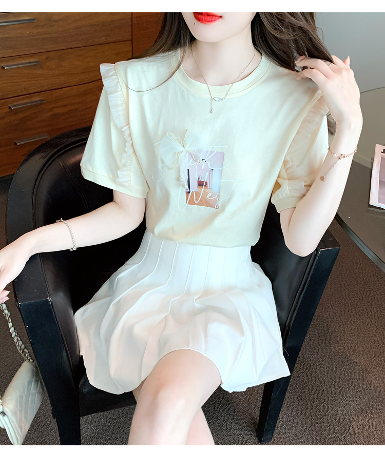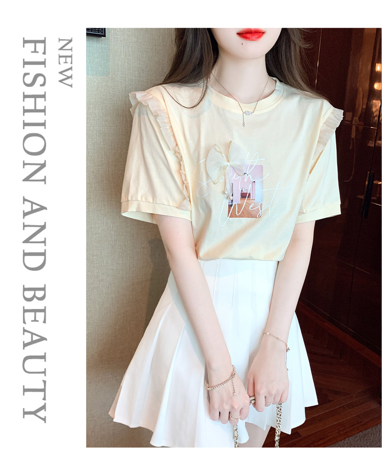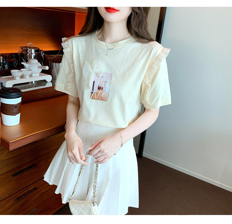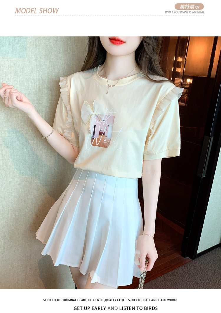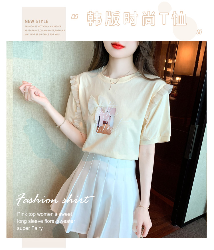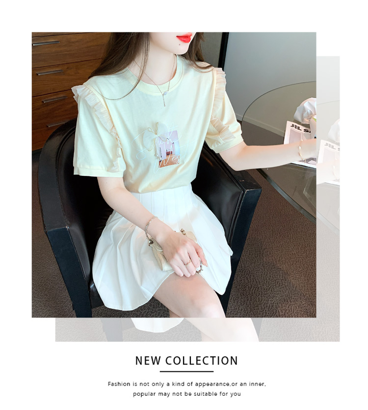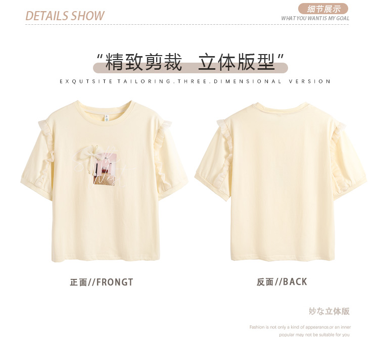 法式荷叶边泡泡袖上衣女2026夏季新款设计感小众方领短袖t
