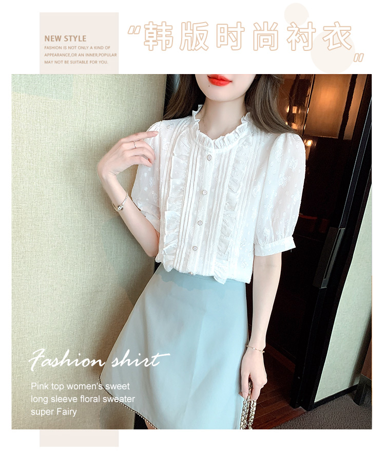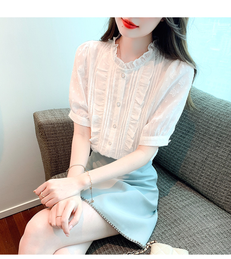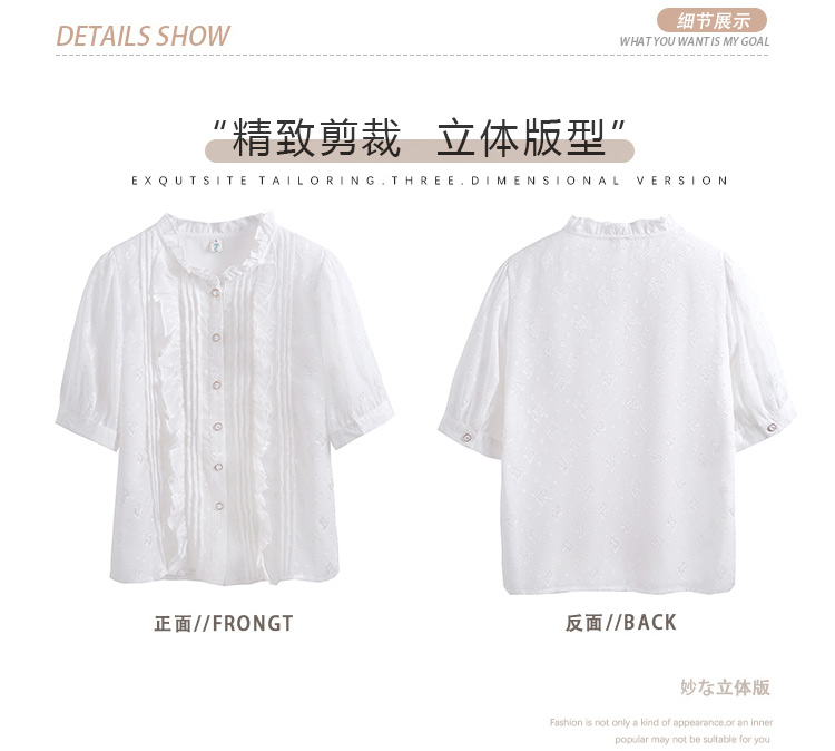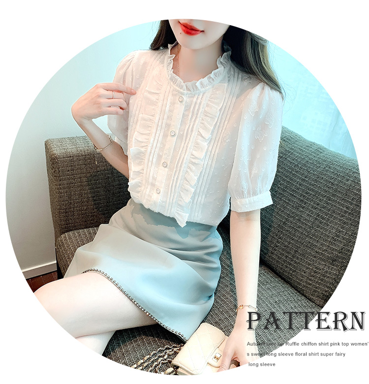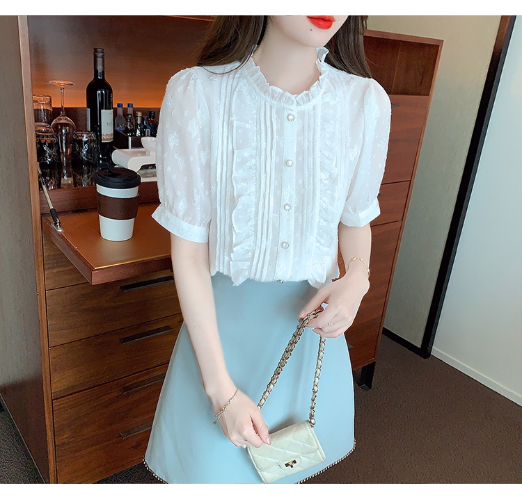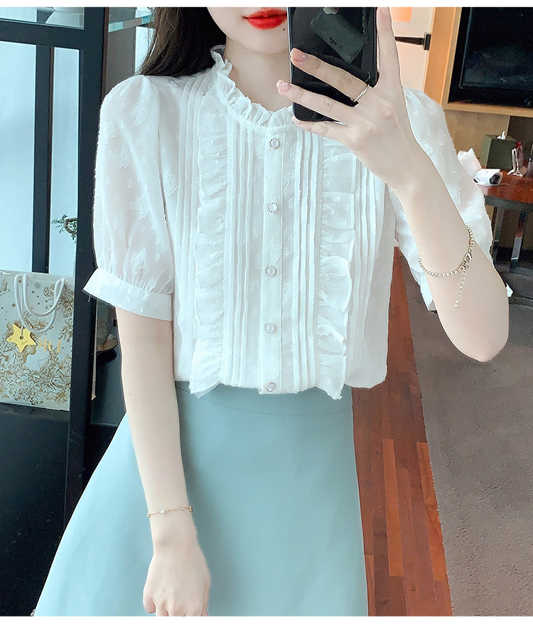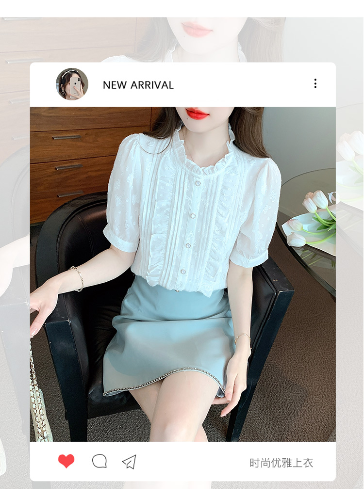 法式甜美别致雪纺上衣2026春夏新款荷叶边立领衬衫短袖设计感小众