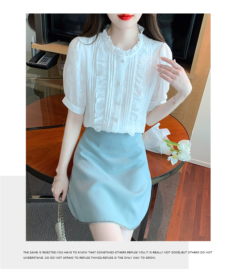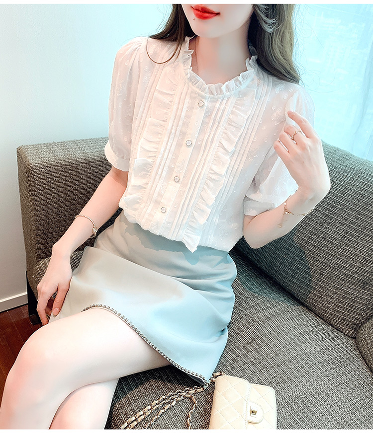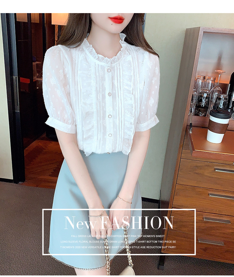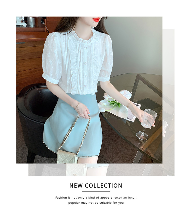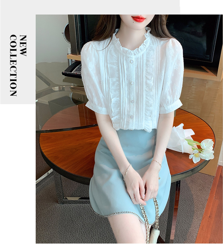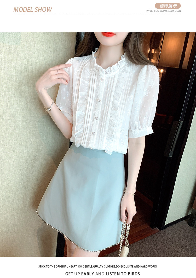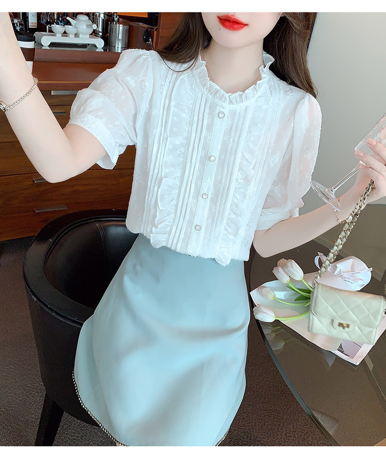 法式甜美别致雪纺上衣2026春夏新款荷叶边立领衬衫短袖设计感小众
