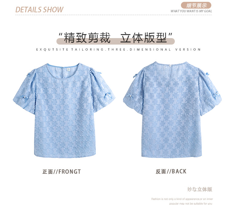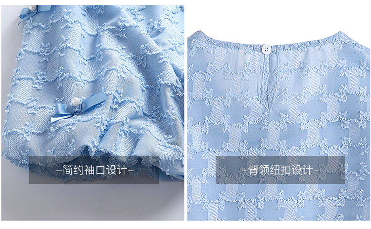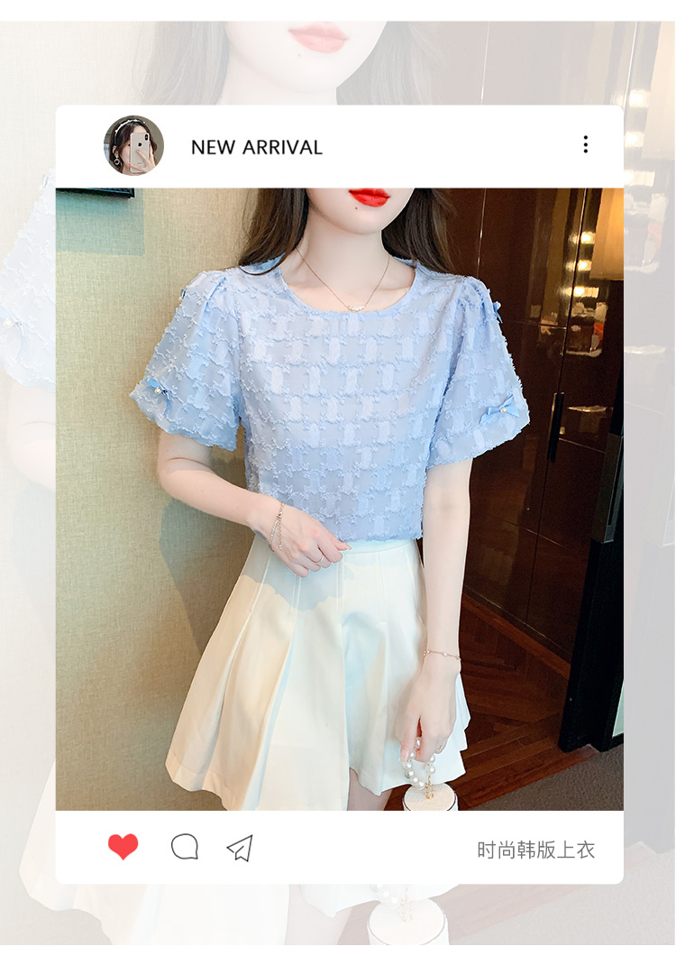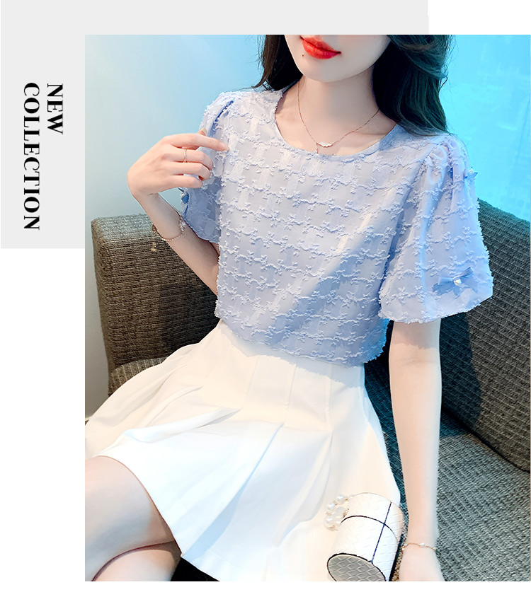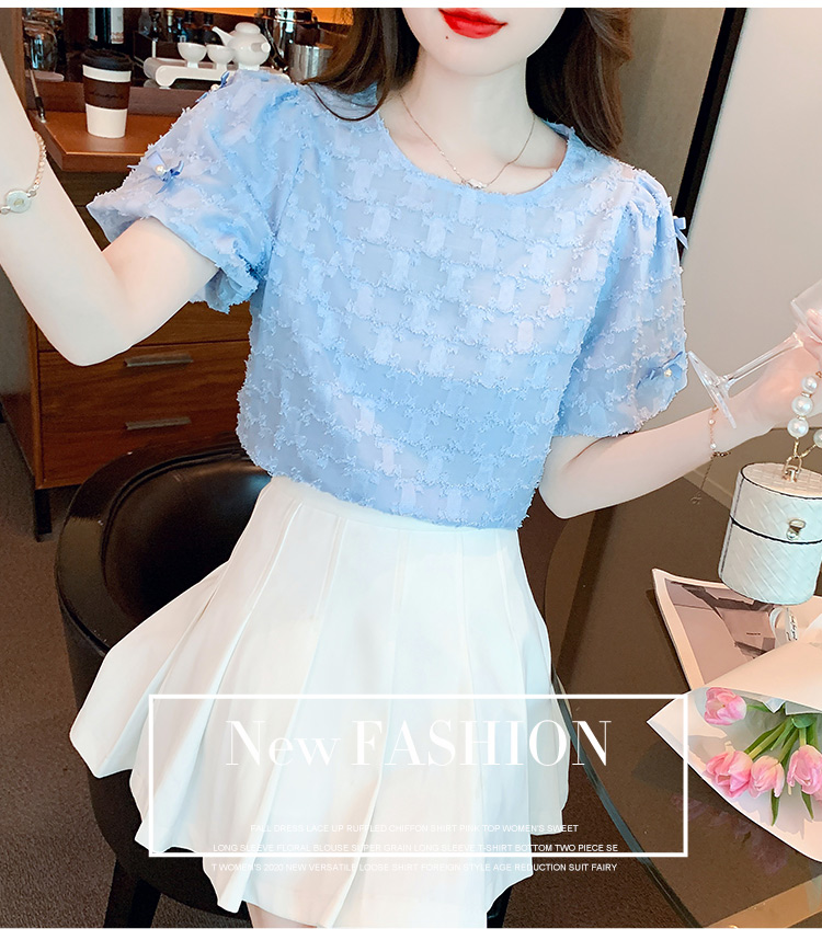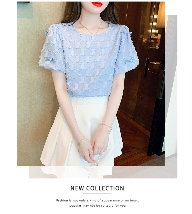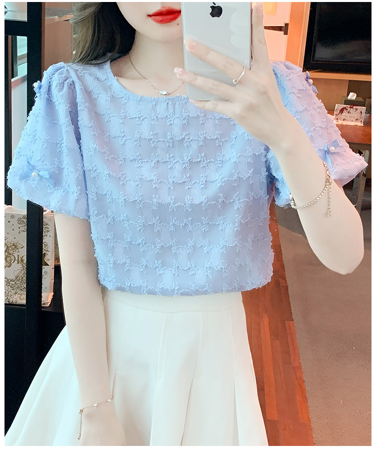 独特别致泡泡袖雪纺上衣女夏法式温柔小香风韩系甜美减龄蓝色衬衫