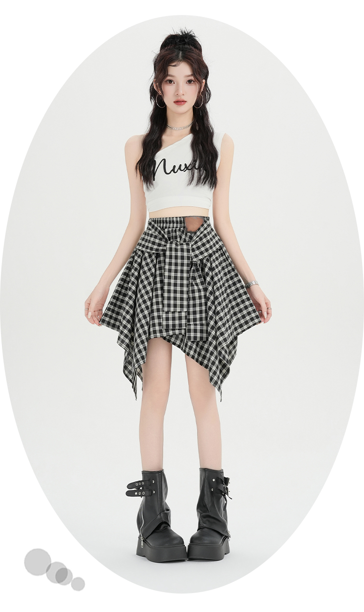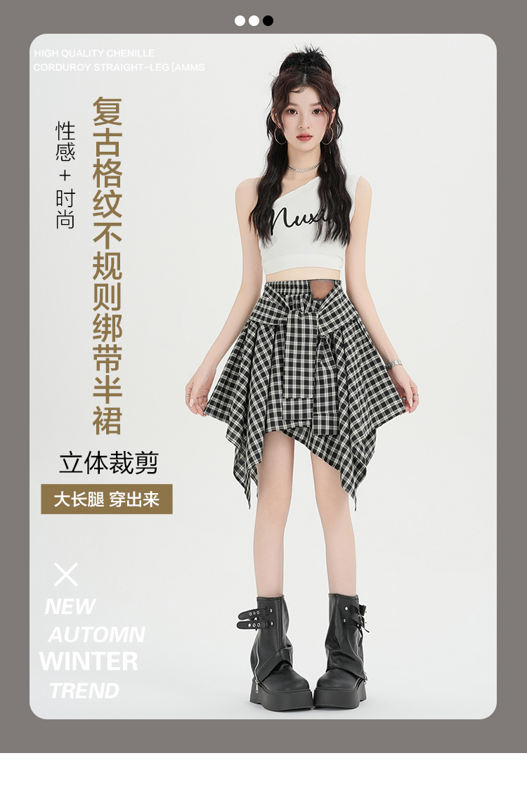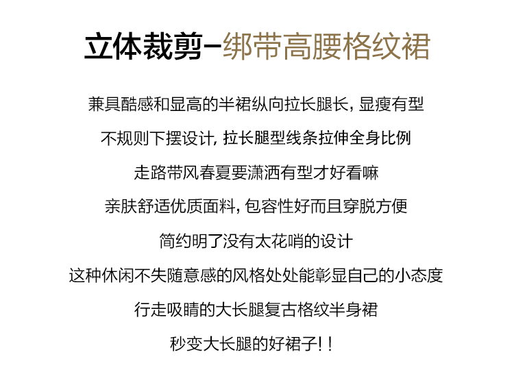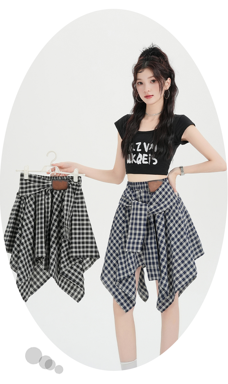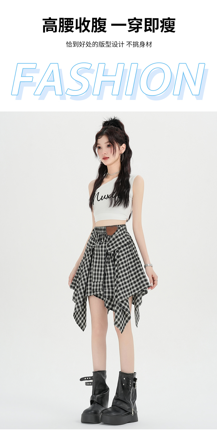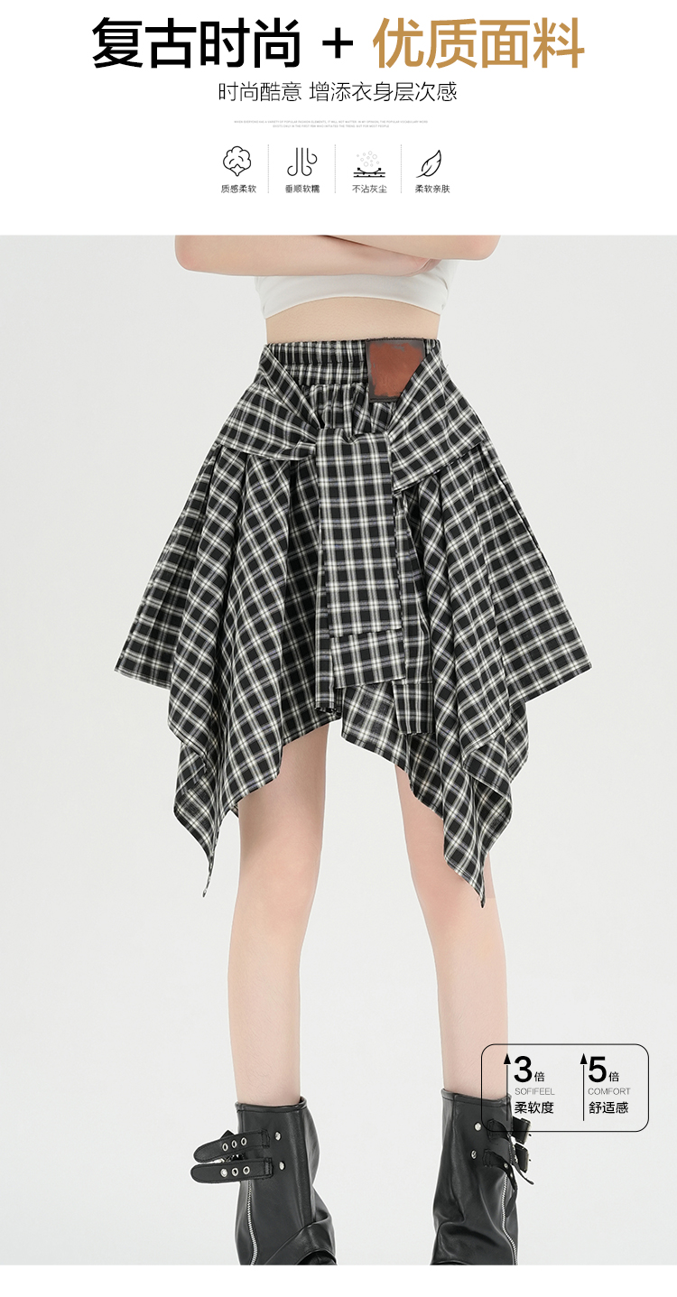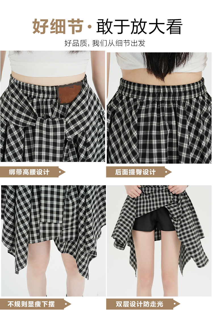 实拍假两件绑带格子半身裙女2026春夏新款小个子a字不规则短裙