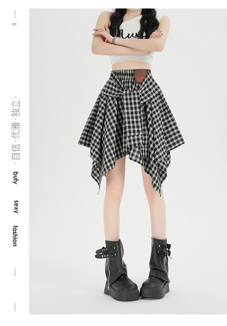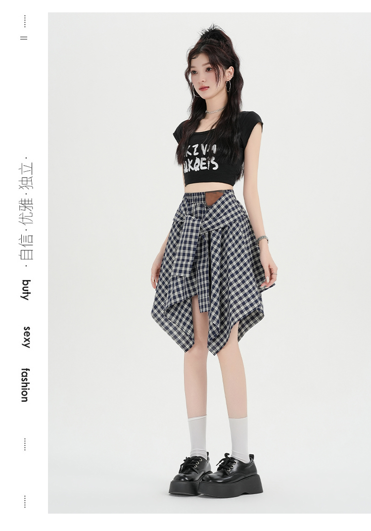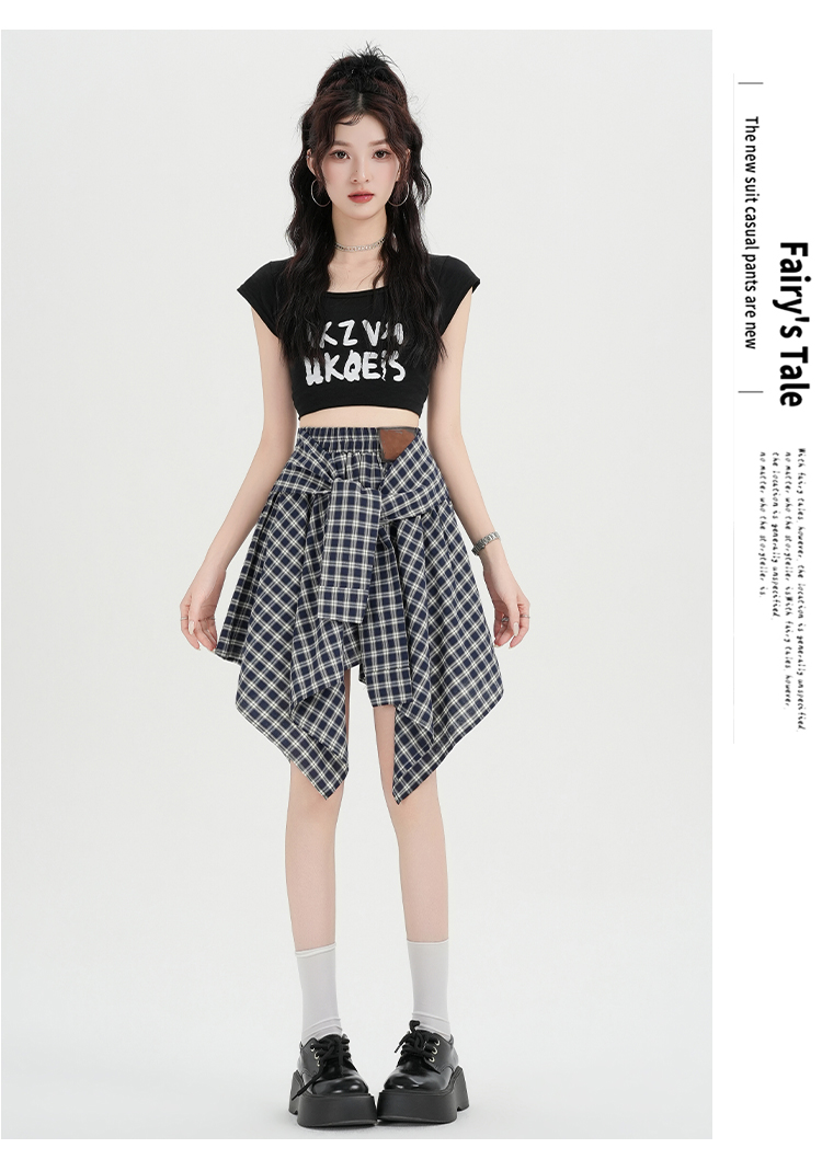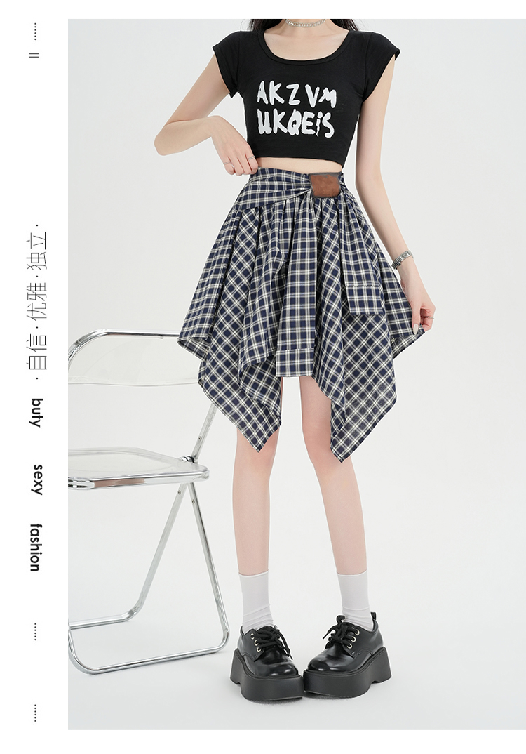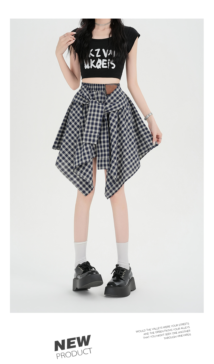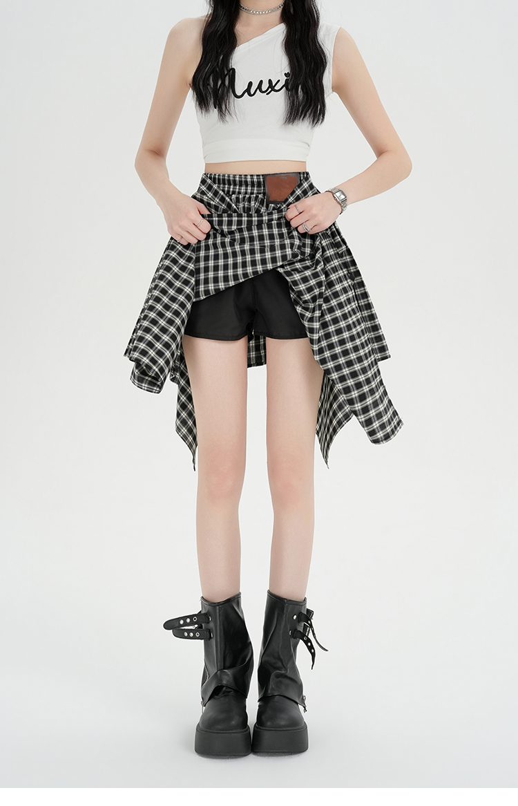 实拍假两件绑带格子半身裙女2026春夏新款小个子a字不规则短裙