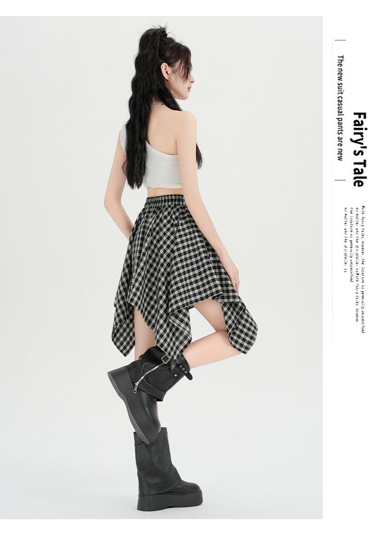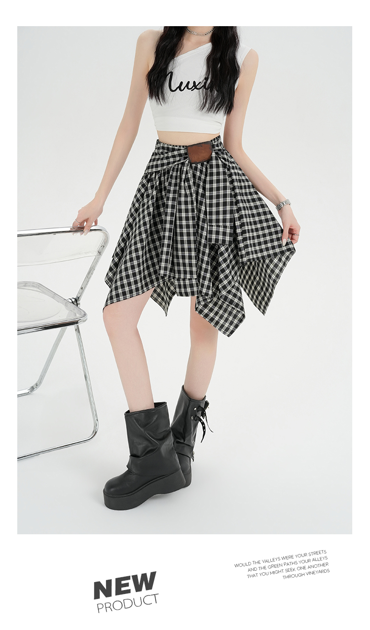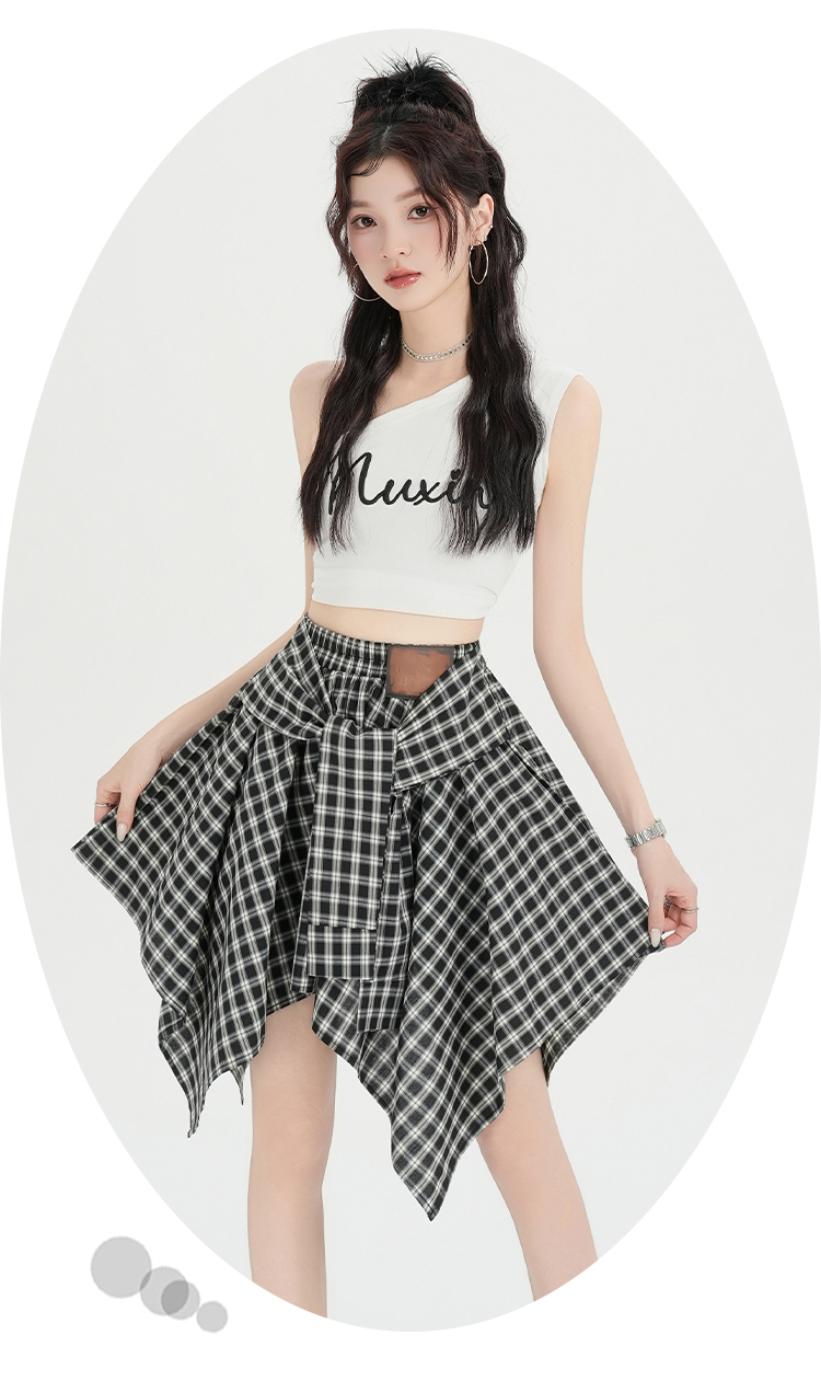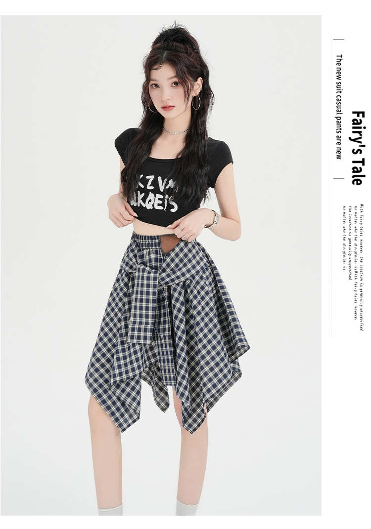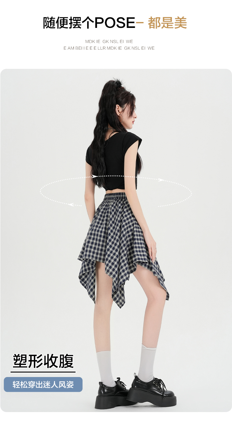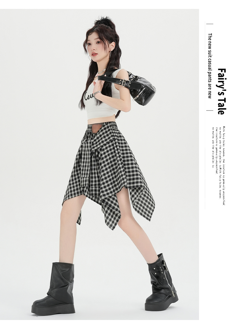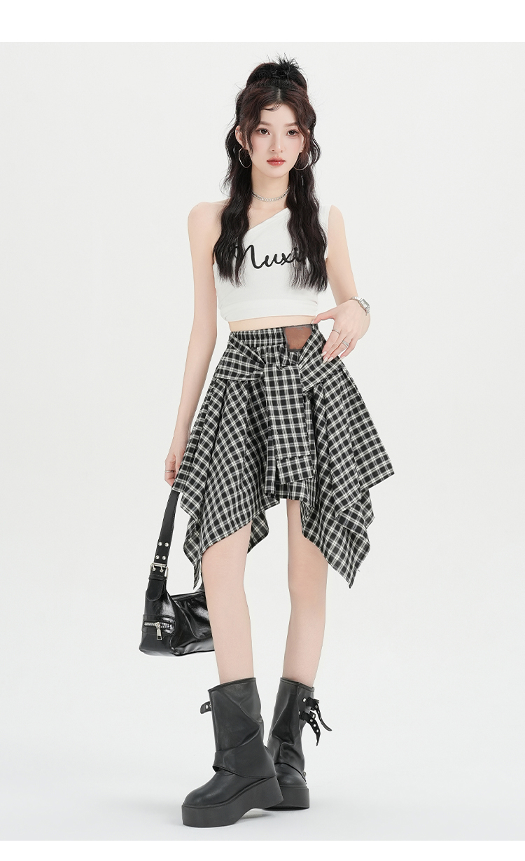实拍假两件绑带格子半身裙女2026春夏新款小个子a字不规则短裙