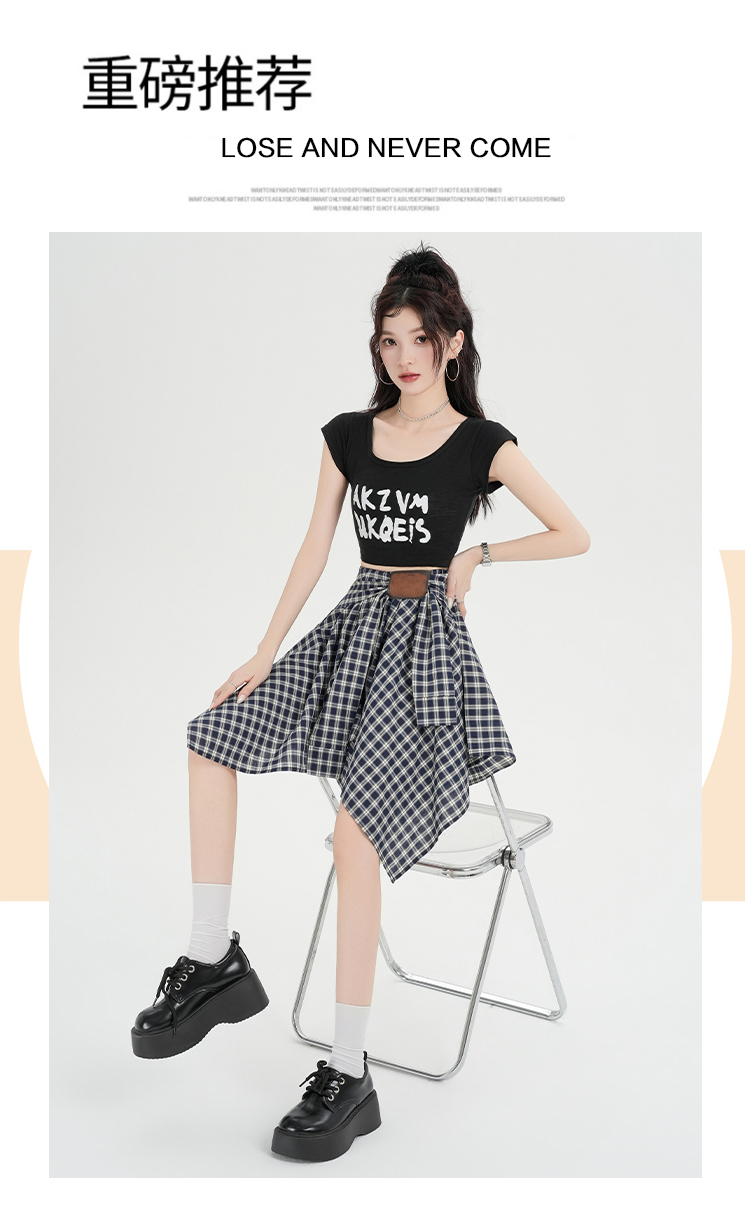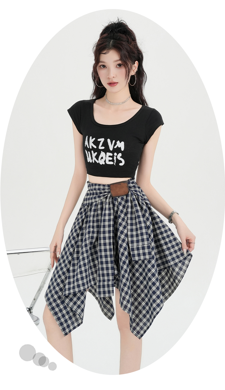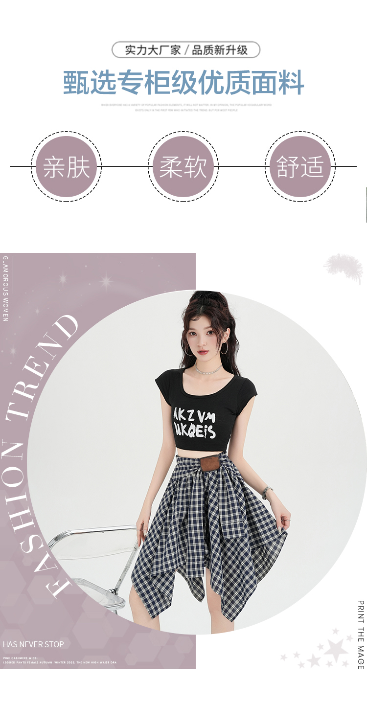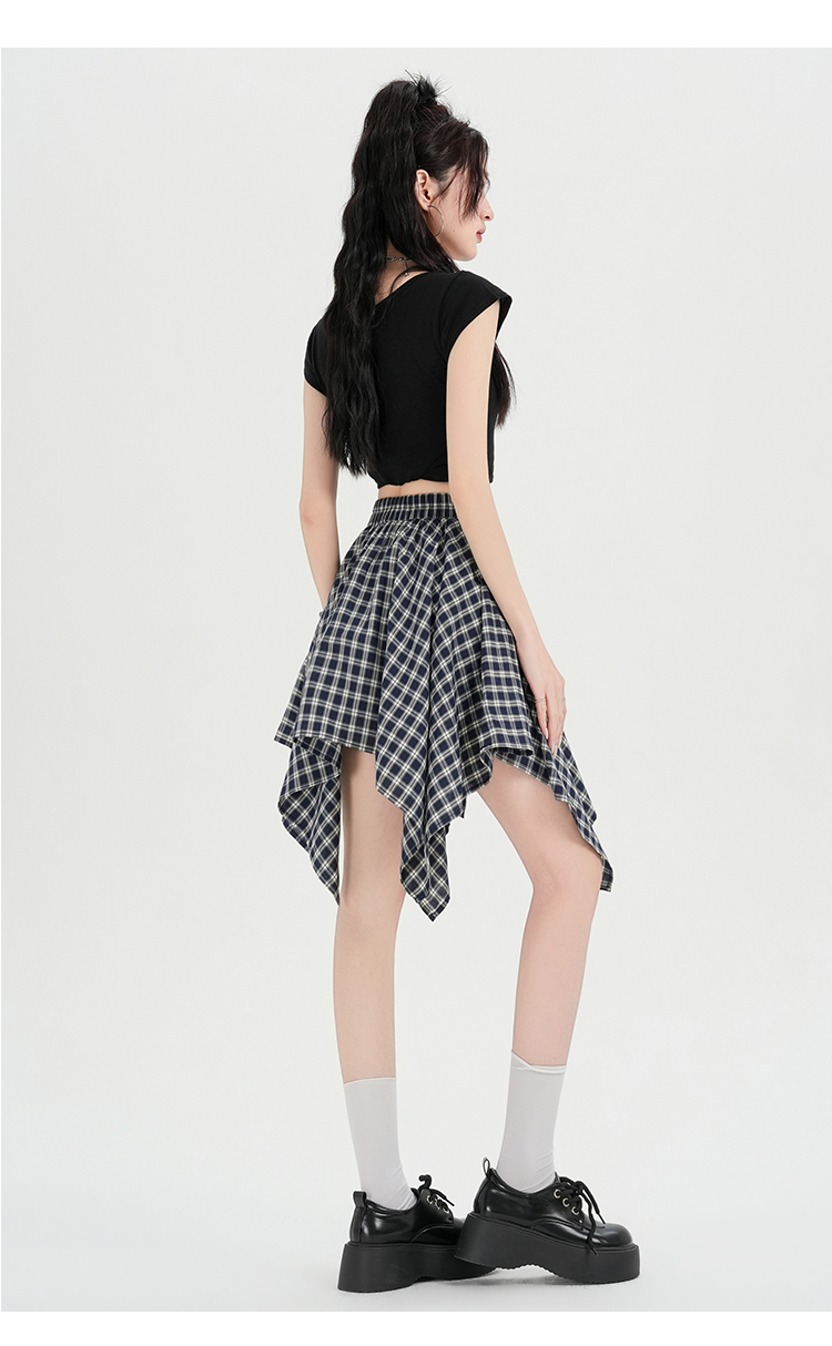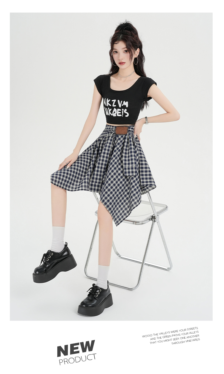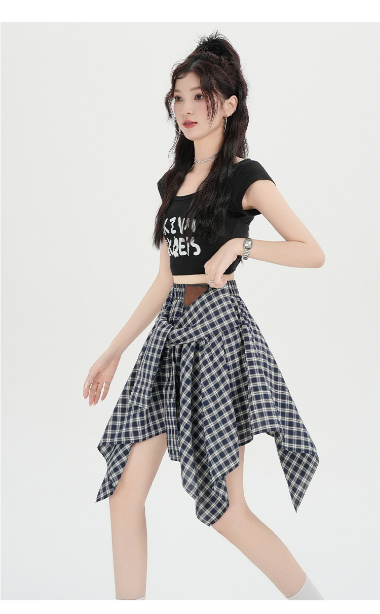 实拍假两件绑带格子半身裙女2026春夏新款小个子a字不规则短裙
