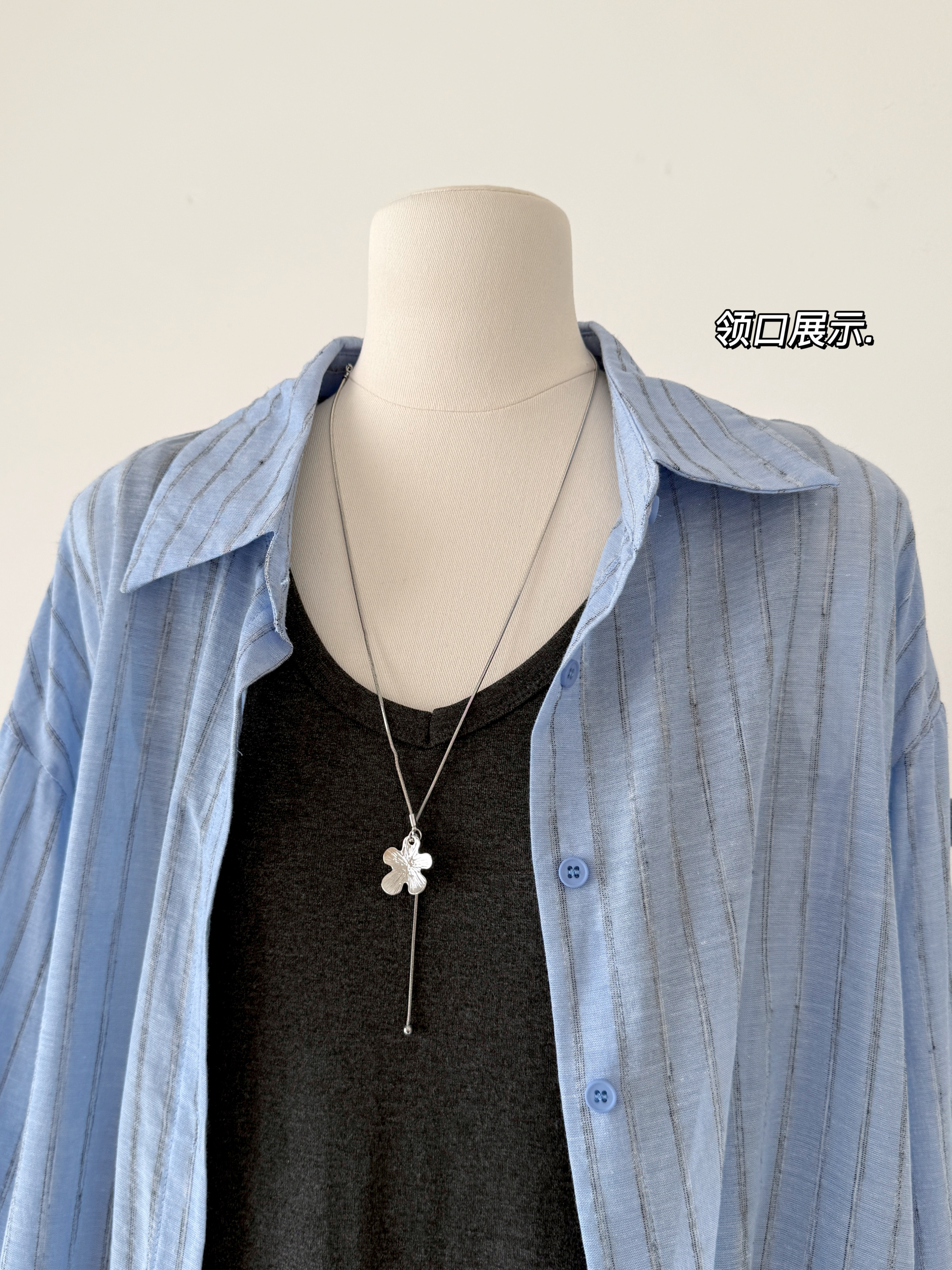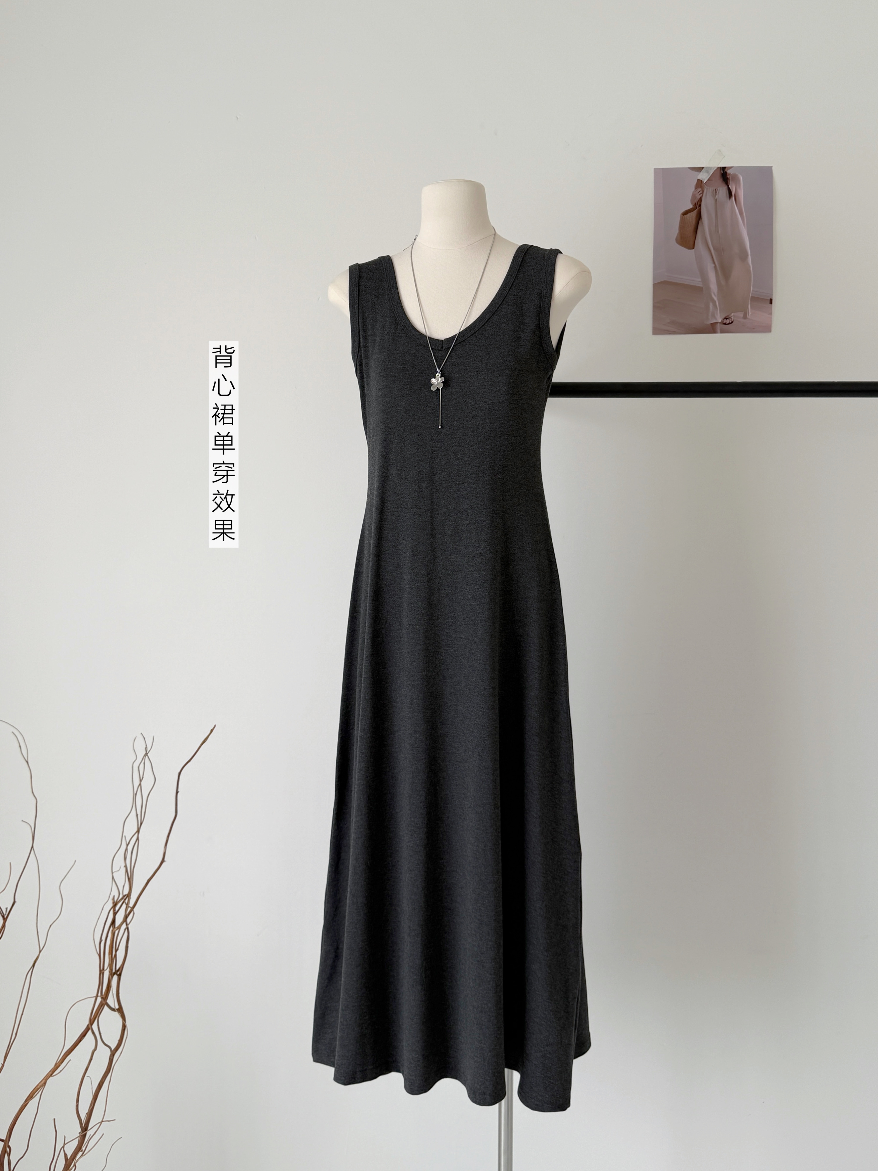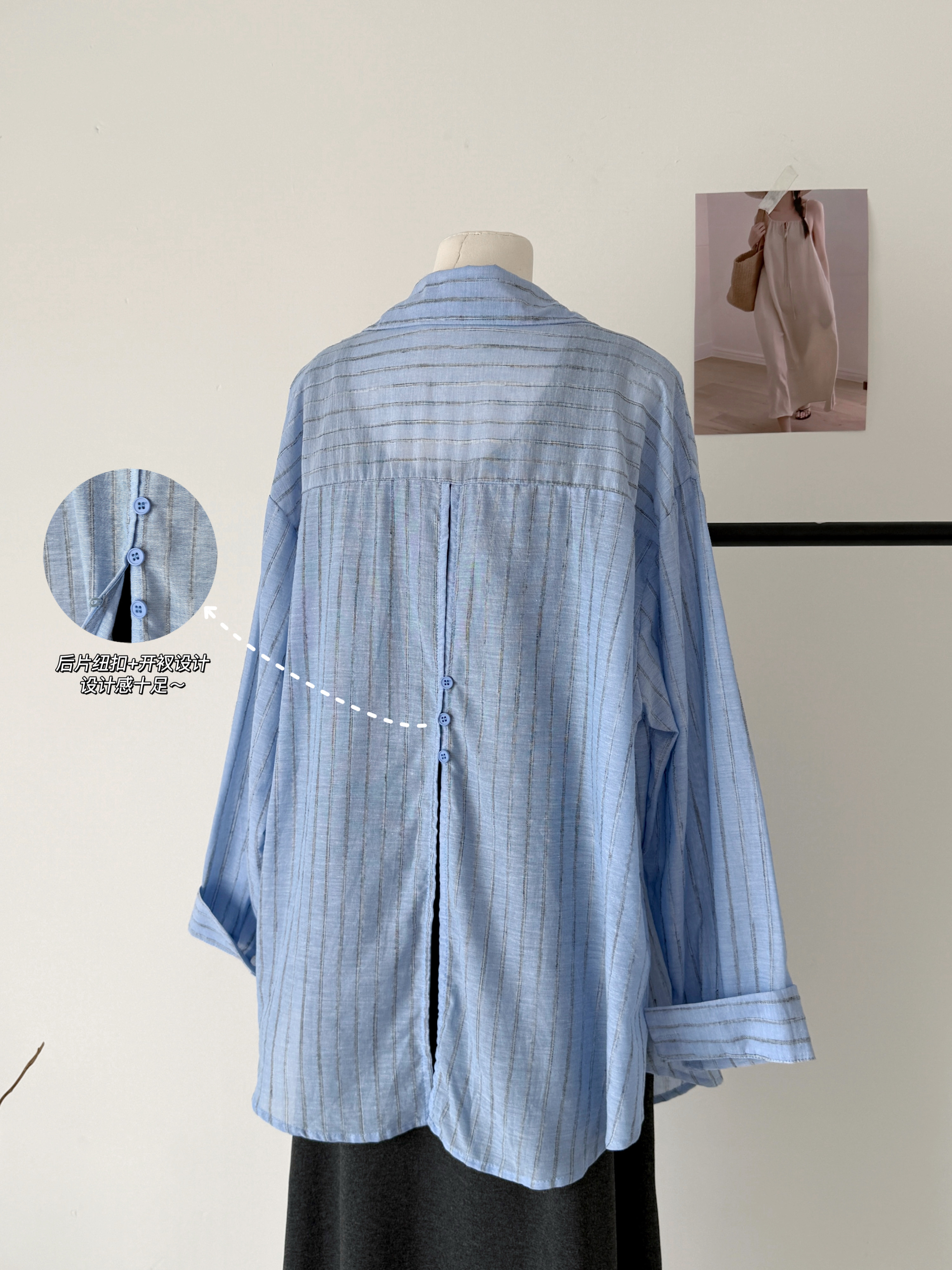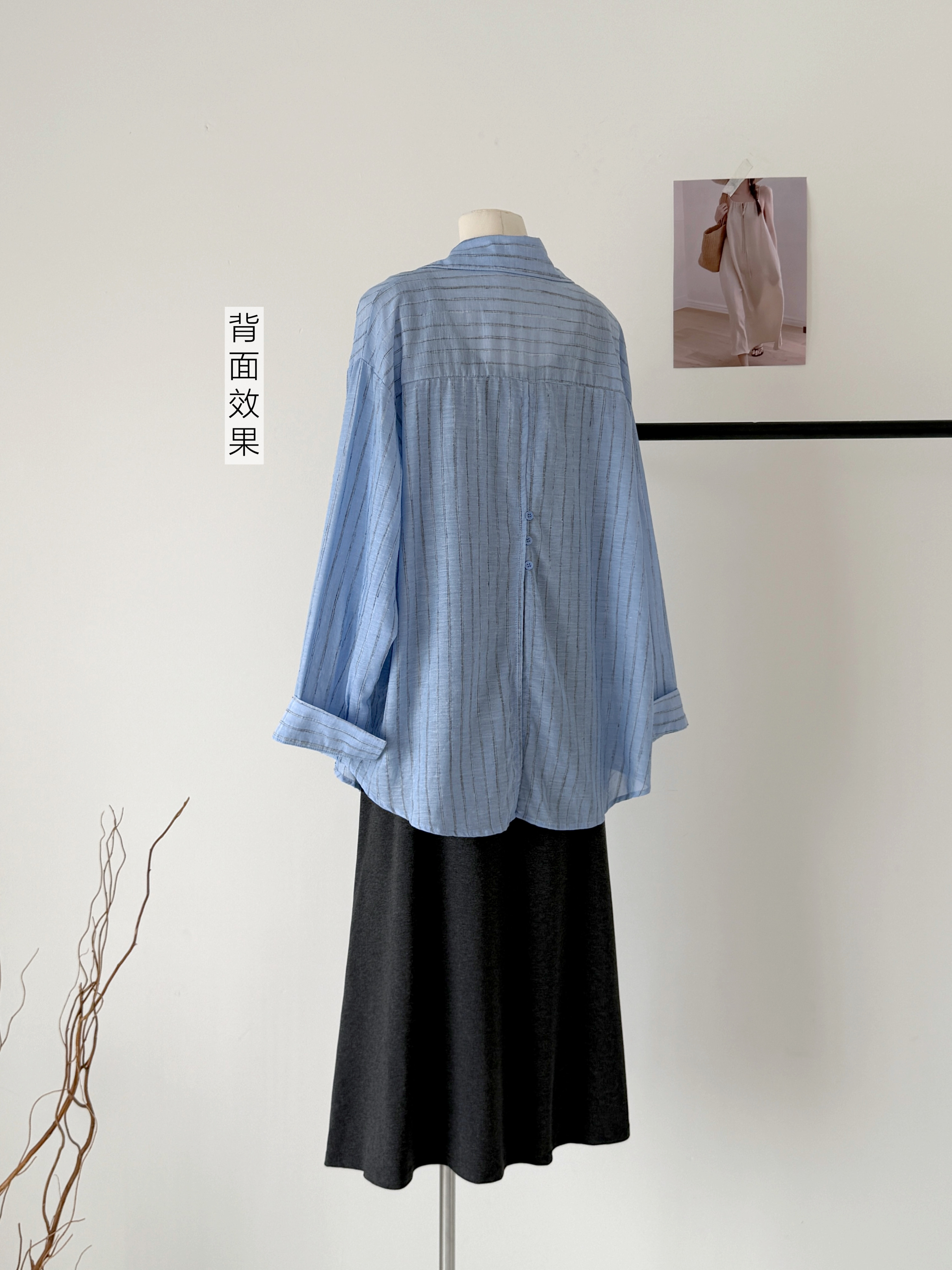 2026春夏新款条纹开叉慵懒风衬衫+修身显瘦长款背心连衣裙套装女