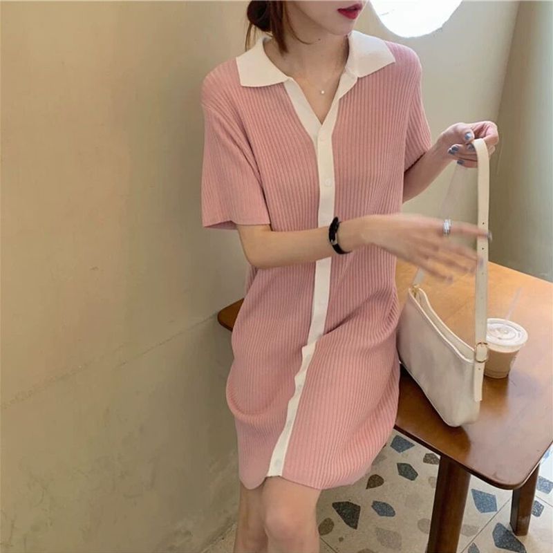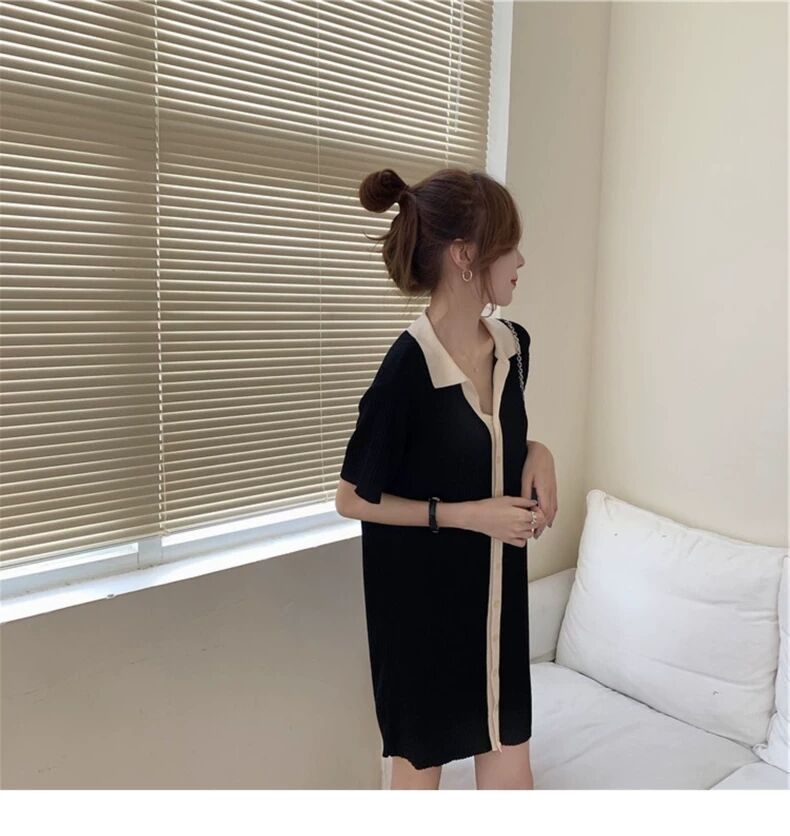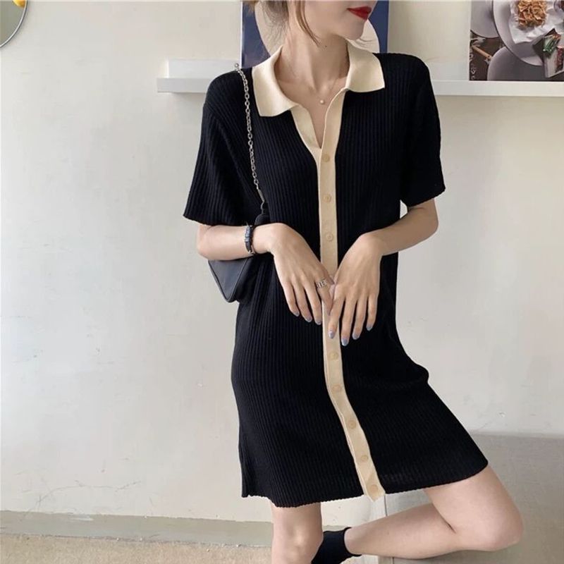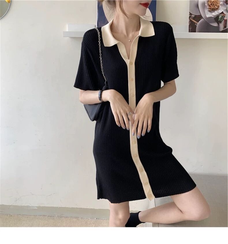 出大货 针织连衣裙女夏季小个子短款休闲简约宽松心机小黑裙