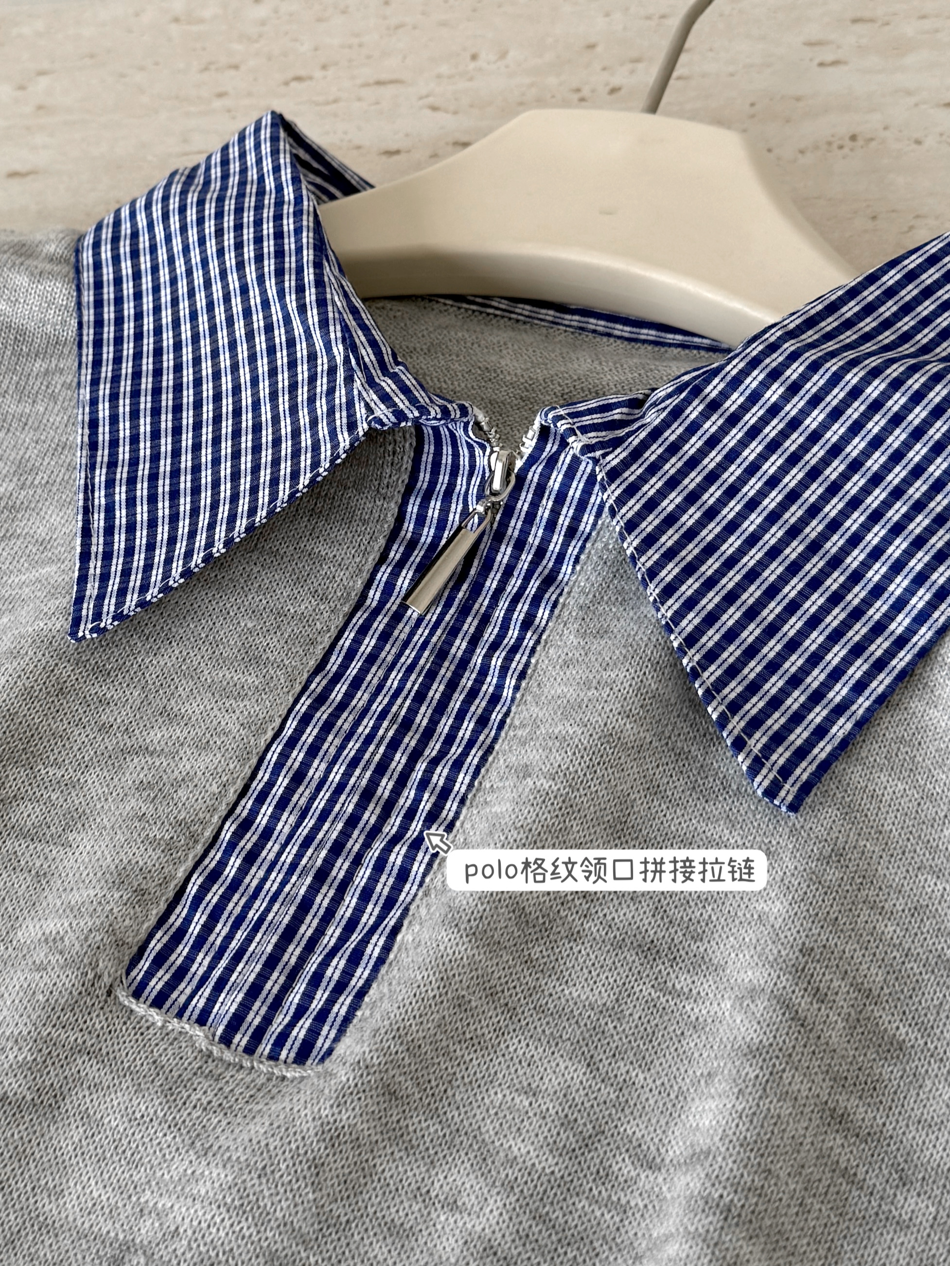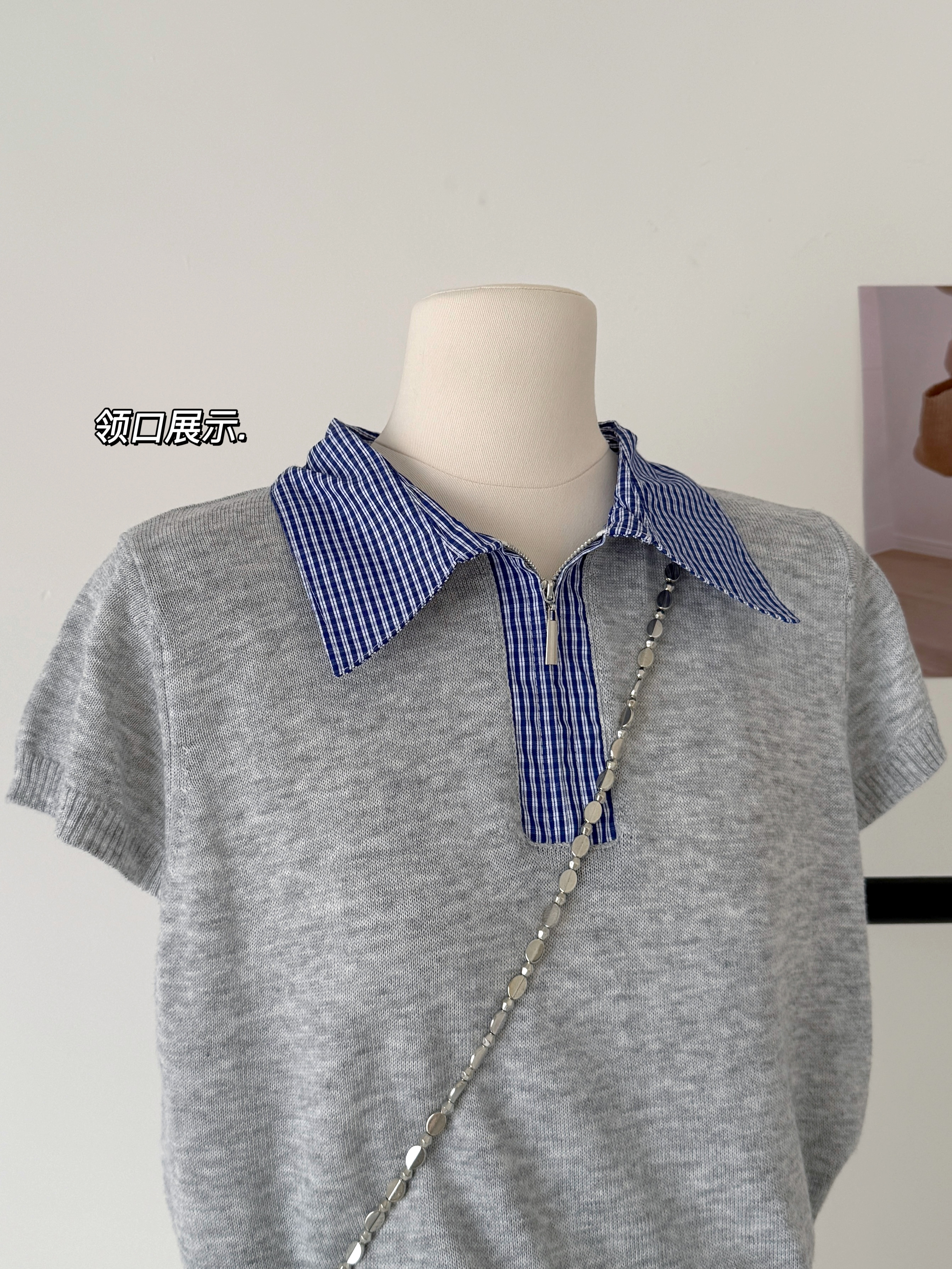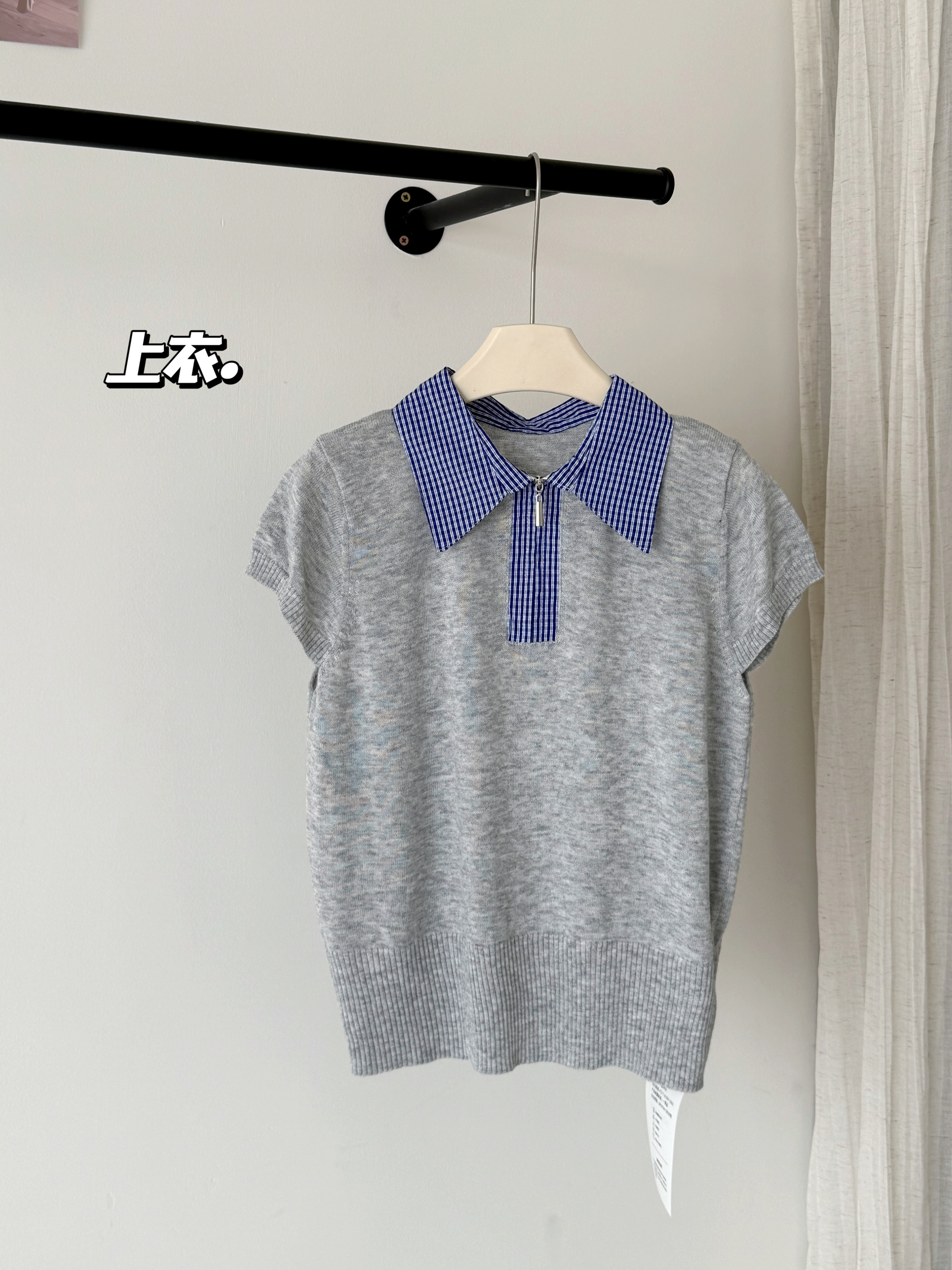 大于诗集 海德公园 miu系撞色格纹拼接针织衫女百搭显瘦短袖T恤春