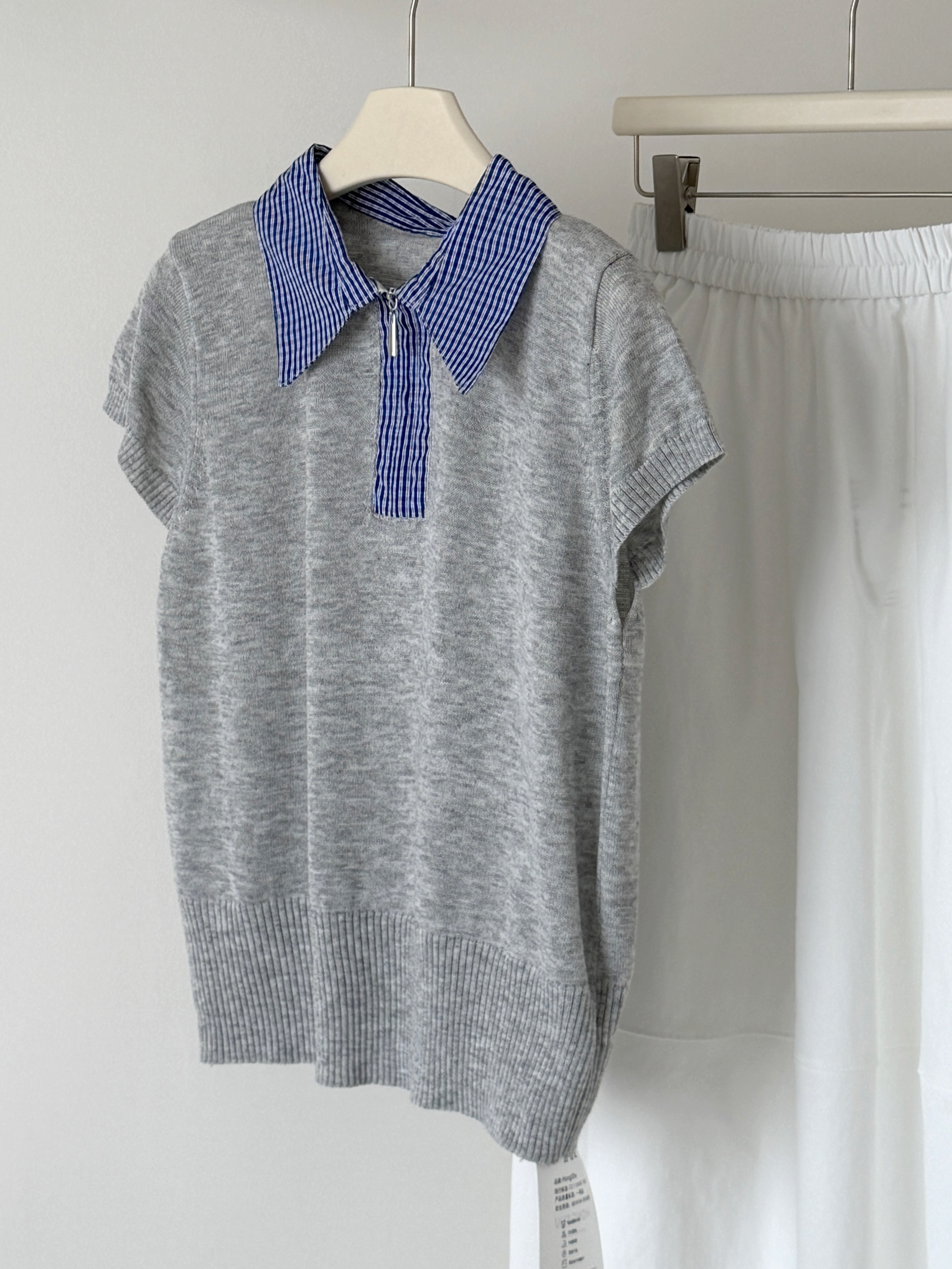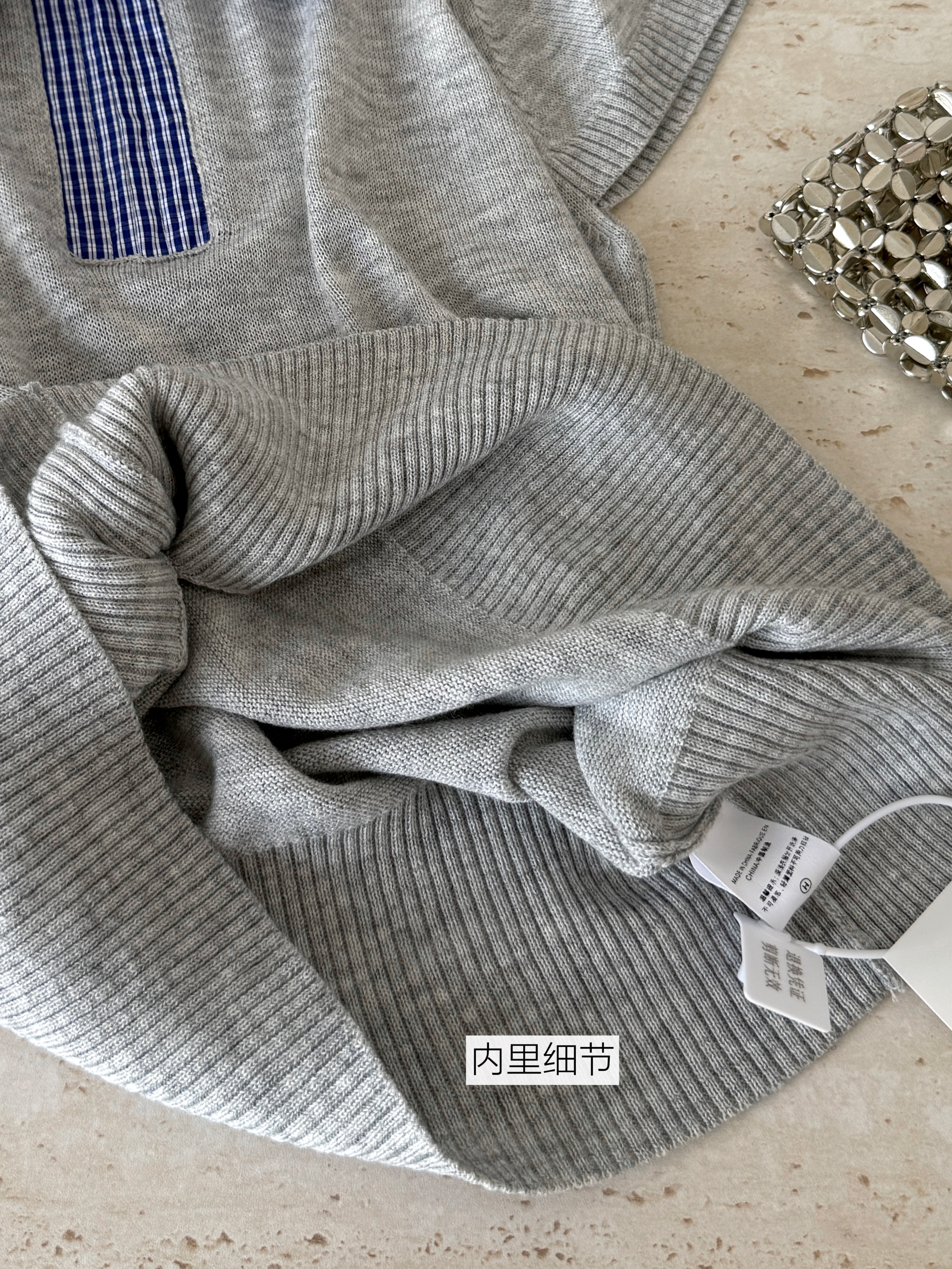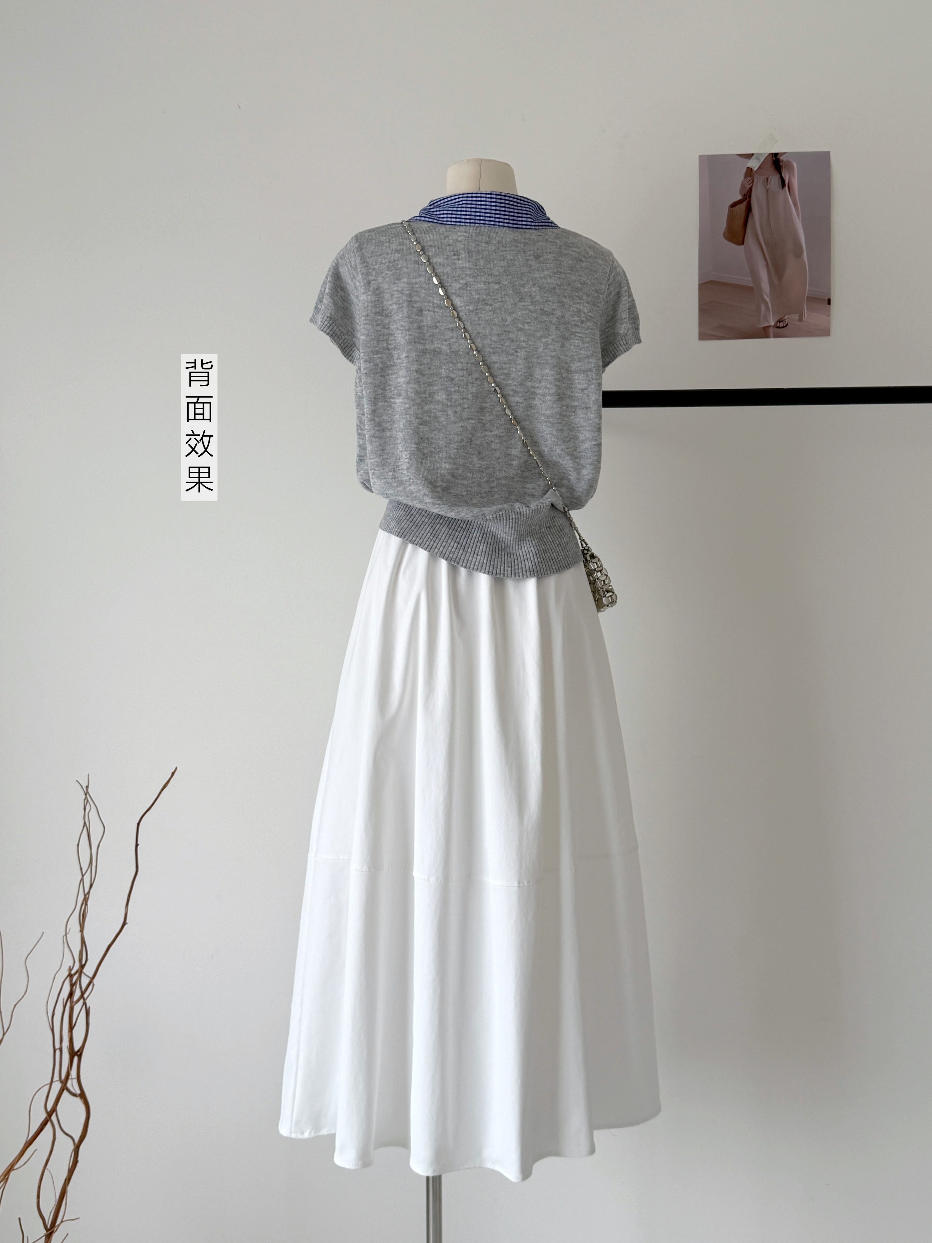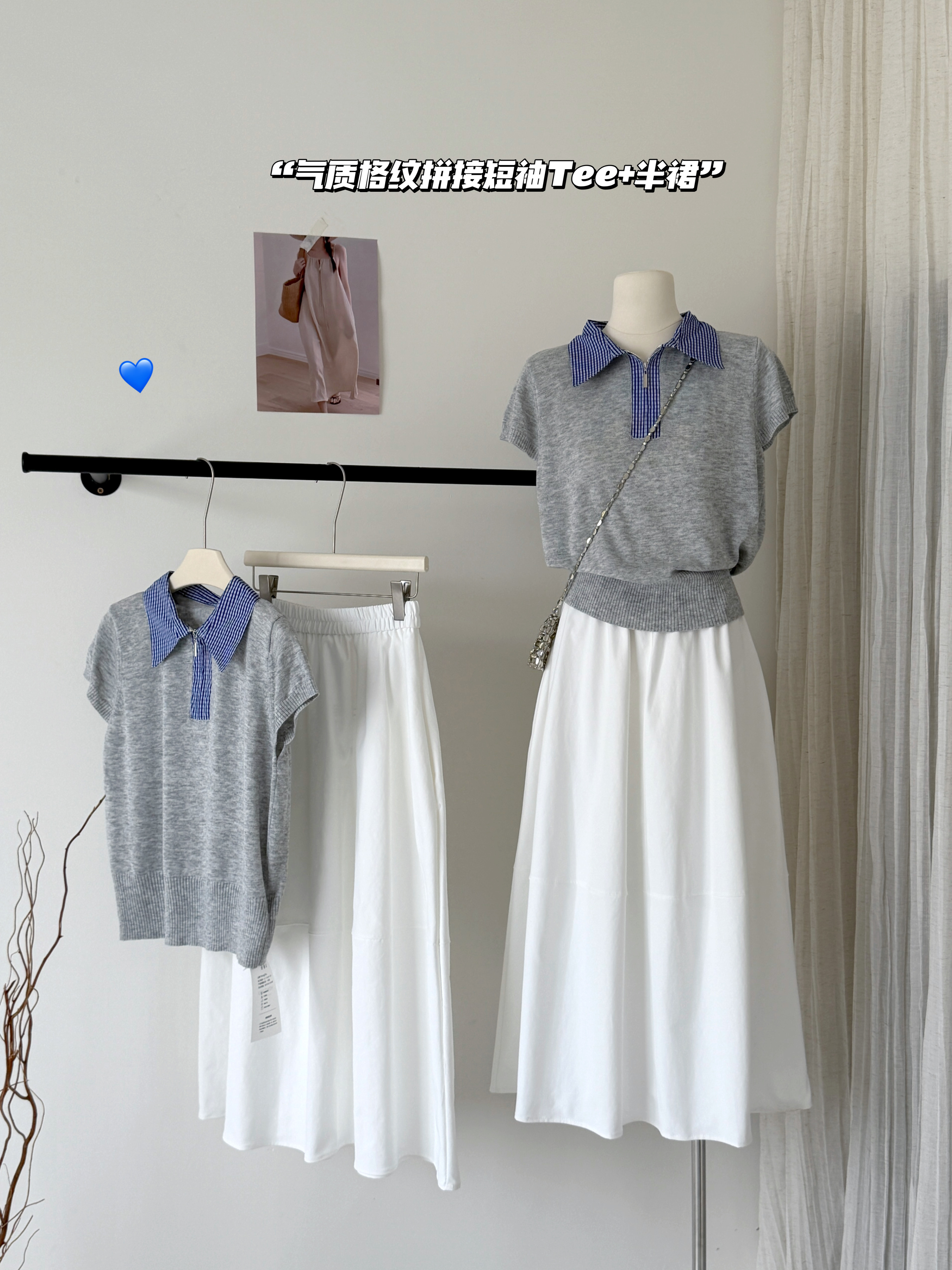 大于诗集 海德公园 miu系撞色格纹拼接针织衫女百搭显瘦短袖T恤春