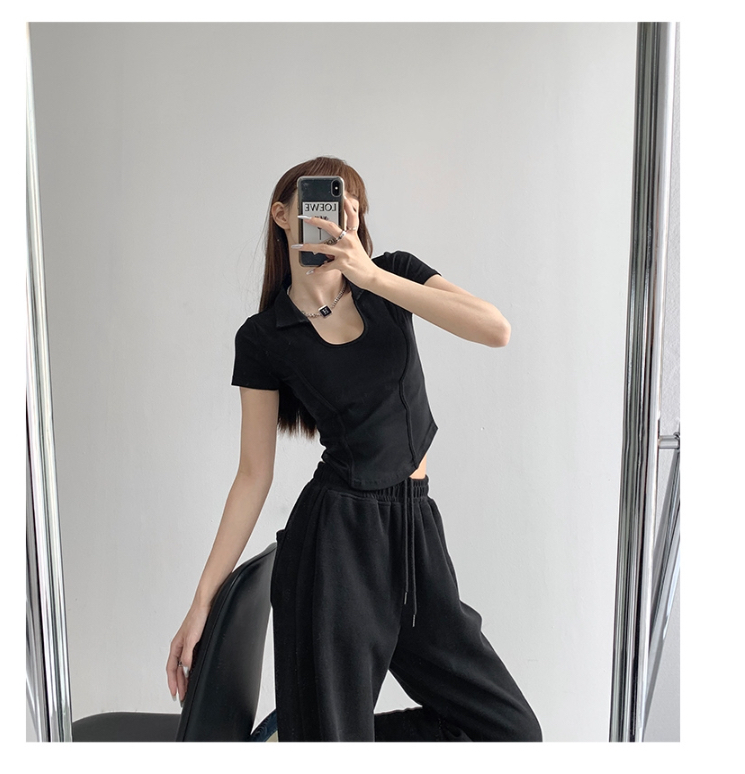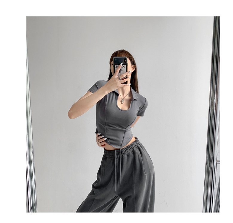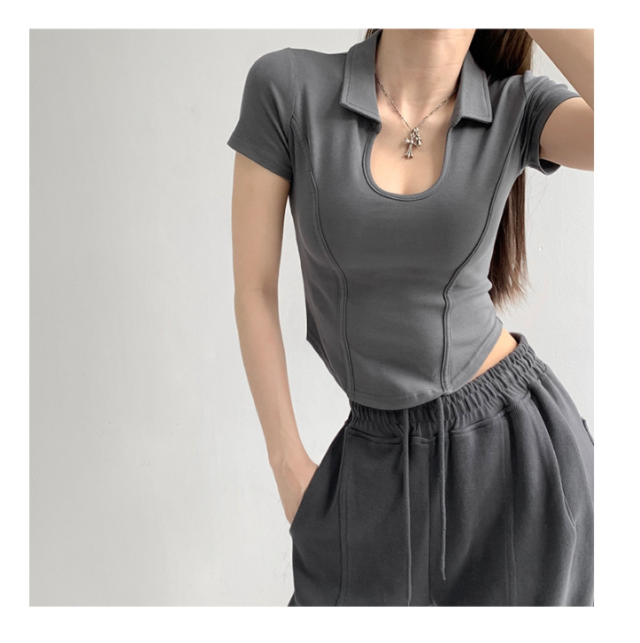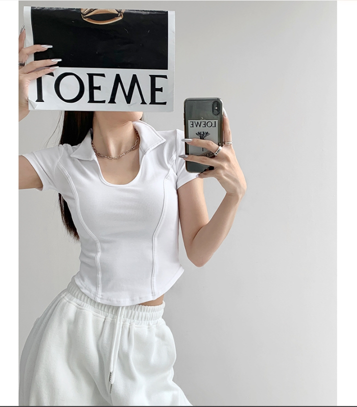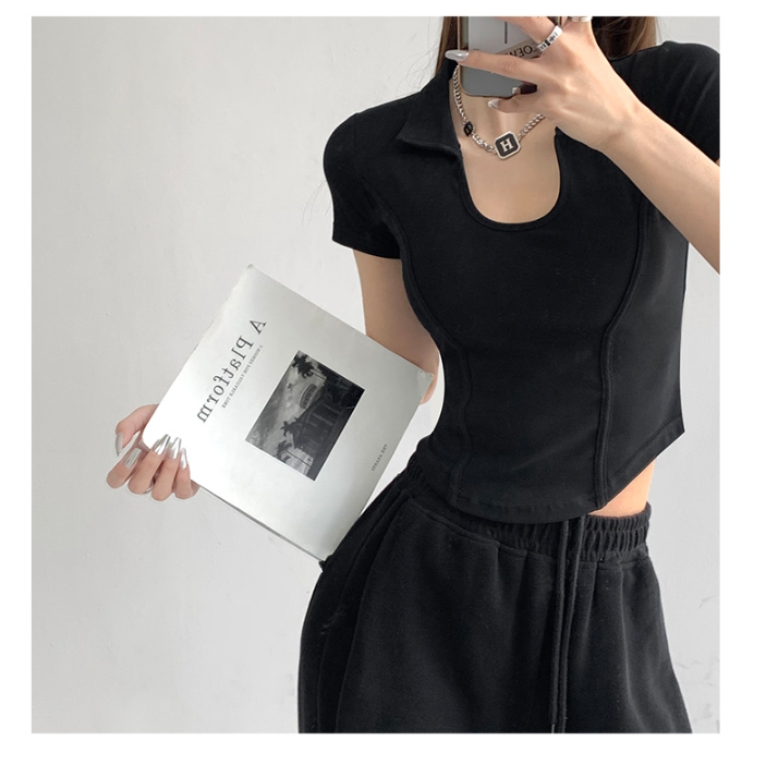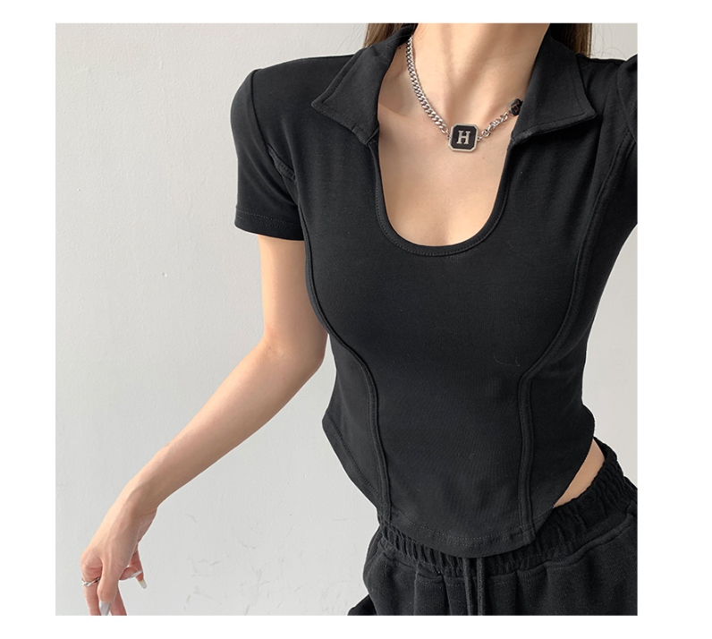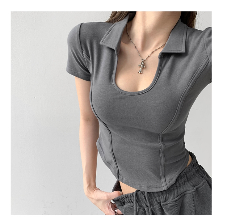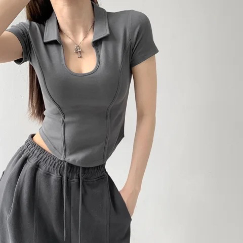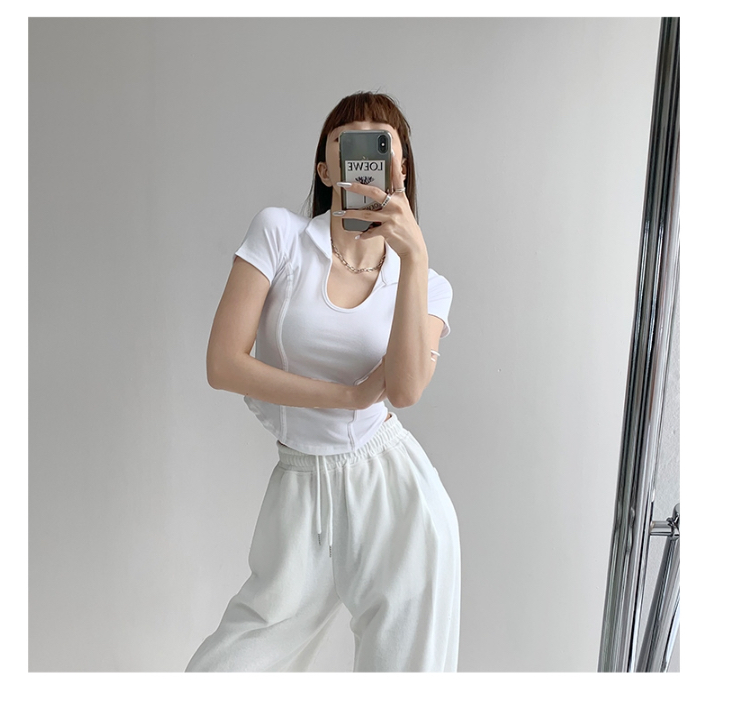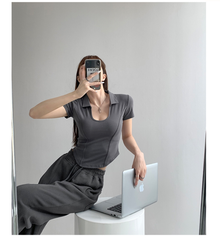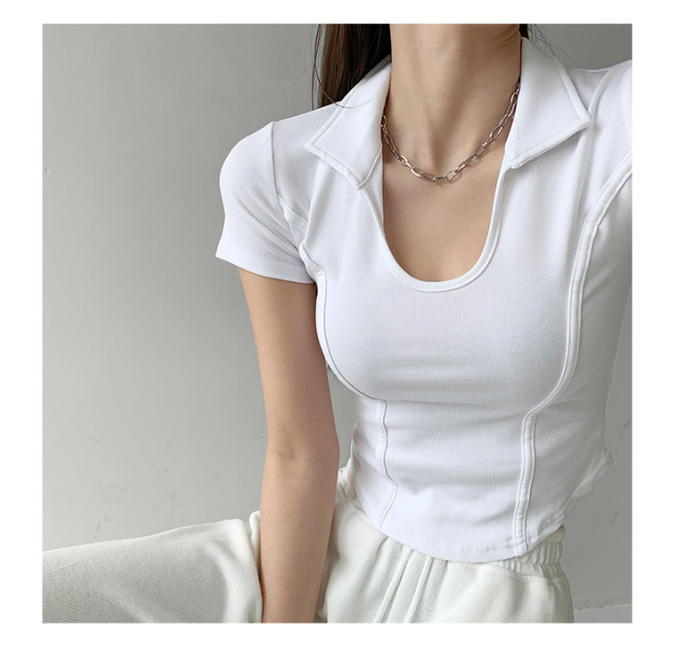 罗纹 新款夏季显瘦修身小U领上衣polo衫女