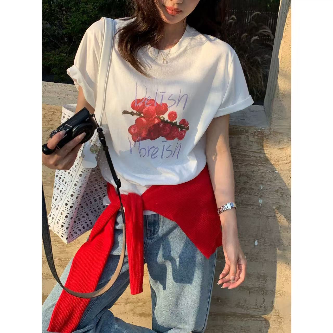 仿棉牛奶丝# 韩版夏日慵懒风短袖t恤女宽松设计感百搭上衣
