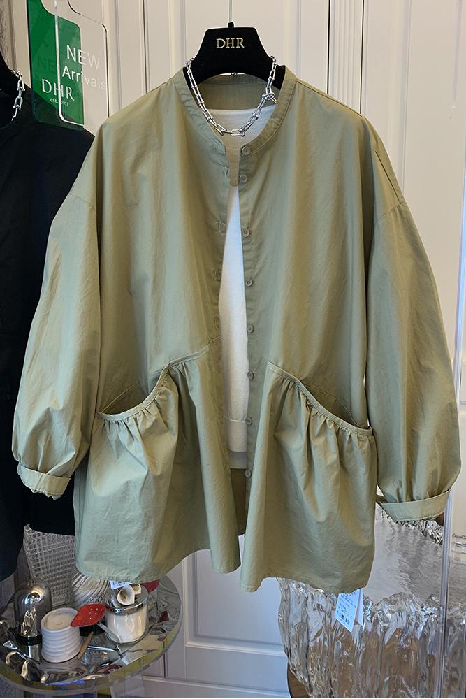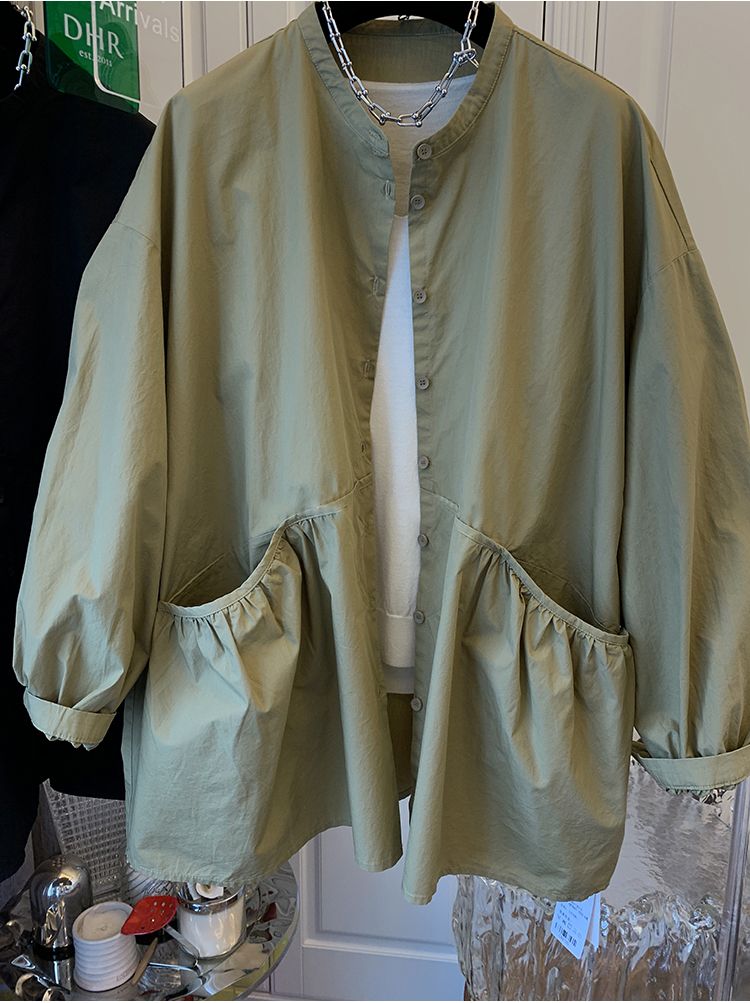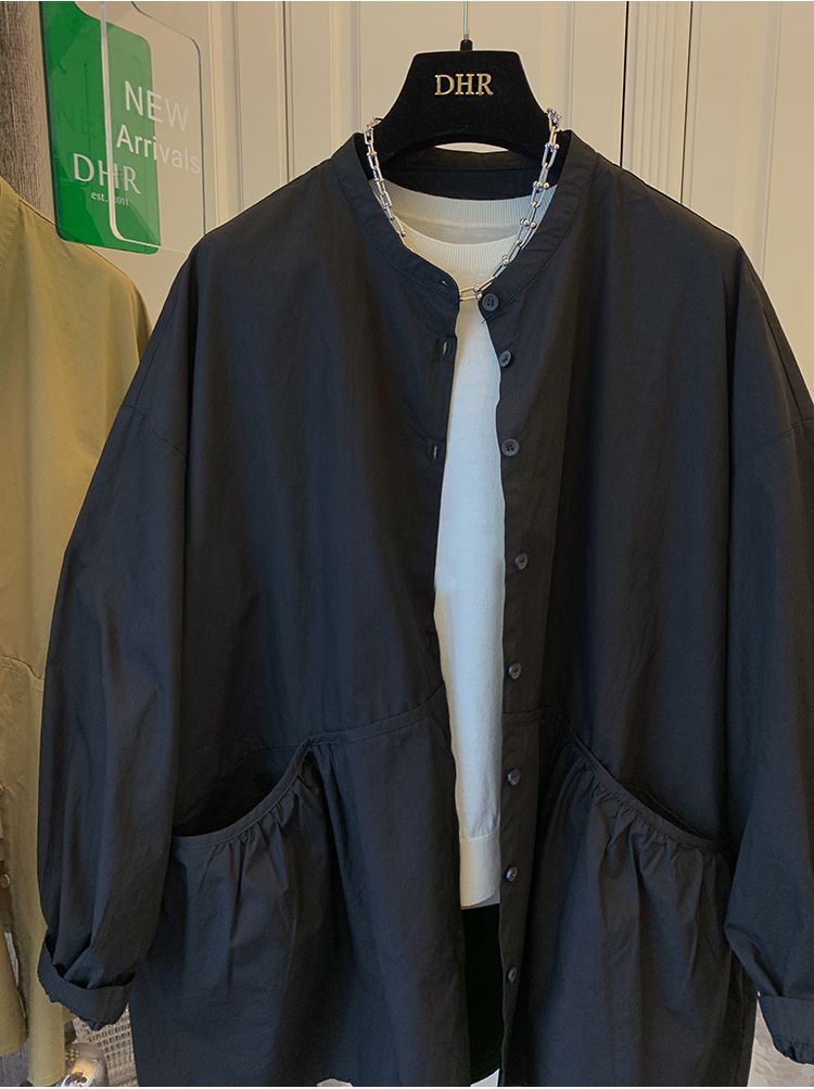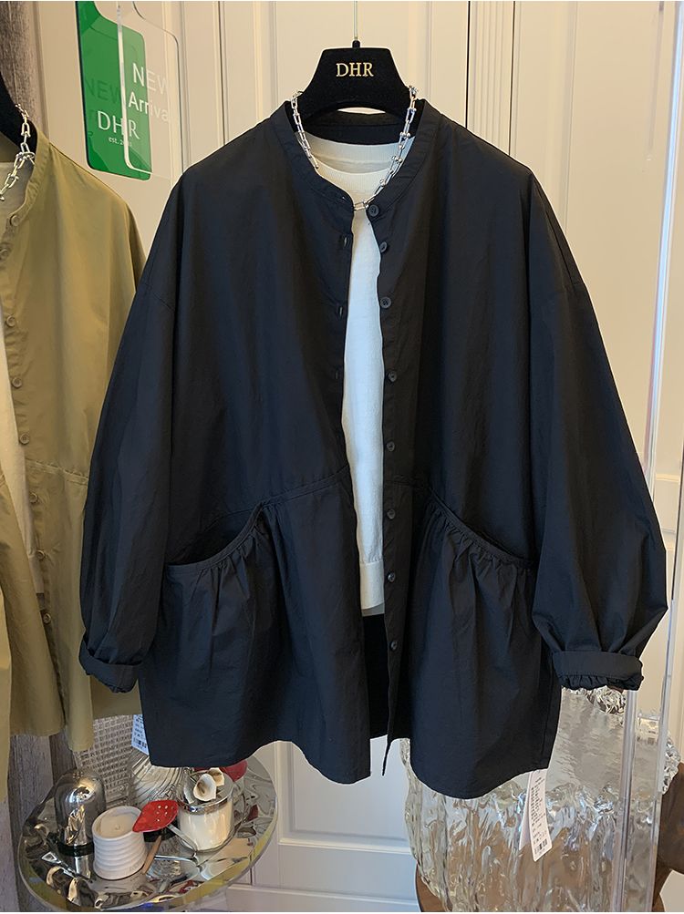 夏装韩版大码女装春秋新款双口袋长袖风衣外套衬衫上衣女