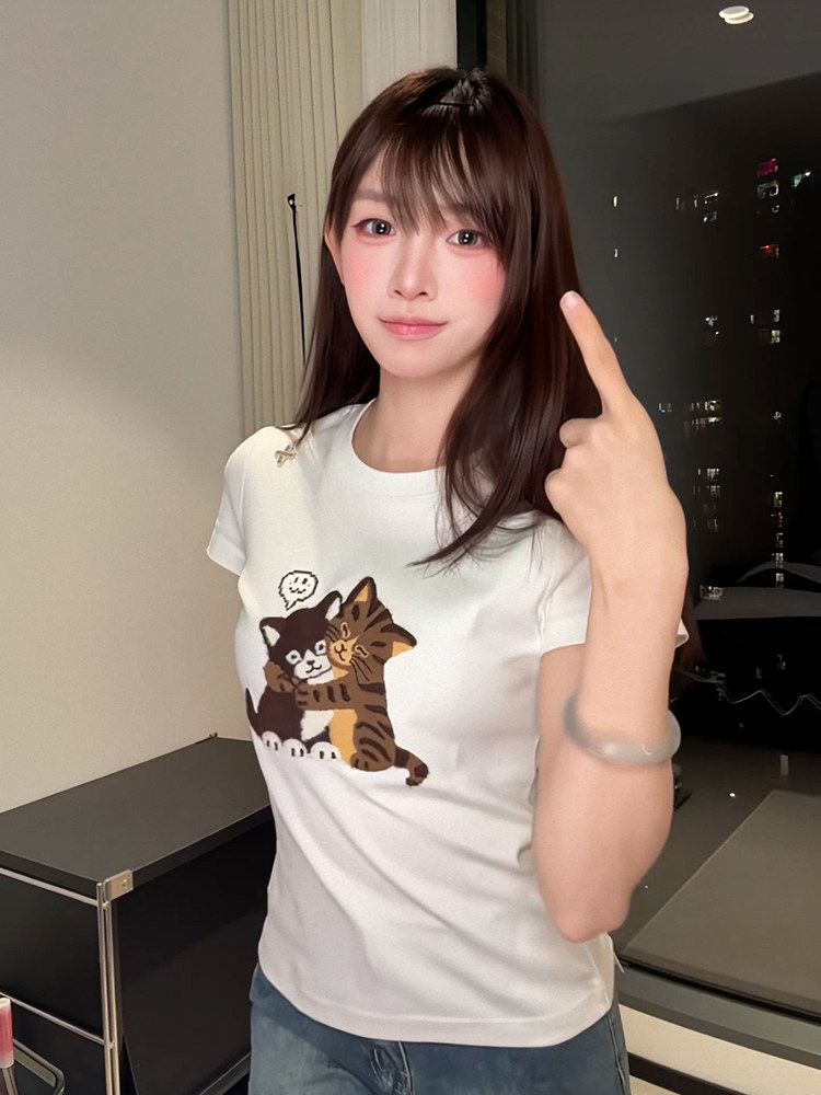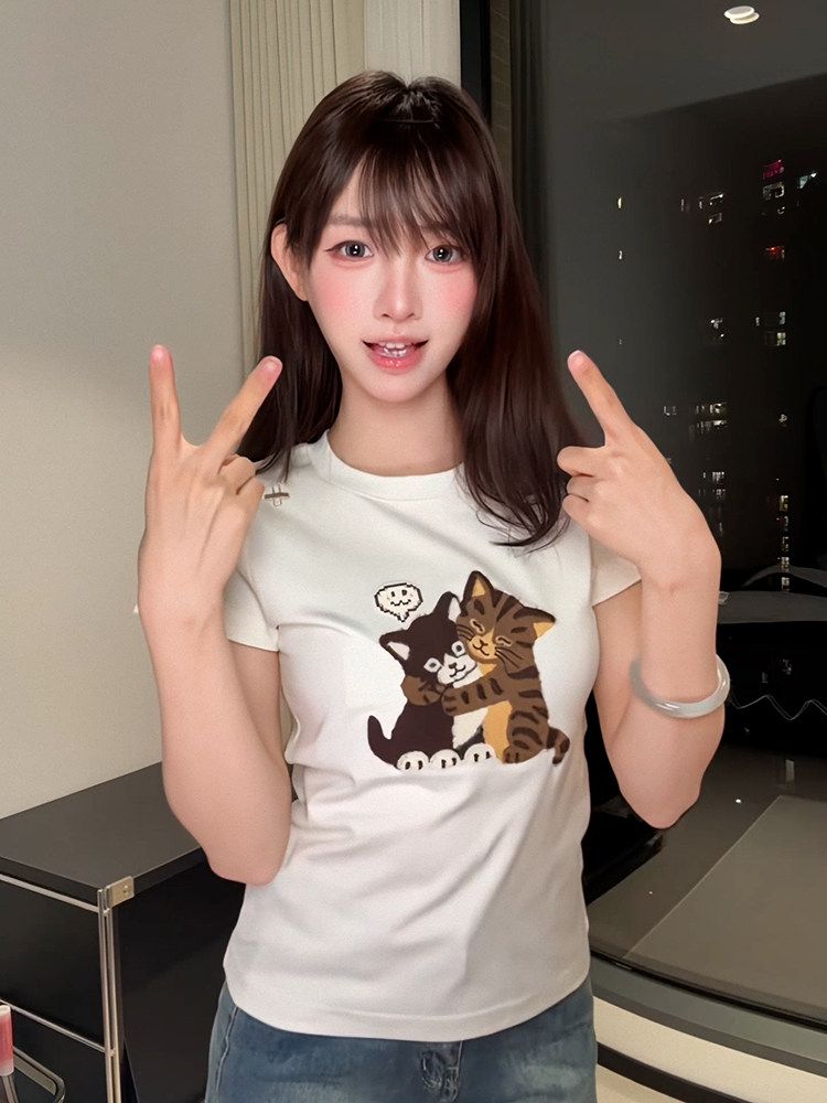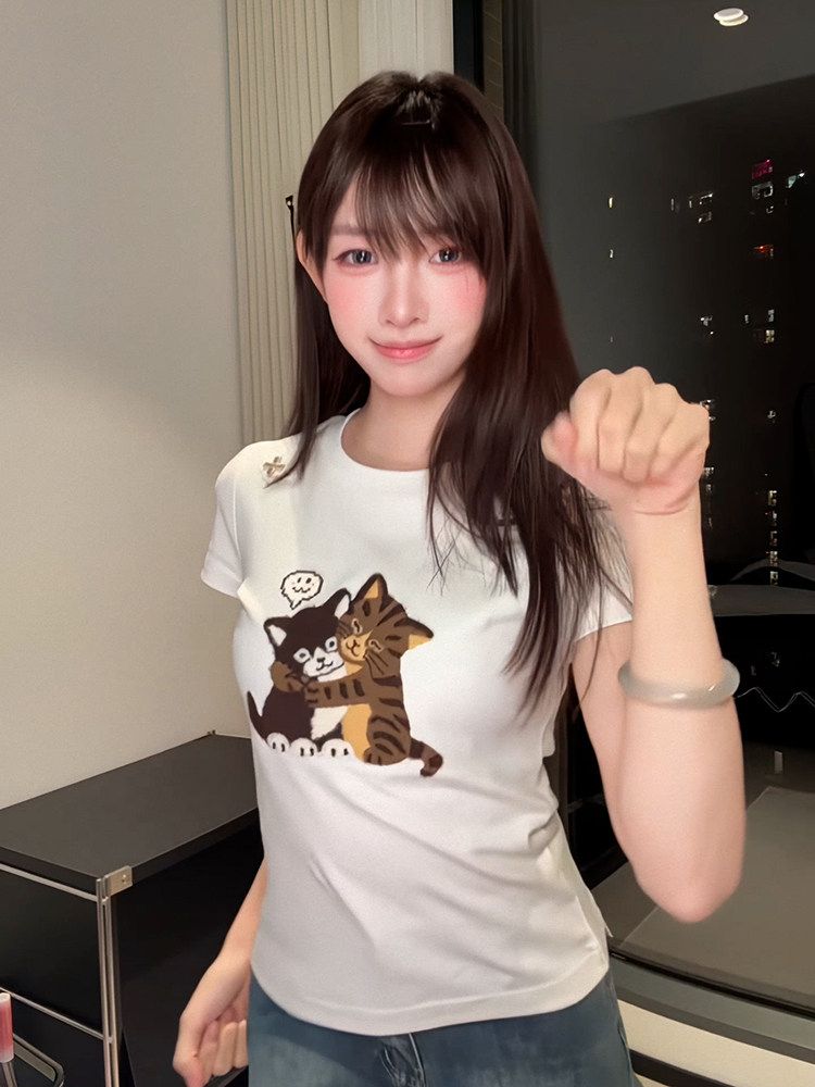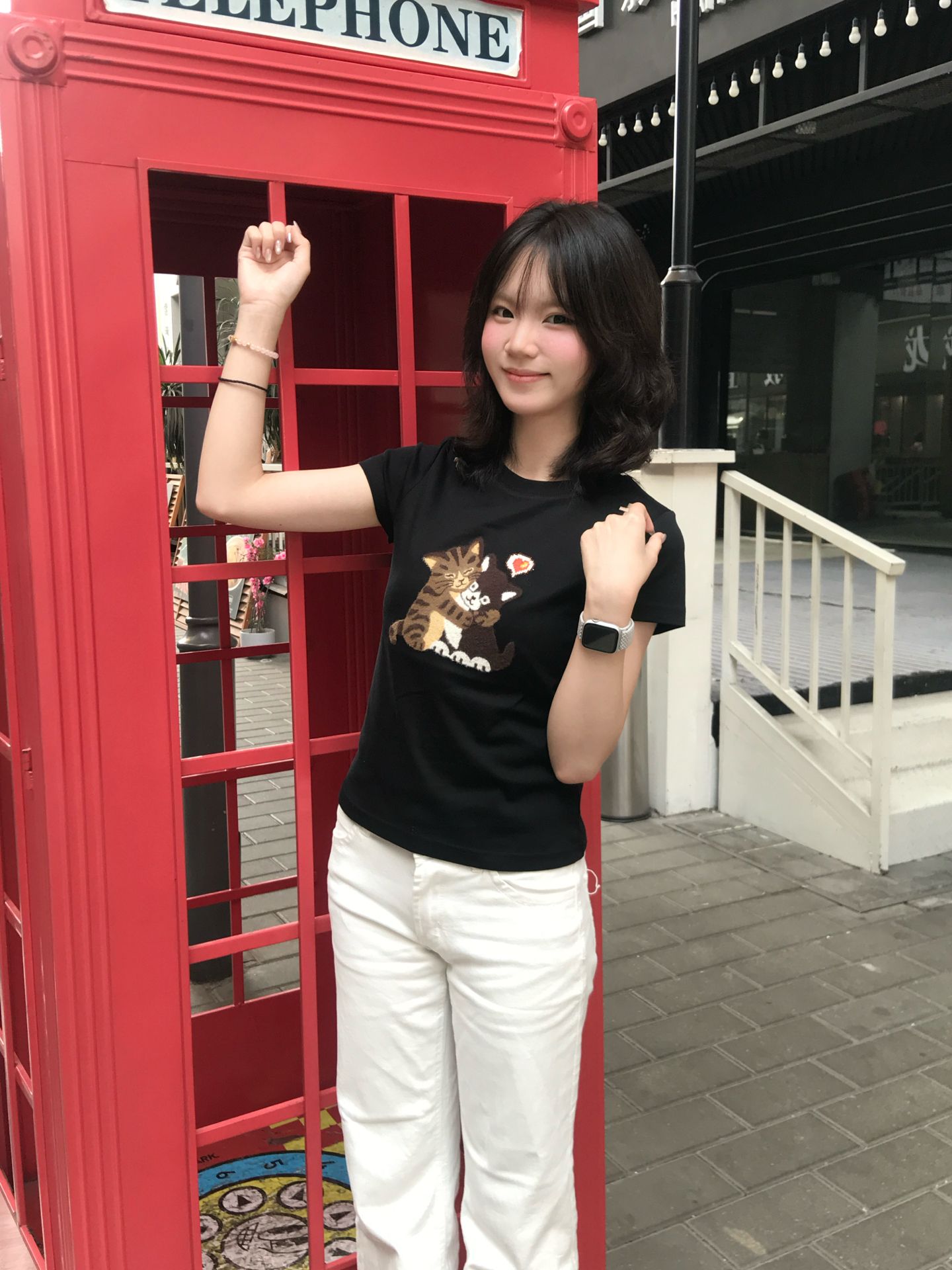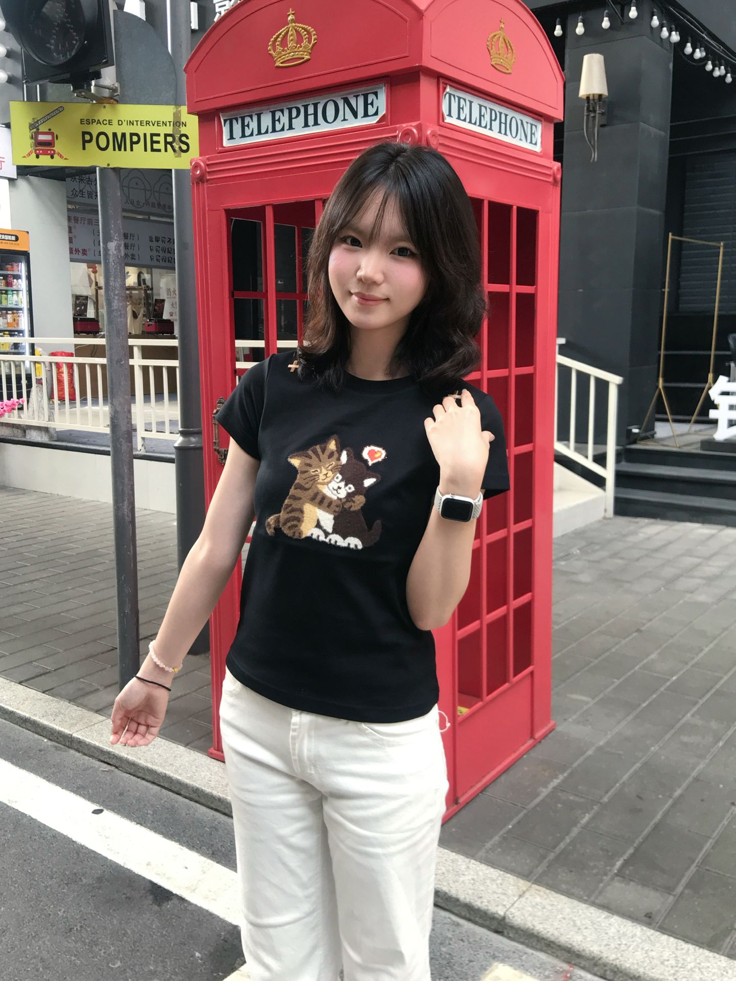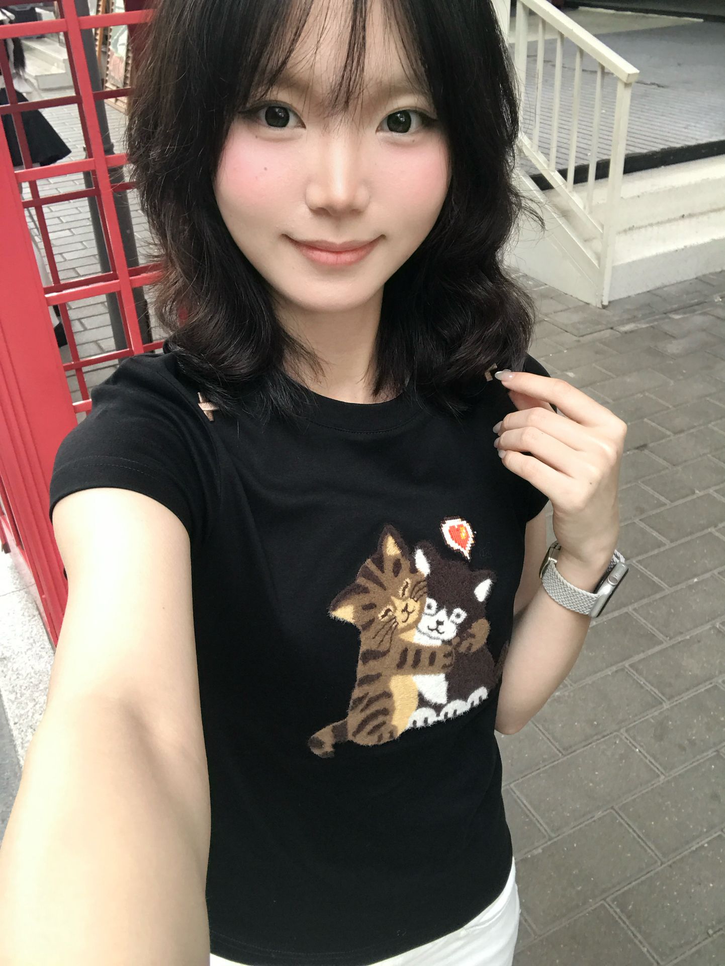 现huo刺绣+内里铺布+220克40支赛络纺92棉8氨纶食毛+修身T恤女