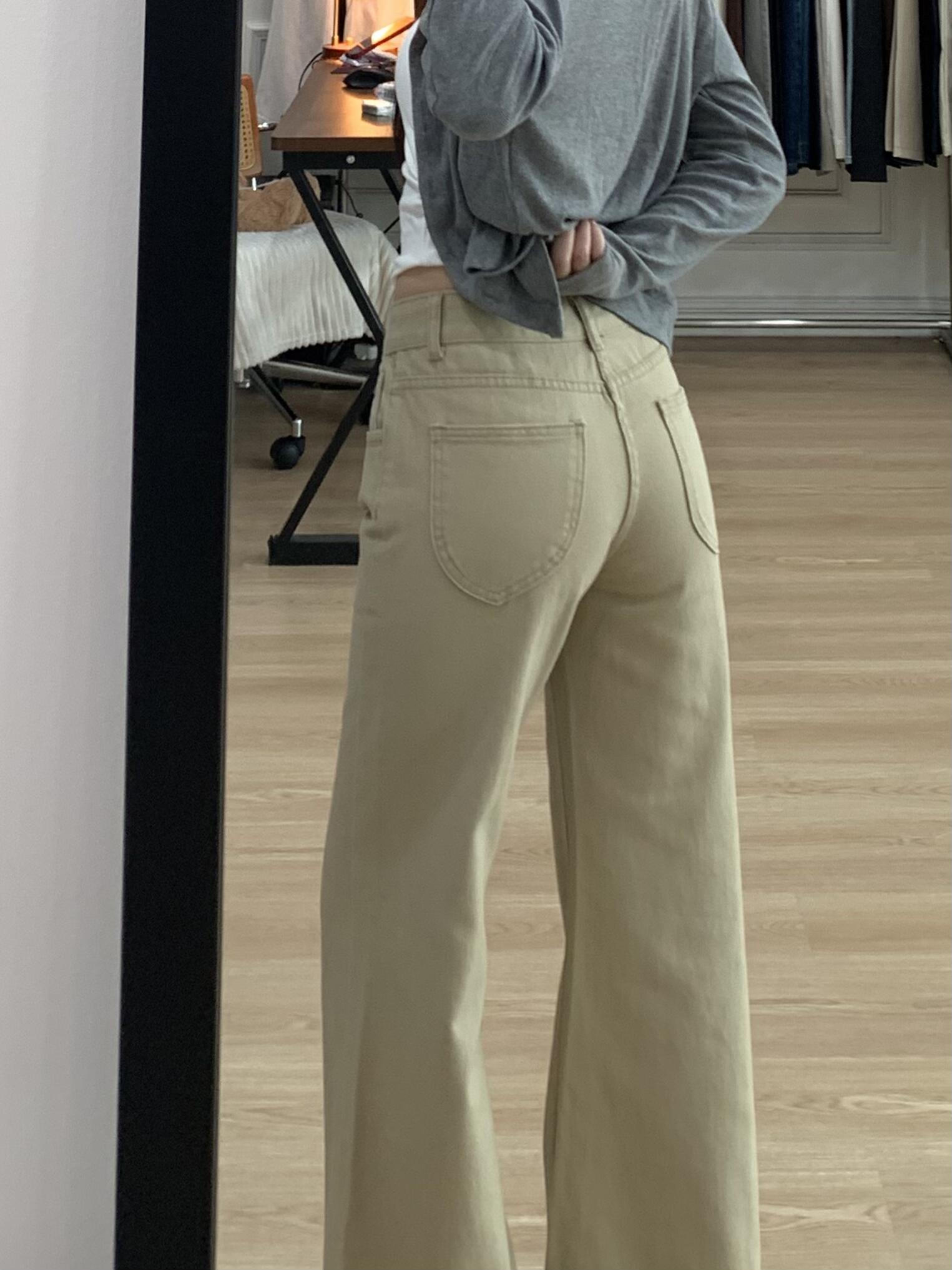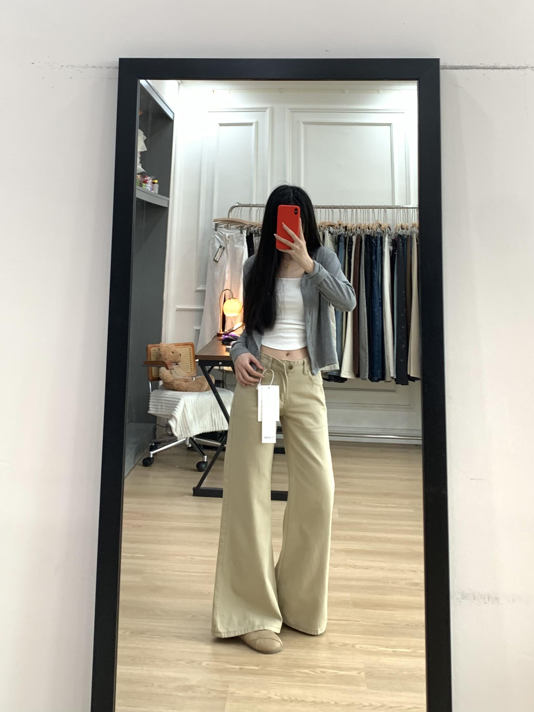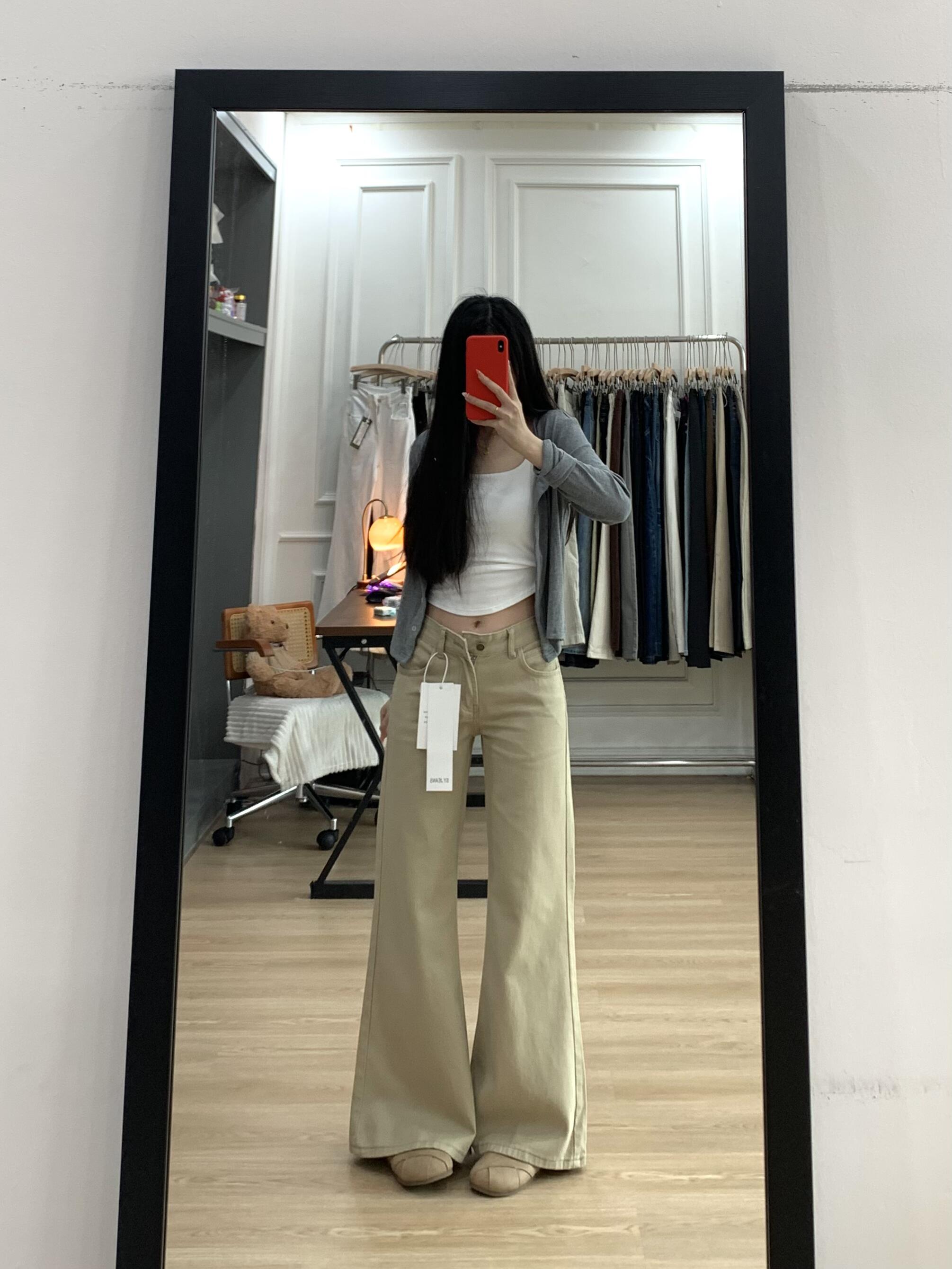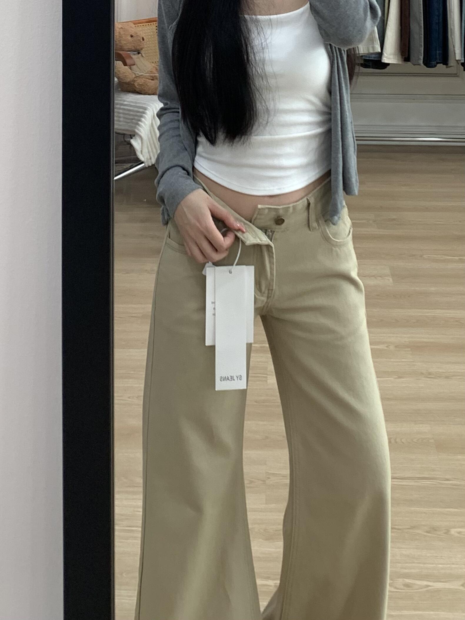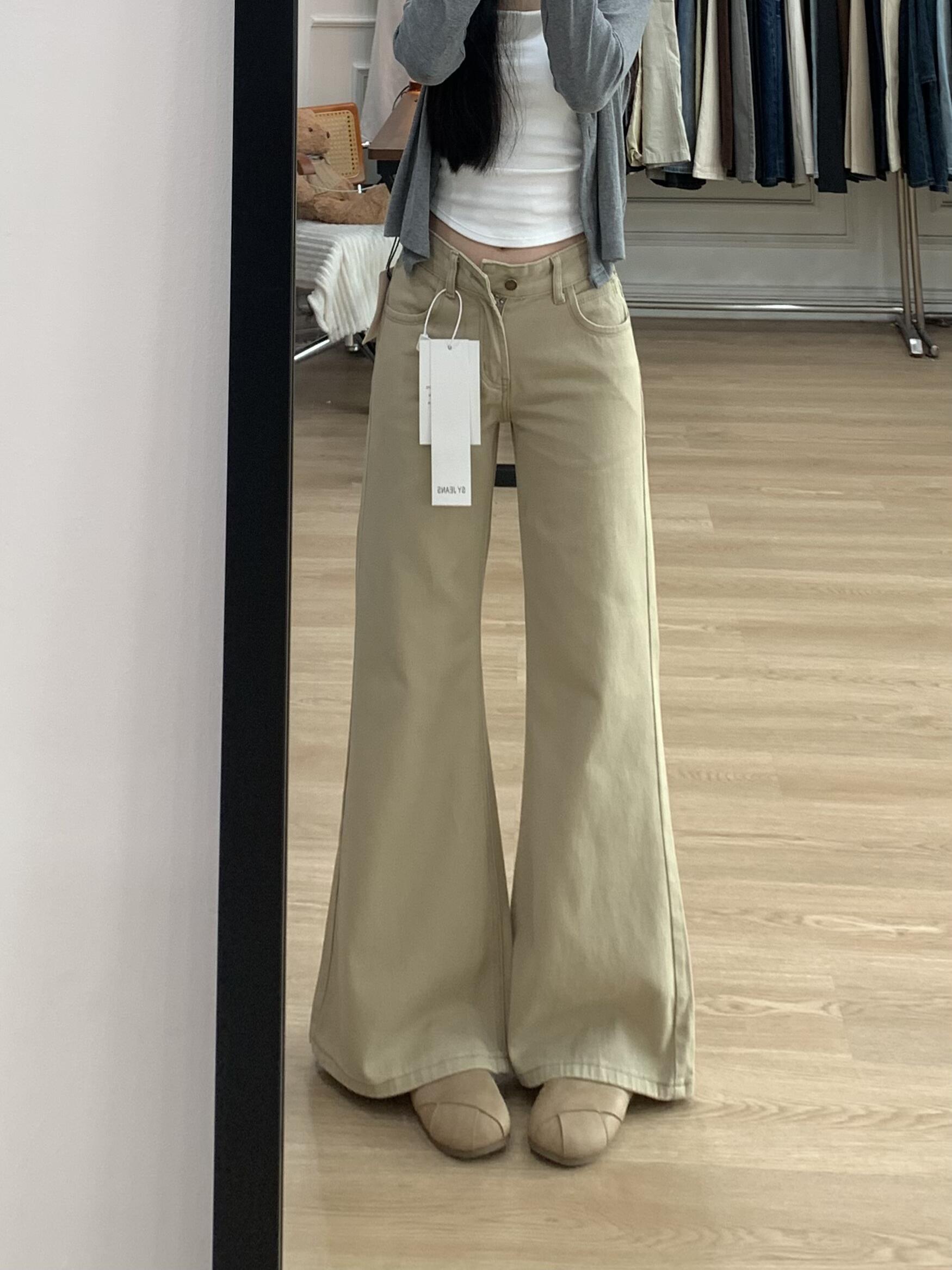 卡其色低腰微喇牛仔裤女2026夏季新款显瘦垂感拖地不贴腿喇叭裤子
