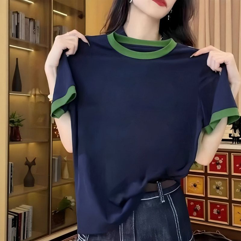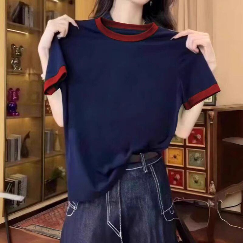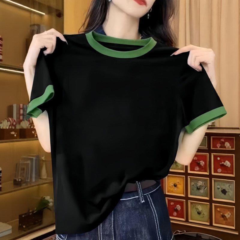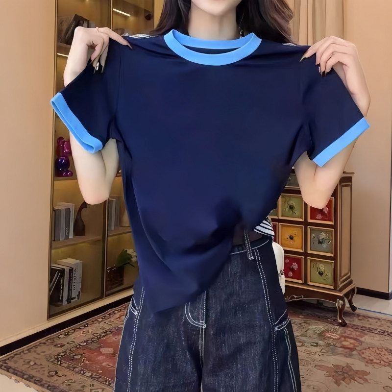 超好看独特漂亮纯棉短袖T恤女夏圆领撞色时尚打底衫小众别致上衣