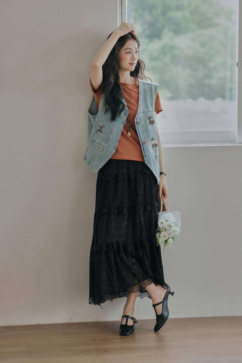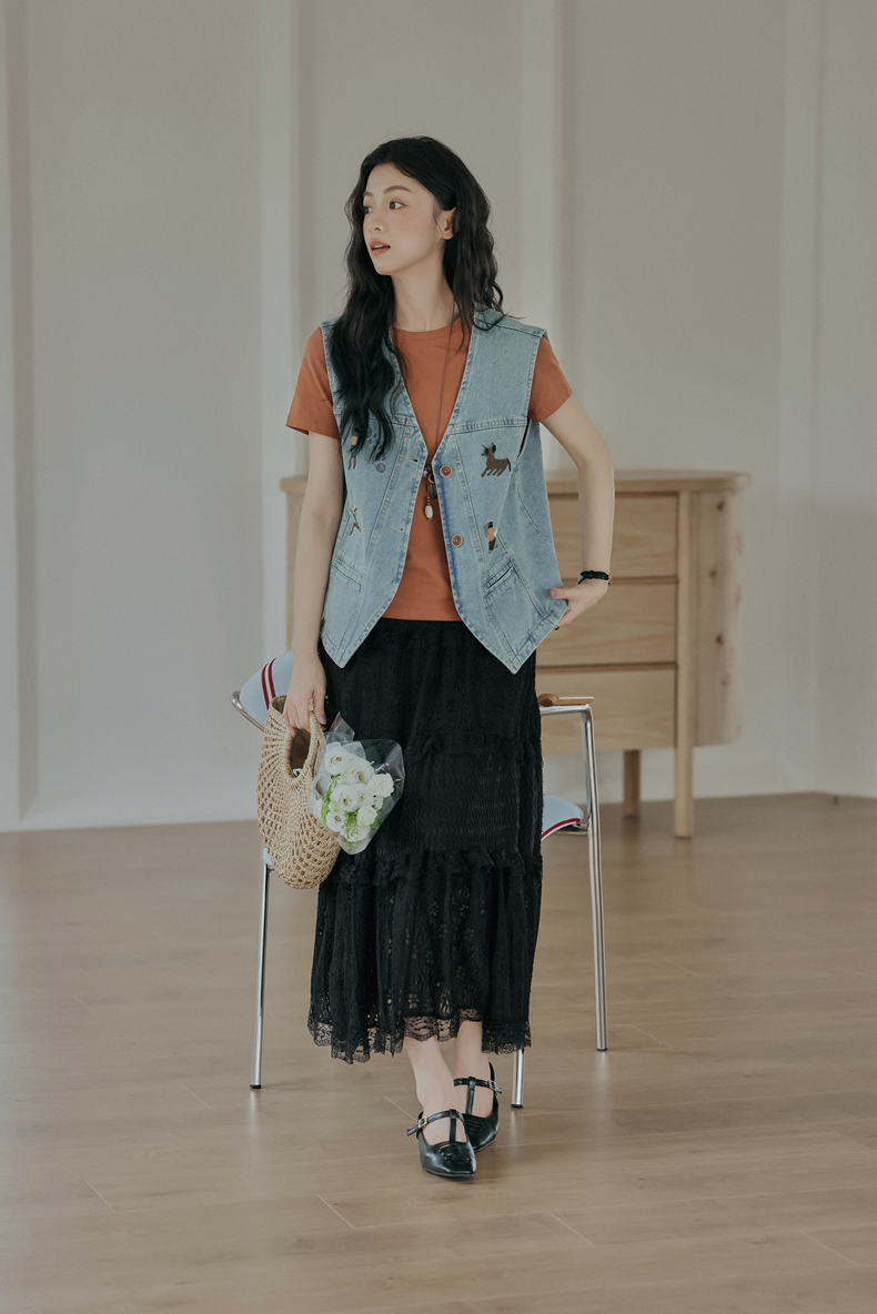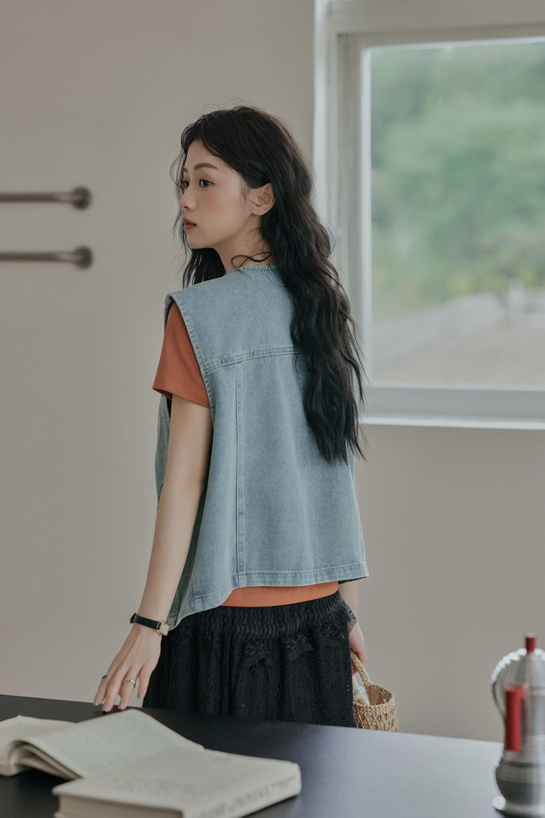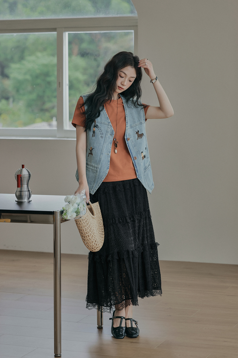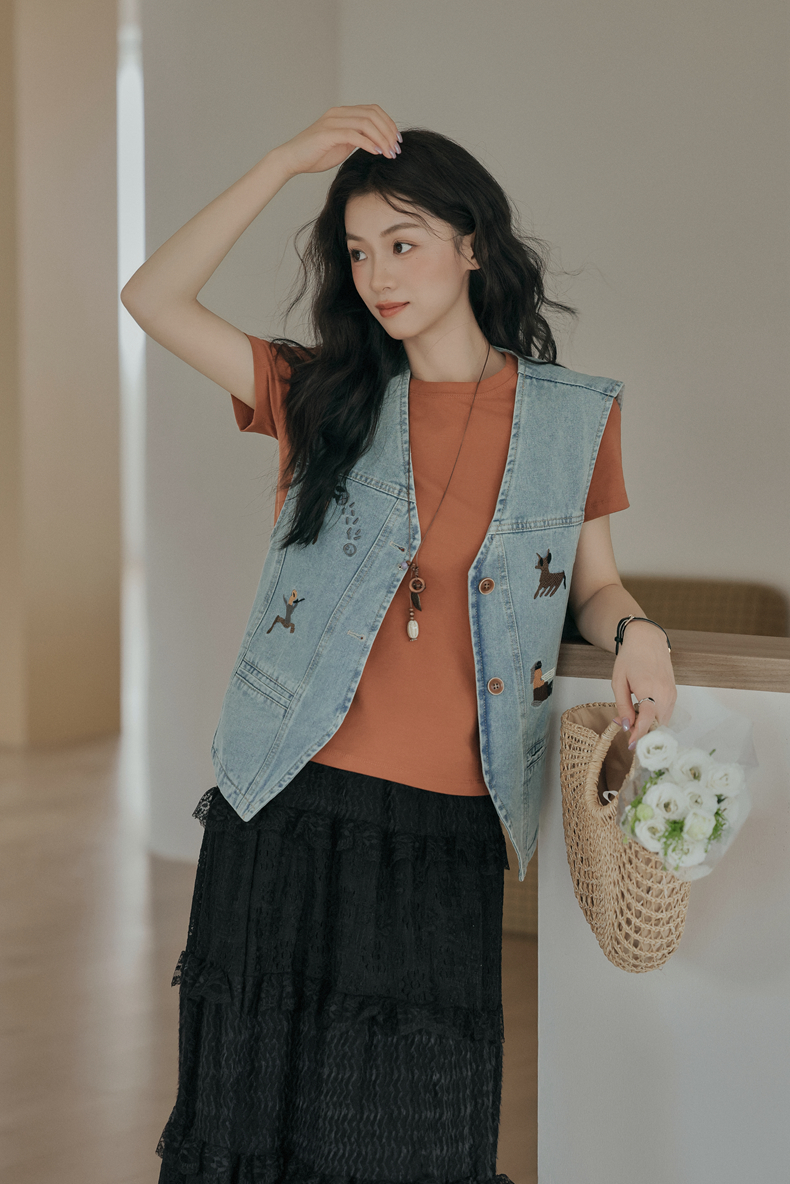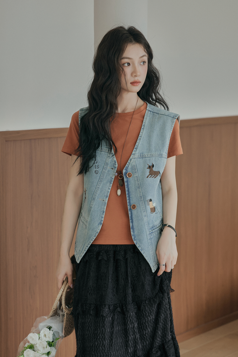 复古刺绣牛仔马甲女装无袖宽松坎肩背心外套设计感小个子春款新款
